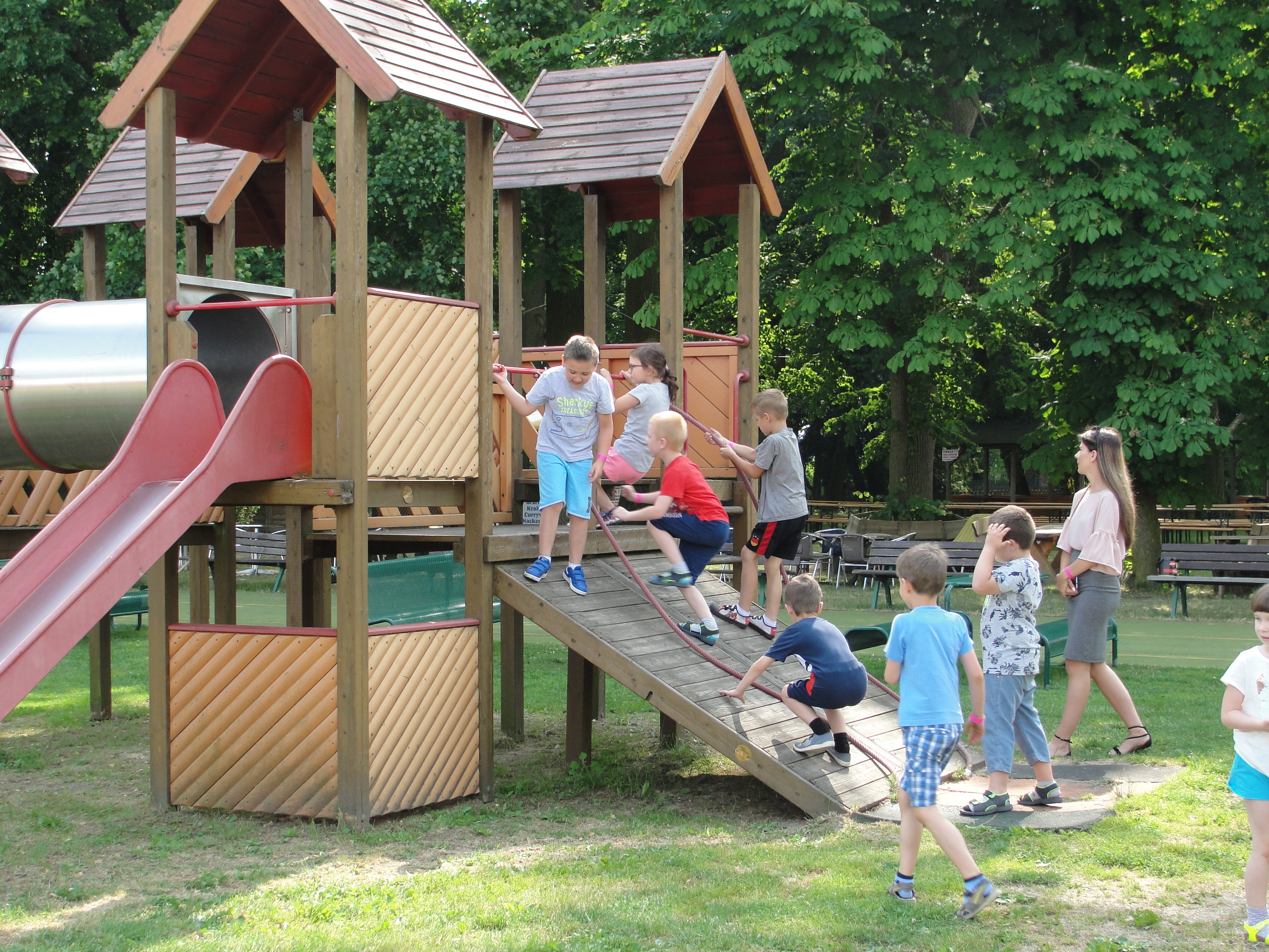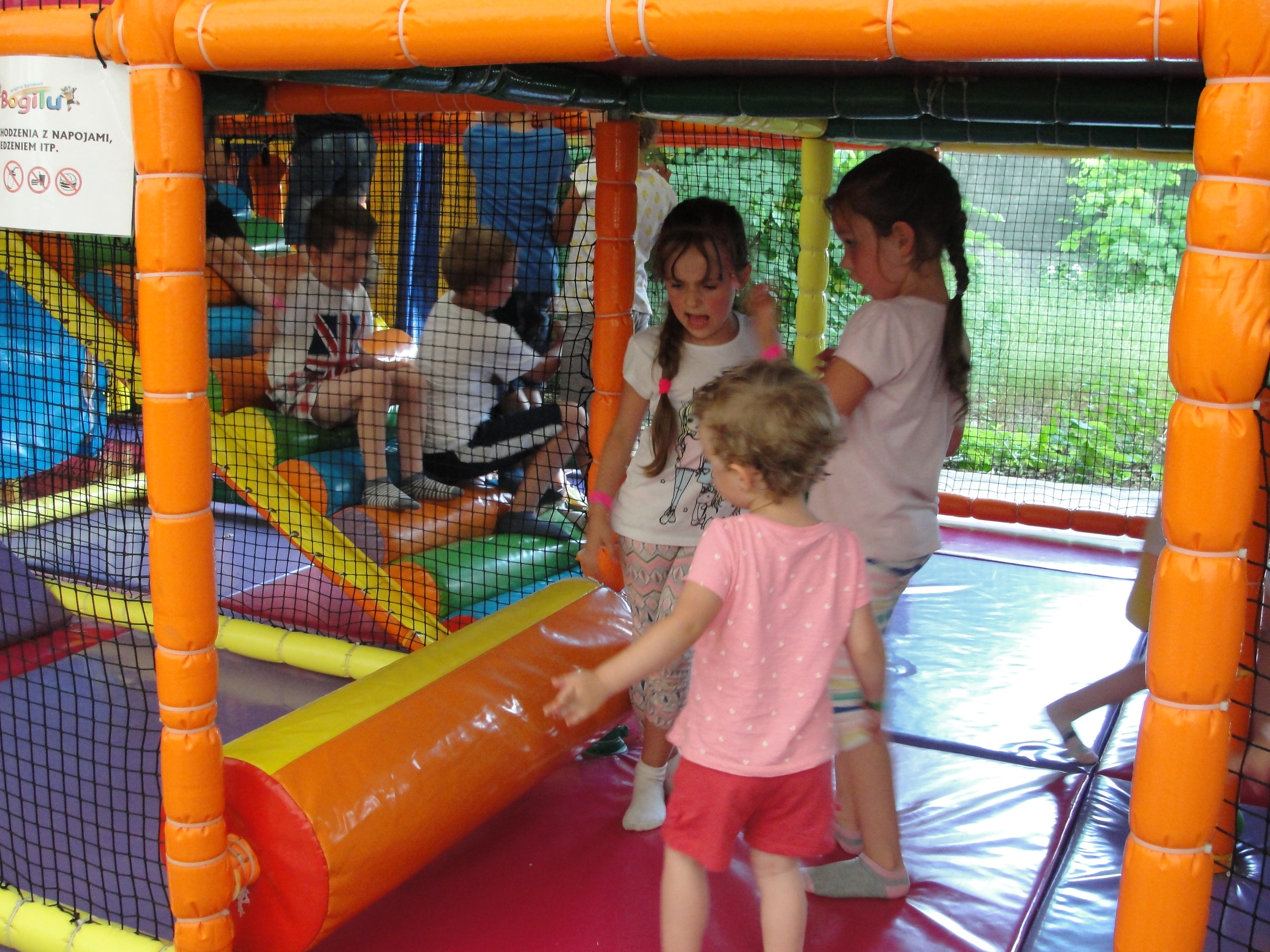 4 czerwca 2018r. – Młodsze dzieci z okazji Dnia Dziecka były wcześniej w sali zabaw „Kraina Alvina”, a starsze grupy, czyli III, IV i V – pojechały do ośrodka rekreacyjnego BOGILU. Więcej atrakcji, trudniejsze wspinaczki, ale i więcej energii w naszych starszakach 🙂 – zatem zabawa baaaardzo udana !