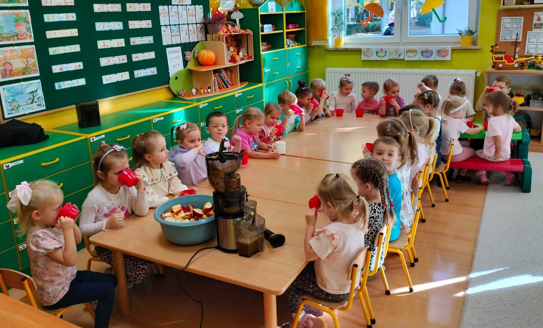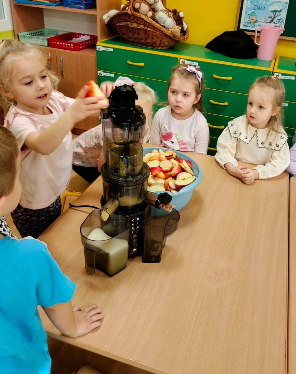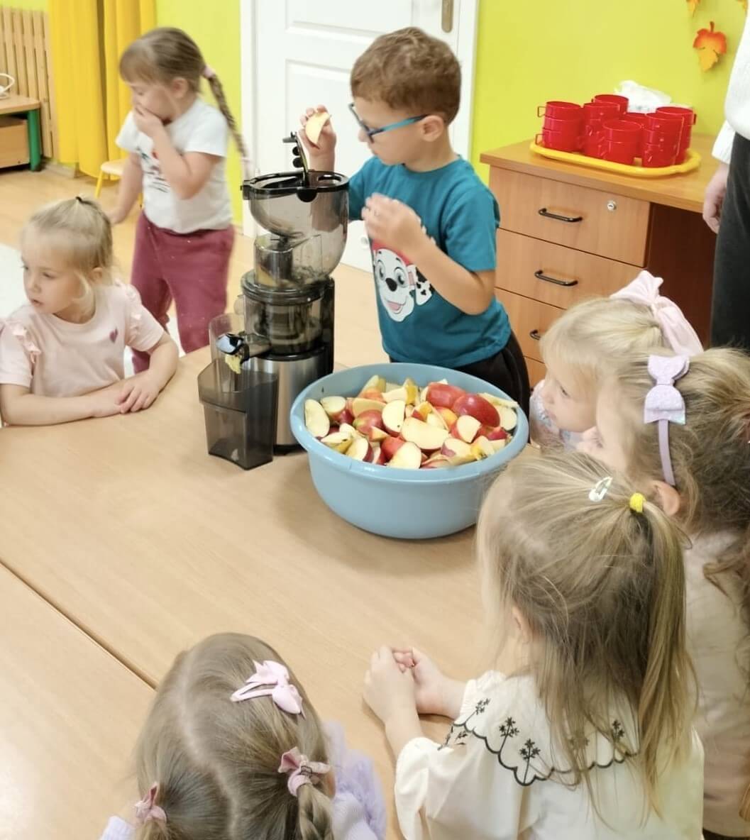 3 listopada 2025 r. Dzieci z grupy „Bratki” przygotowały pyszny sok warzywno-owocowy! 🍎🥕 Wykorzystaliśmy jesienne skarby – słodkie jabłka i chrupiące marchewki. Dla odrobiny słodyczy dodaliśmy też kilka bananów. Tak powstał nasz pyszny sok „Kubuś” – zdrowy, bo bez dodatku cukru, za to pełen witamin i uśmiechów! 🙂
