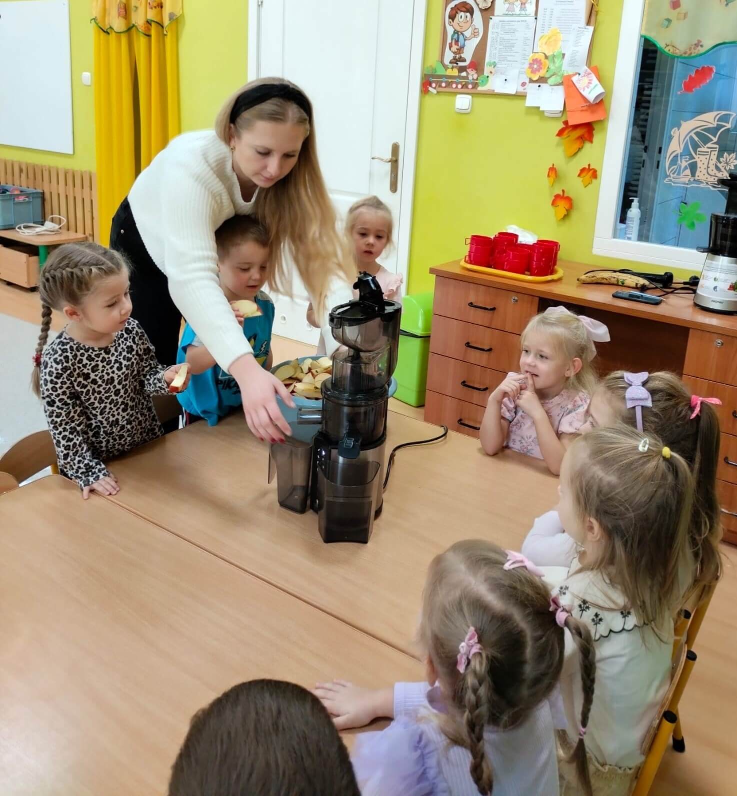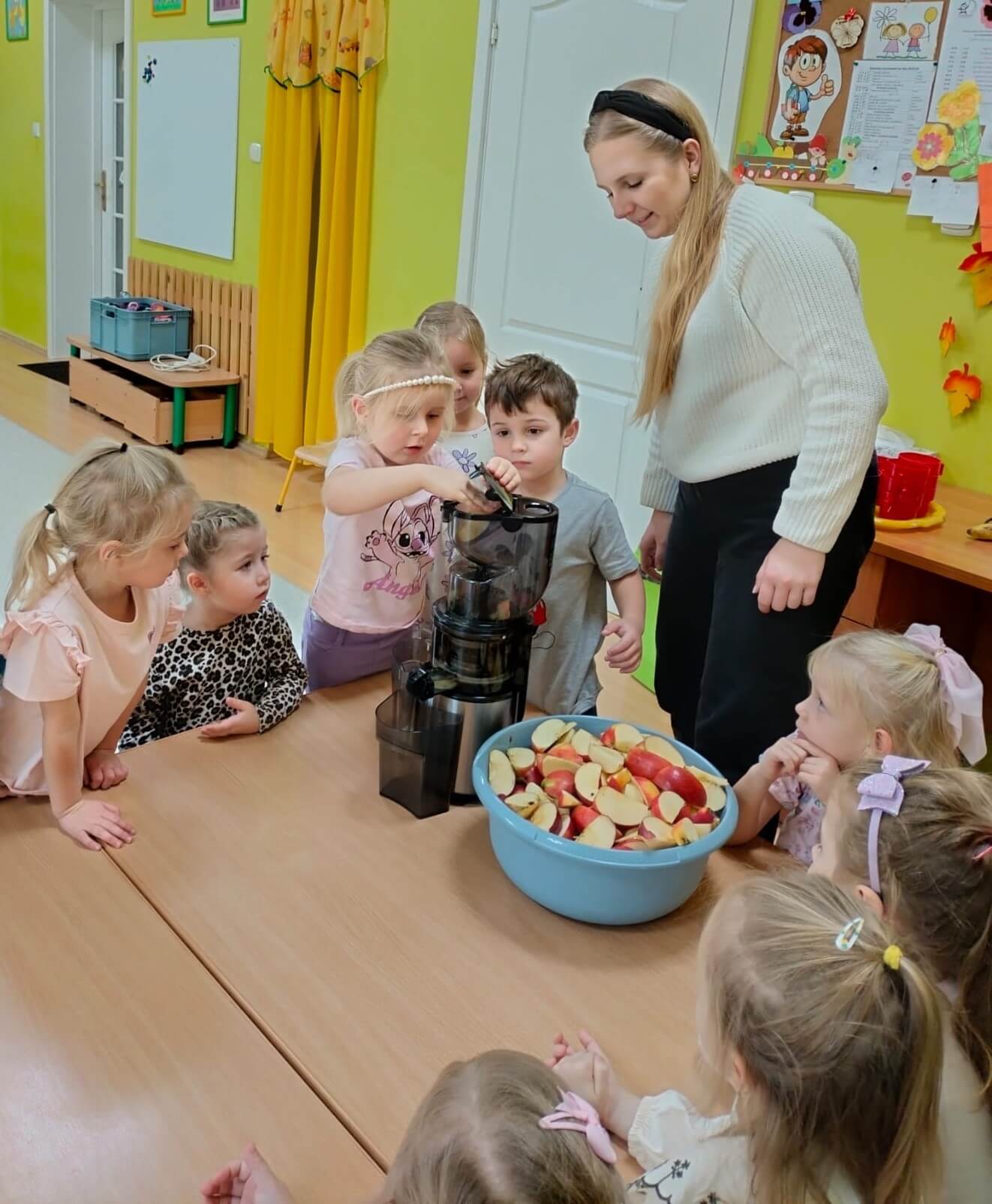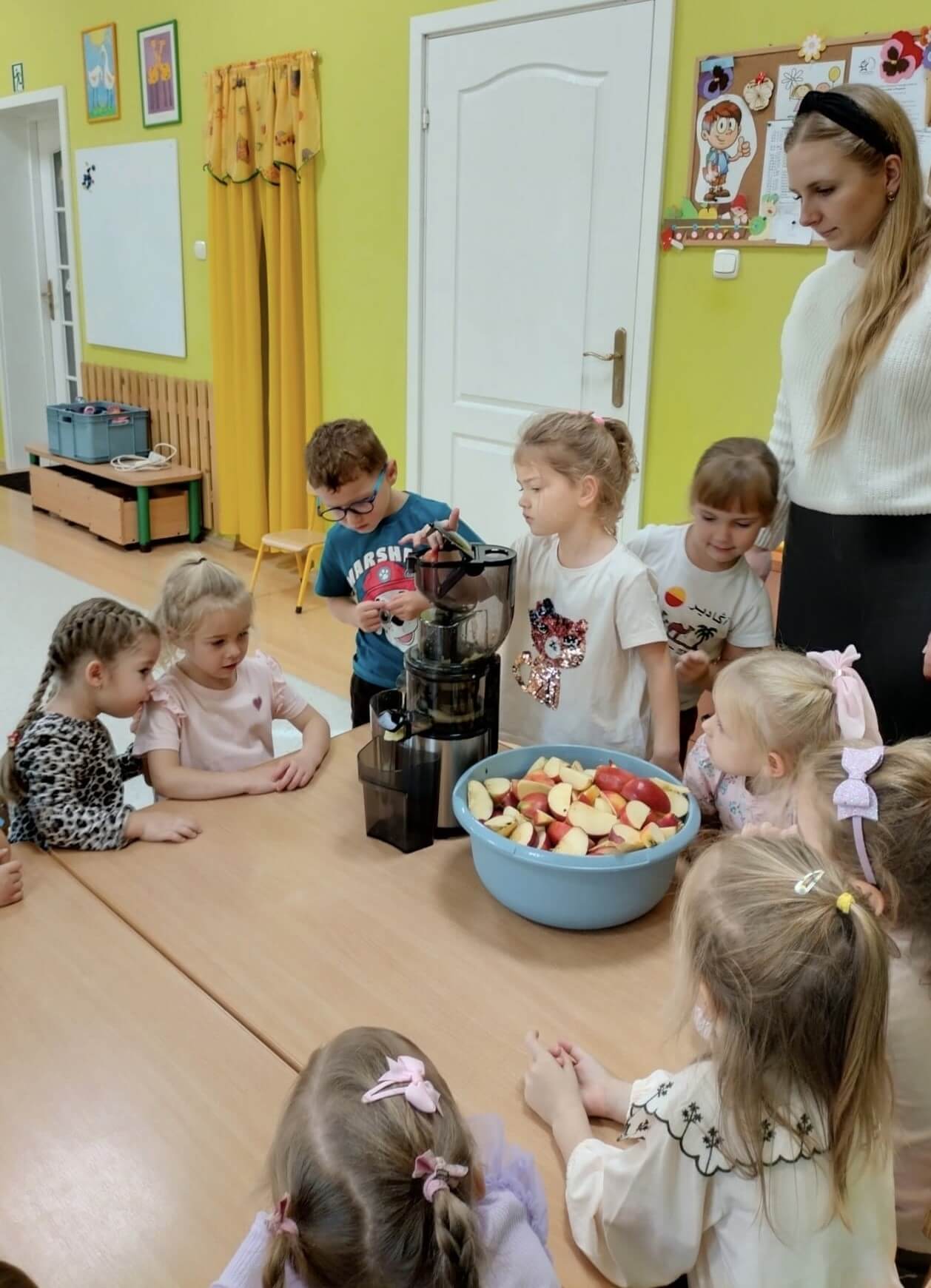 3 listopada 2025 r. Dzieci z grupy „Bratki” przygotowały pyszny sok warzywno-owocowy! 🍎🥕 Wykorzystaliśmy jesienne skarby – słodkie jabłka i chrupiące marchewki. Dla odrobiny słodyczy dodaliśmy też kilka bananów. Tak powstał nasz pyszny sok „Kubuś” – zdrowy, bo bez dodatku cukru, za to pełen witamin i uśmiechów! 🙂