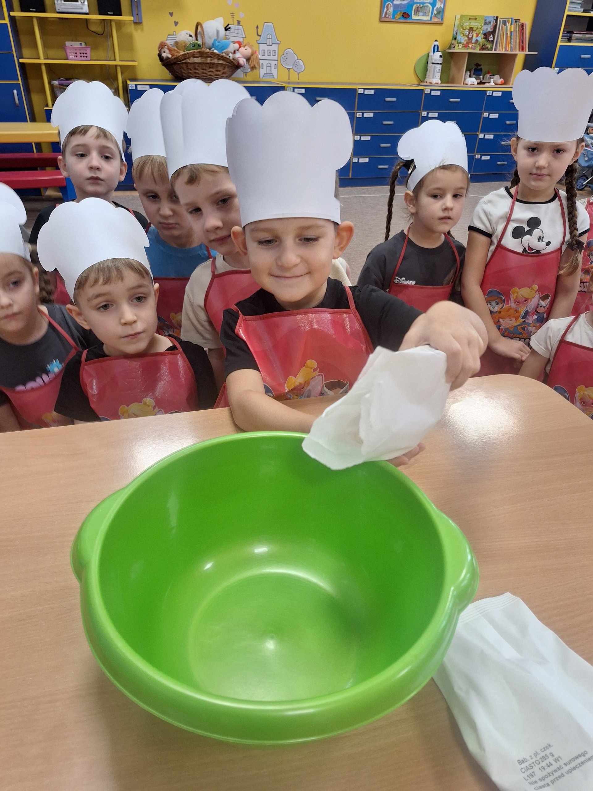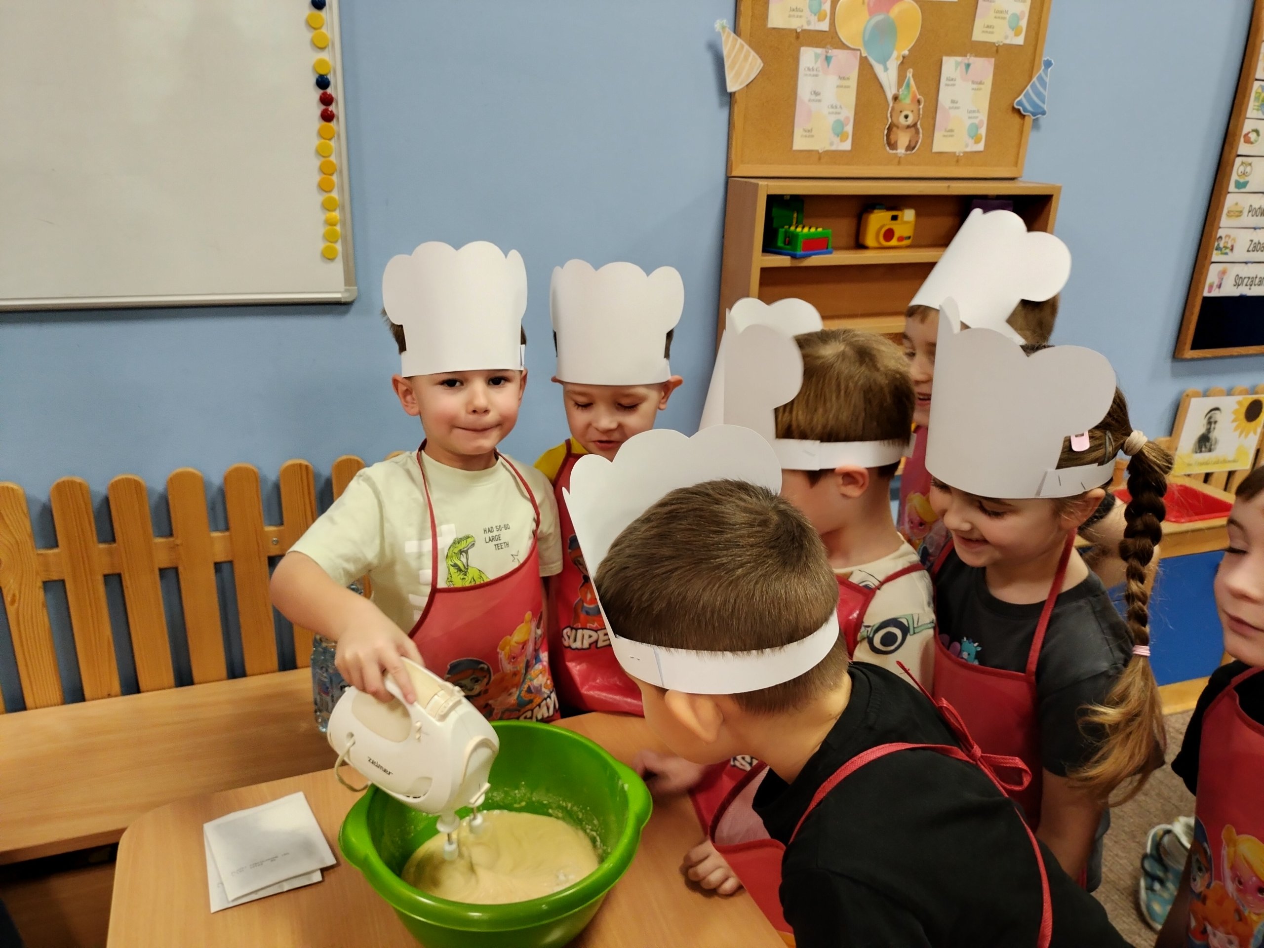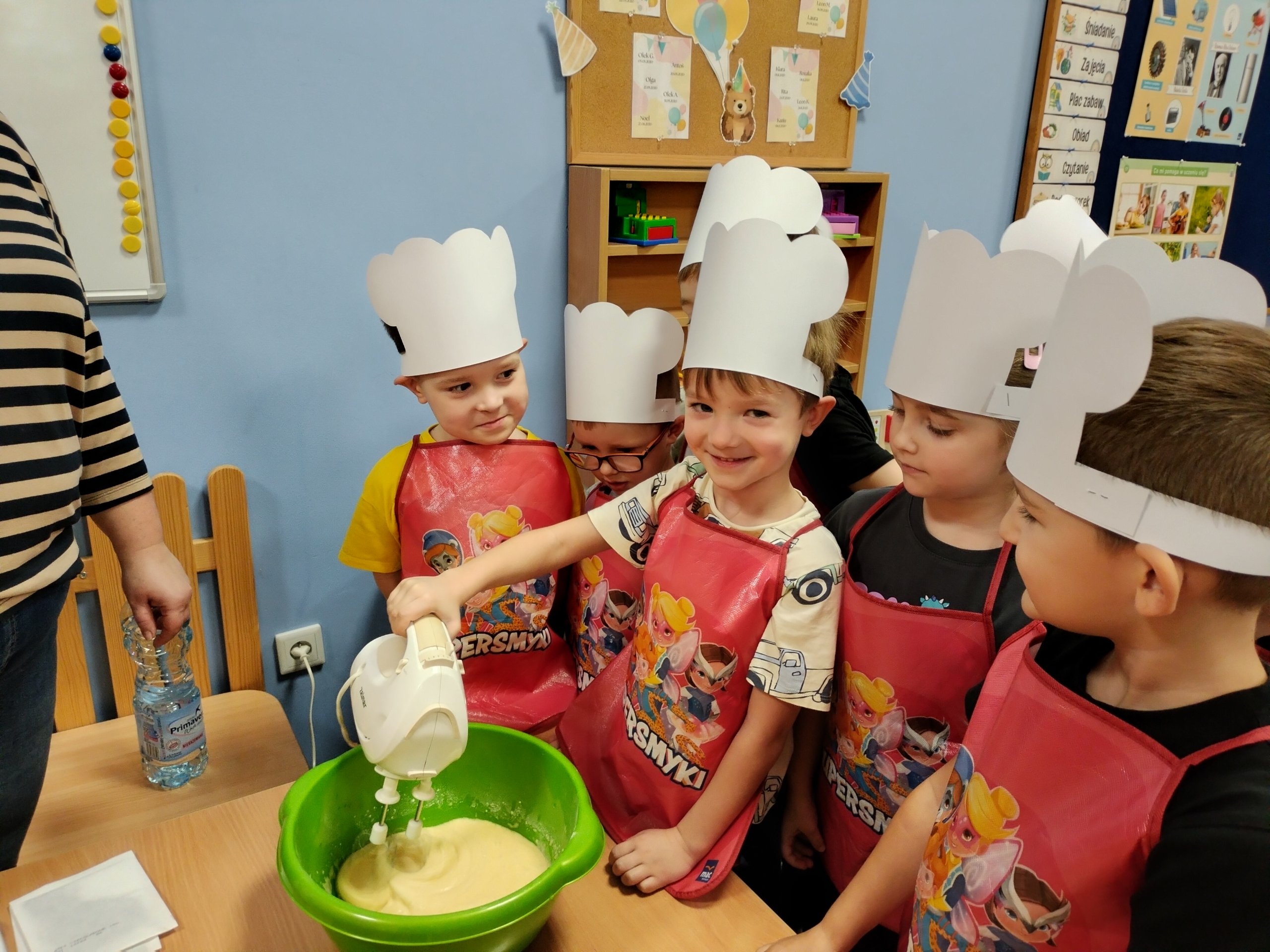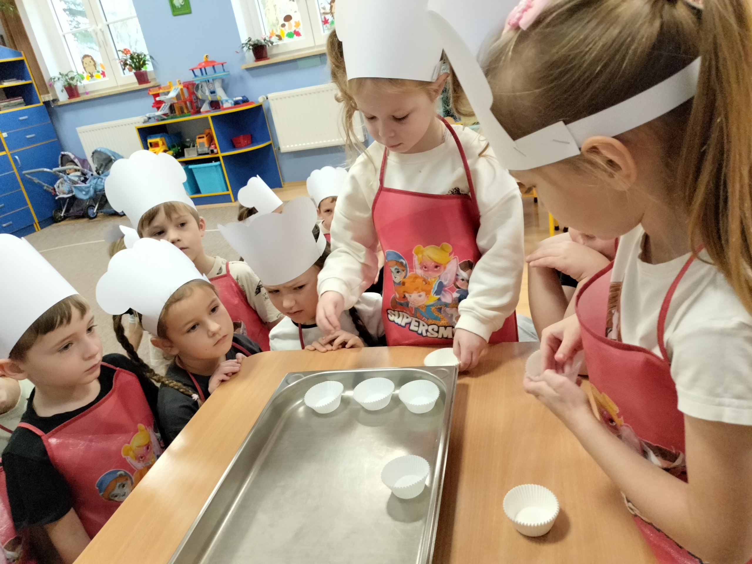 12 listopada 2025 r. Dzisiaj w naszym przedszkolu unosił się zapach pysznych babeczek, bowiem grupa „Maków” zamieniła się na zajęciach w małych cukierników. Pięciolatki z zapałem mieszały odpowiednie składniki i pilnowały proporcji (czasem dodawały trochę na „oko” :). Babeczki sprawiły dzieciom wiele radości i były doskonałą okazją do nauki współpracy oraz rozwijały samodzielność. A do tego były piękne i pyyyszne !
