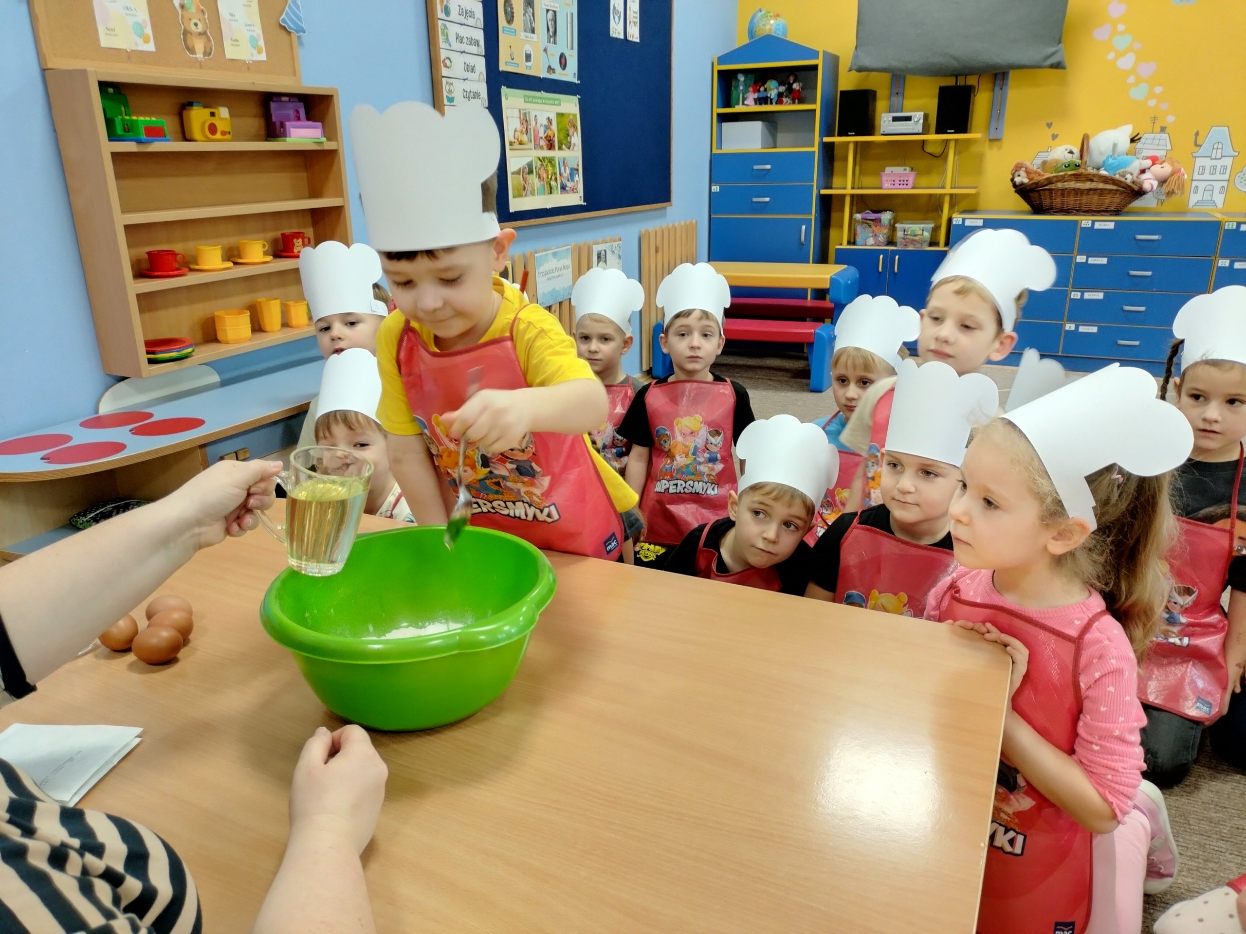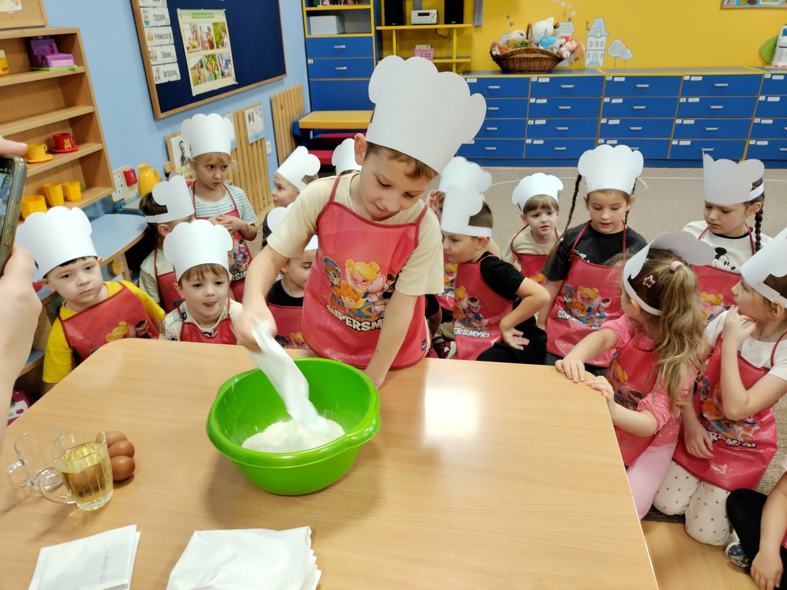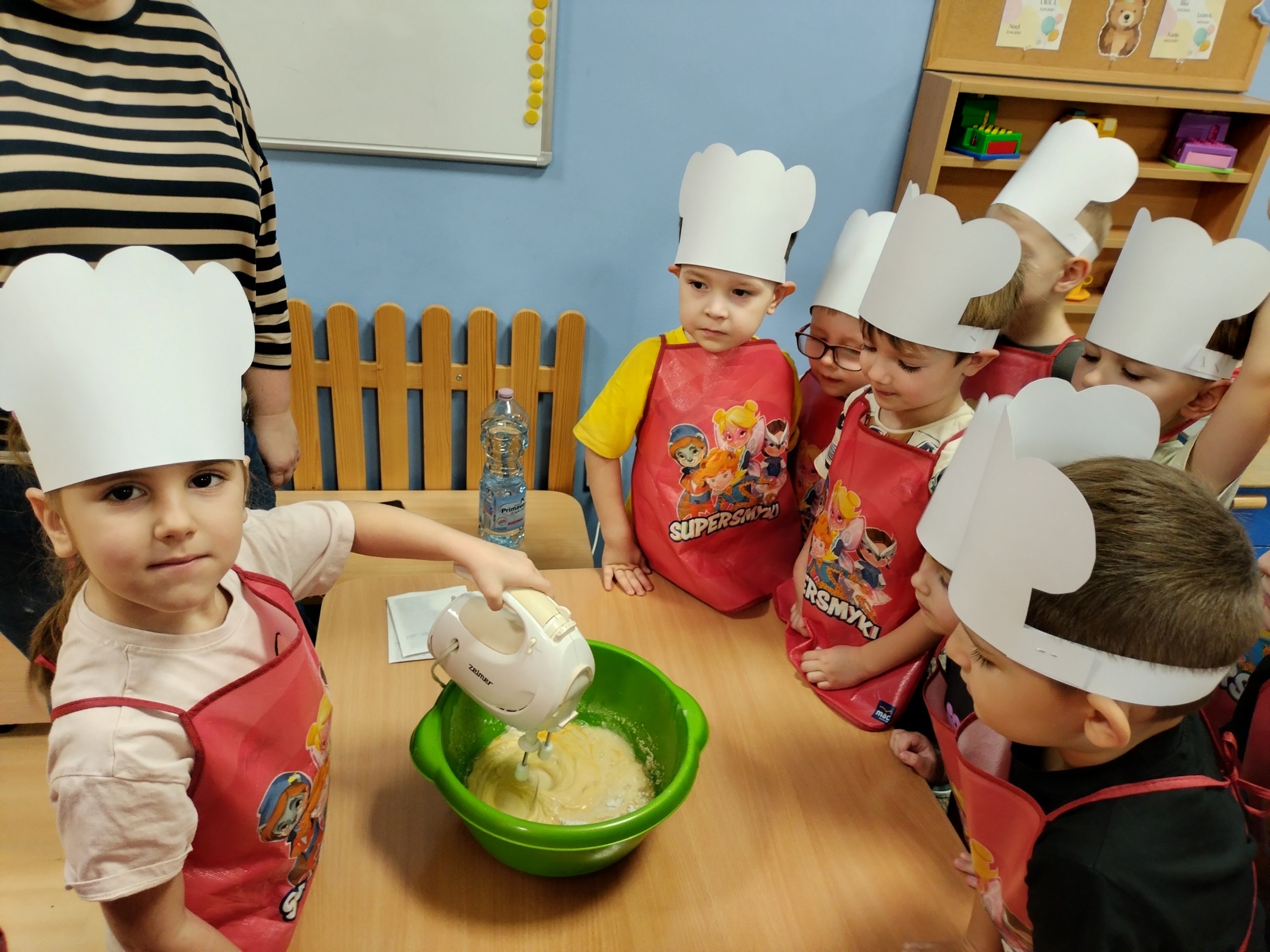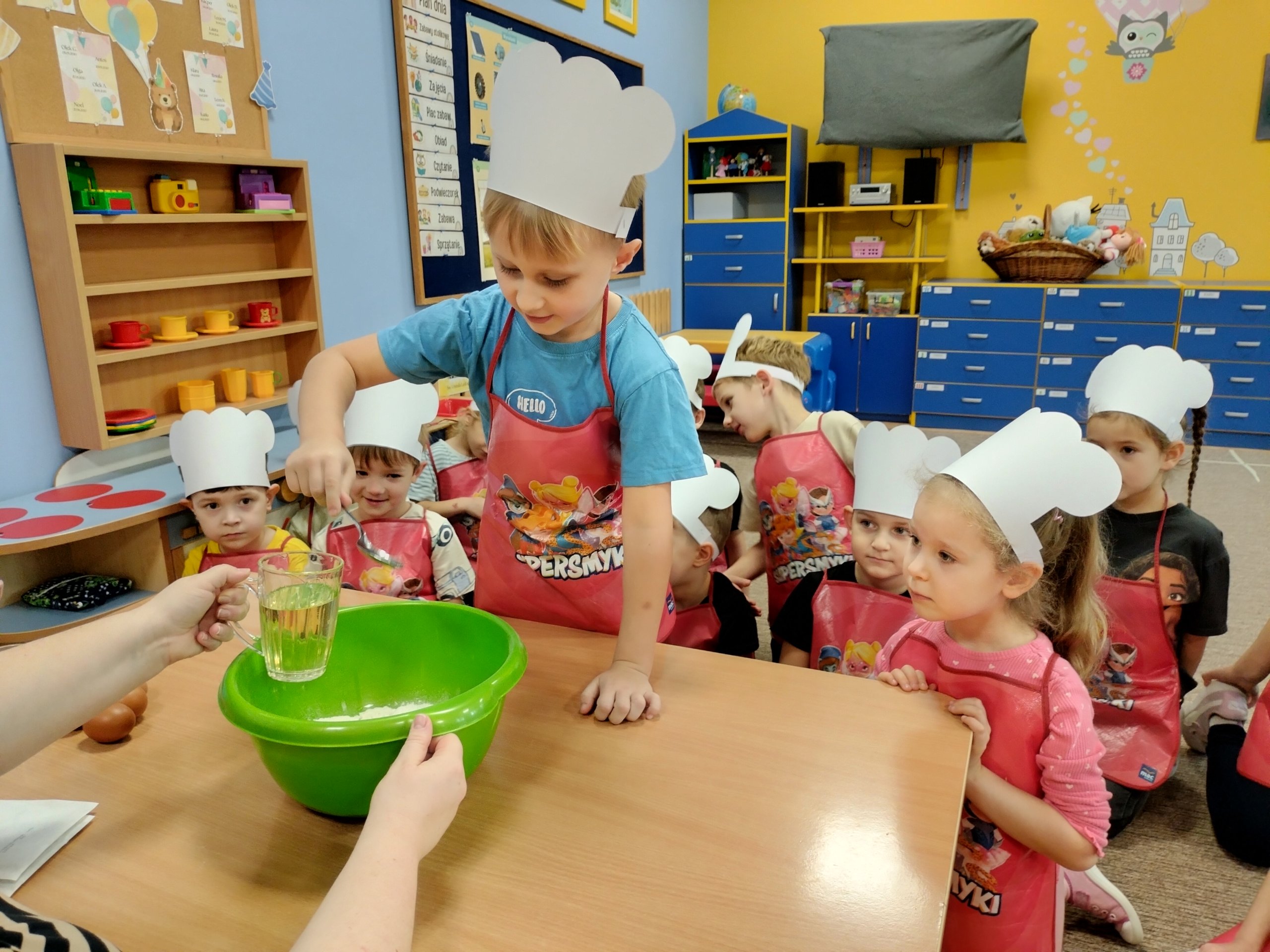 12 listopada 2025 r. Dzisiaj w naszym przedszkolu unosił się zapach pysznych babeczek, bowiem grupa „Maków” zamieniła się na zajęciach w małych cukierników. Pięciolatki z zapałem mieszały odpowiednie składniki i pilnowały proporcji (czasem dodawały trochę na „oko” :). Babeczki sprawiły dzieciom wiele radości i były doskonałą okazją do nauki współpracy oraz rozwijały samodzielność. A do tego były piękne i pyyyszne !