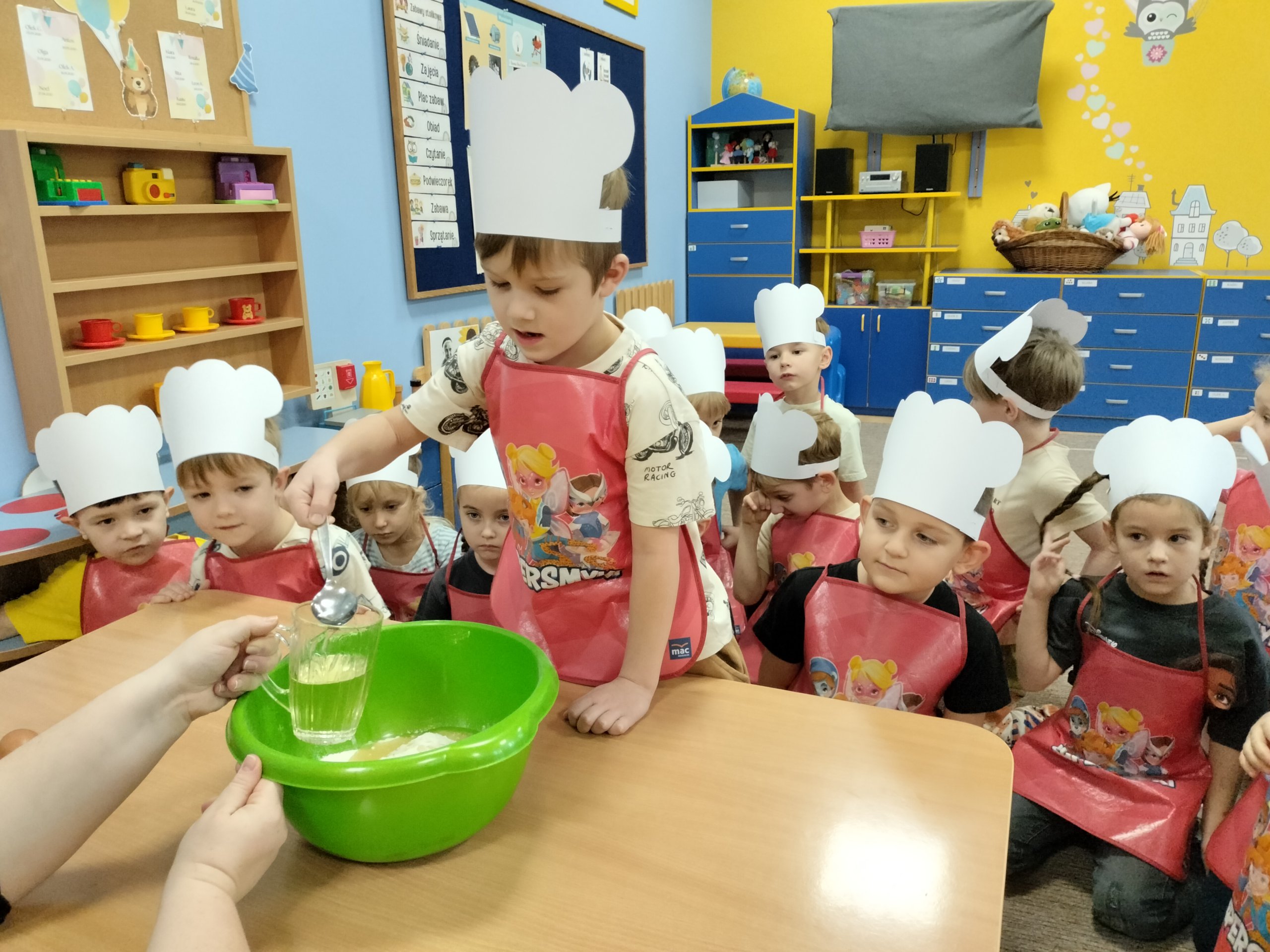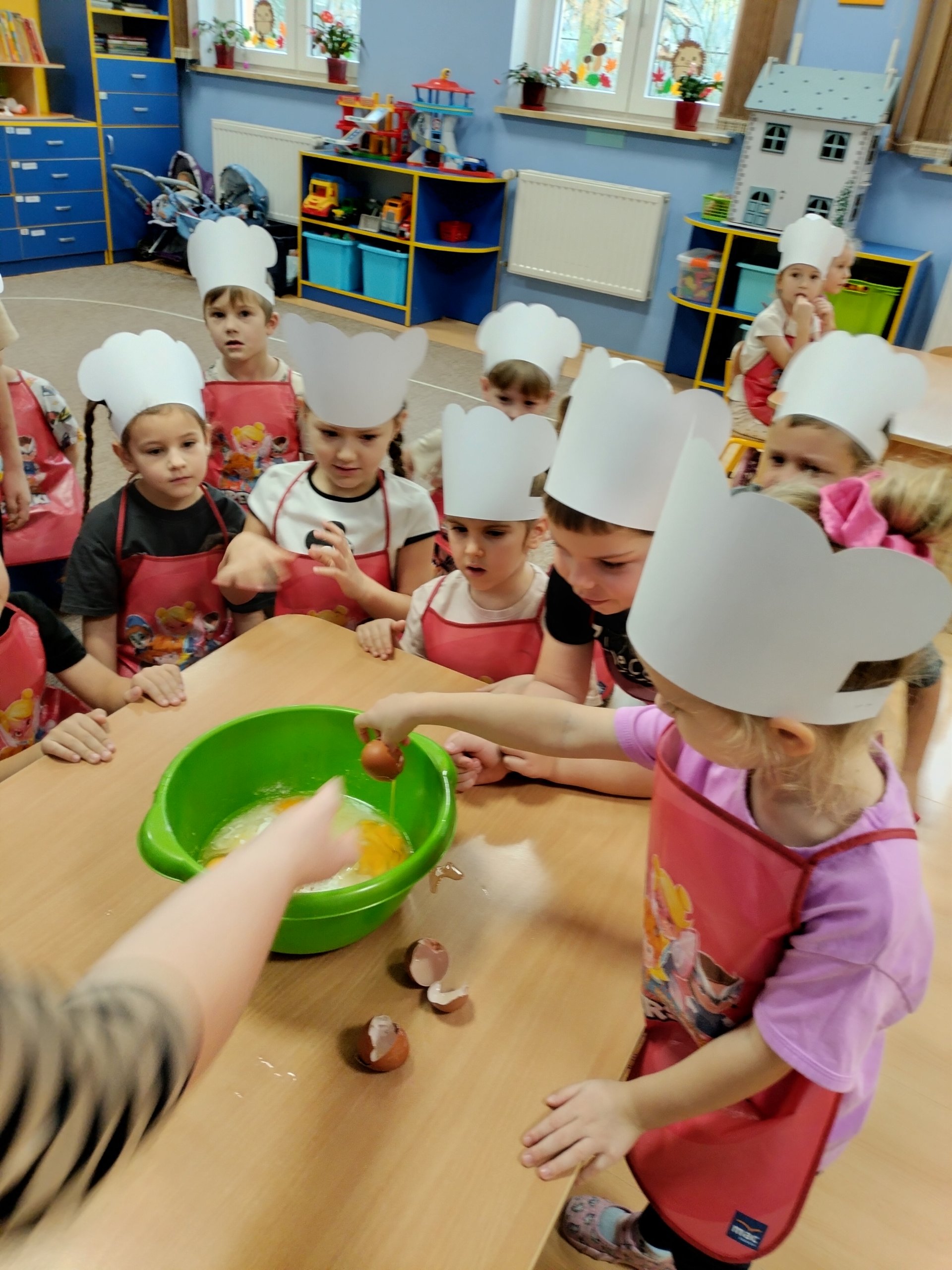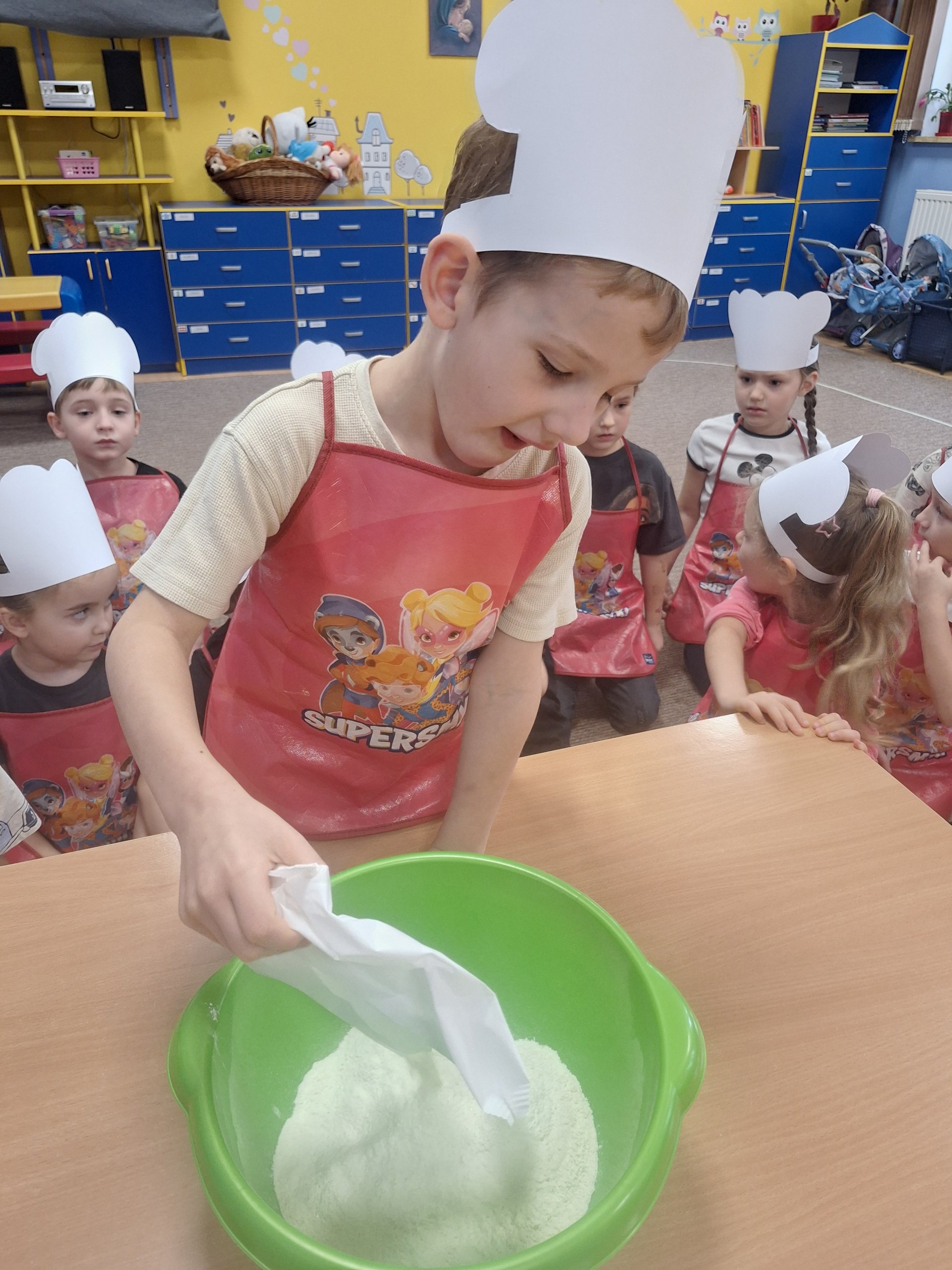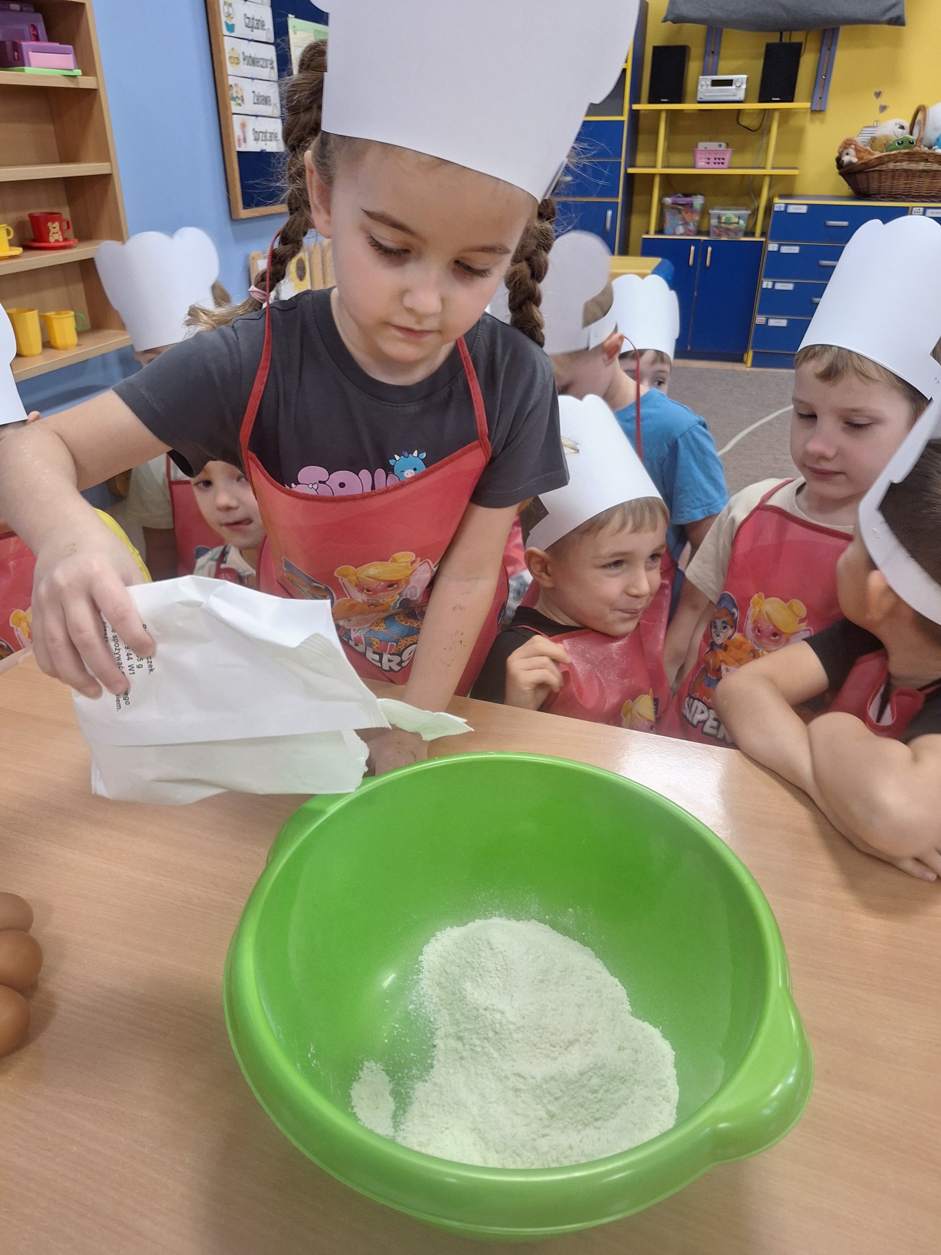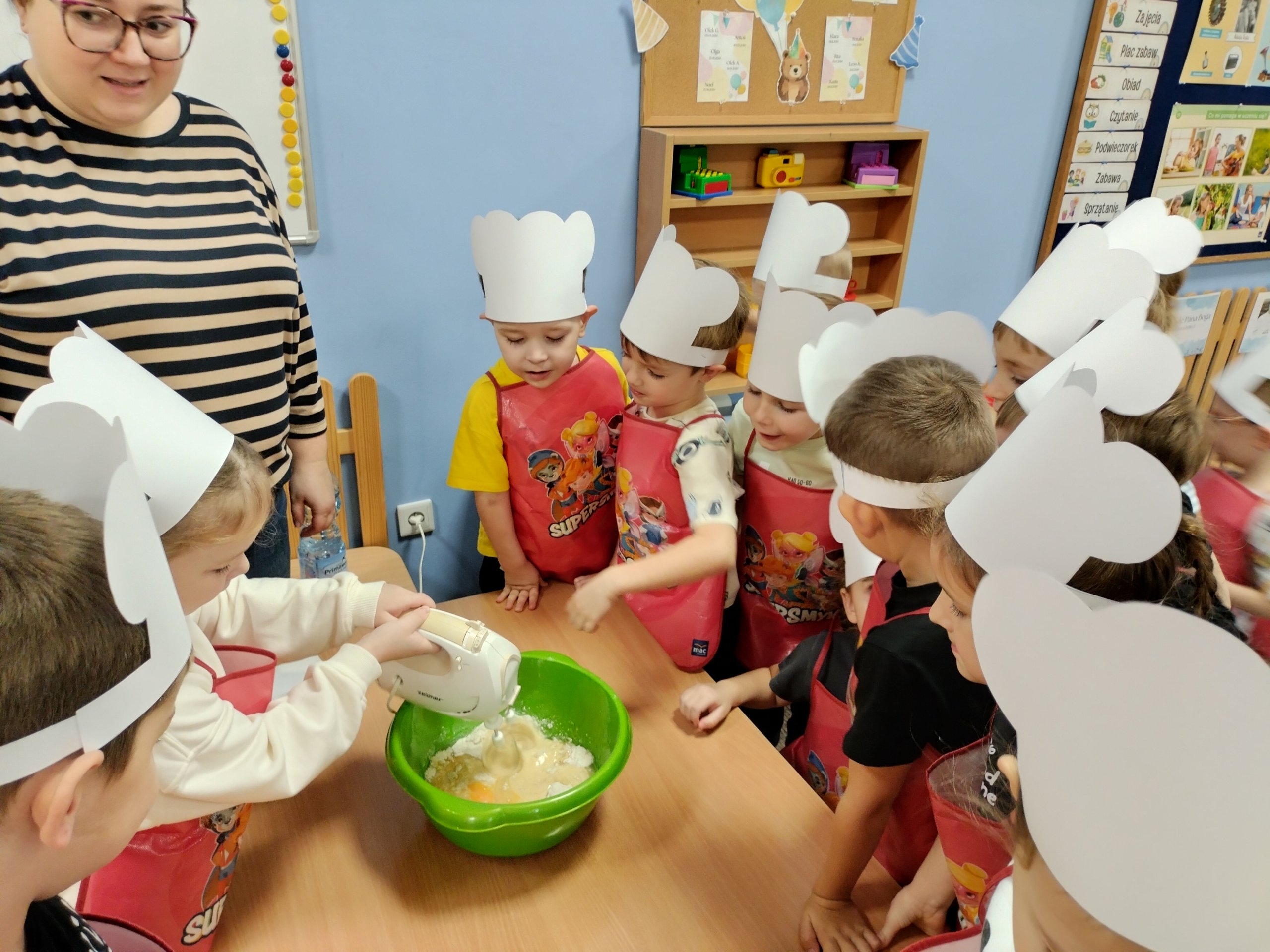 12 listopada 2025 r. Dzisiaj w naszym przedszkolu unosił się zapach pysznych babeczek, bowiem grupa „Maków” zamieniła się na zajęciach w małych cukierników. Pięciolatki z zapałem mieszały odpowiednie składniki i pilnowały proporcji (czasem dodawały trochę na „oko” :). Babeczki sprawiły dzieciom wiele radości i były doskonałą okazją do nauki współpracy oraz rozwijały samodzielność. A do tego były piękne i pyyyszne !