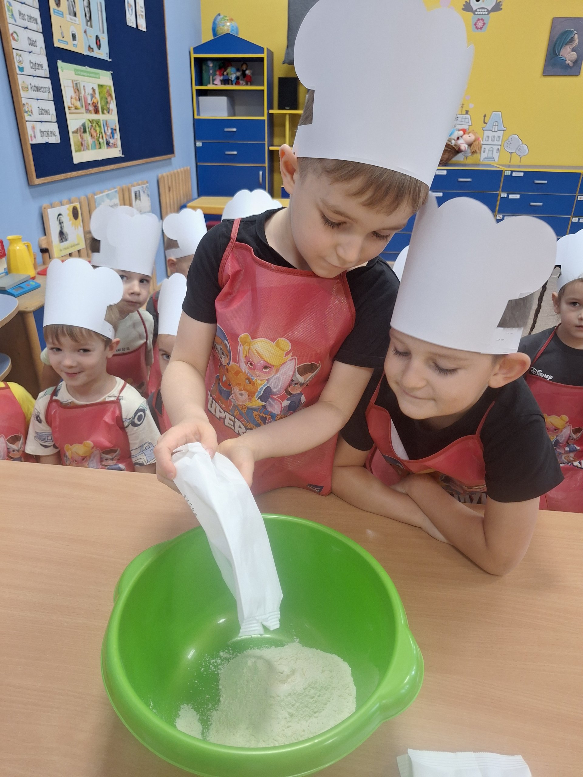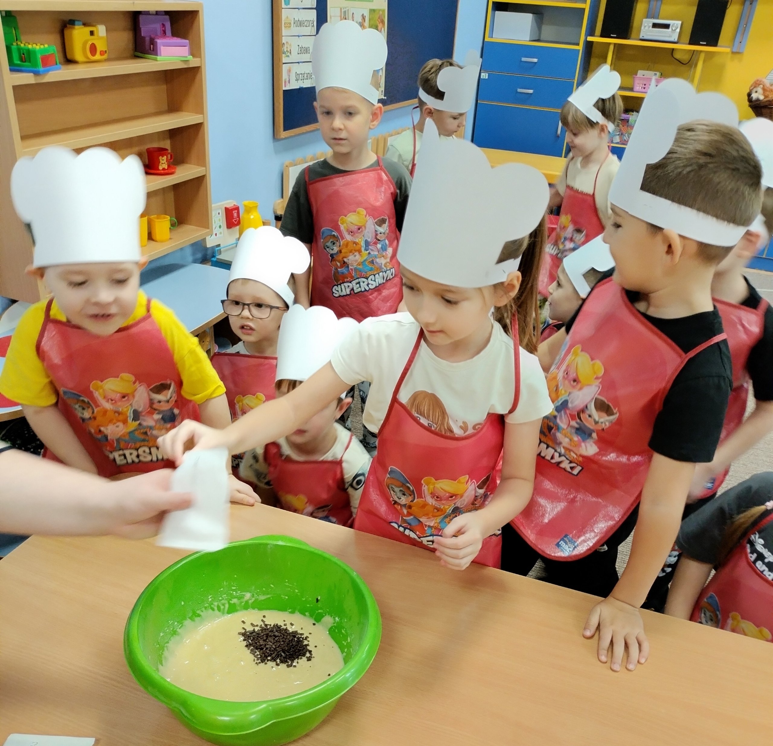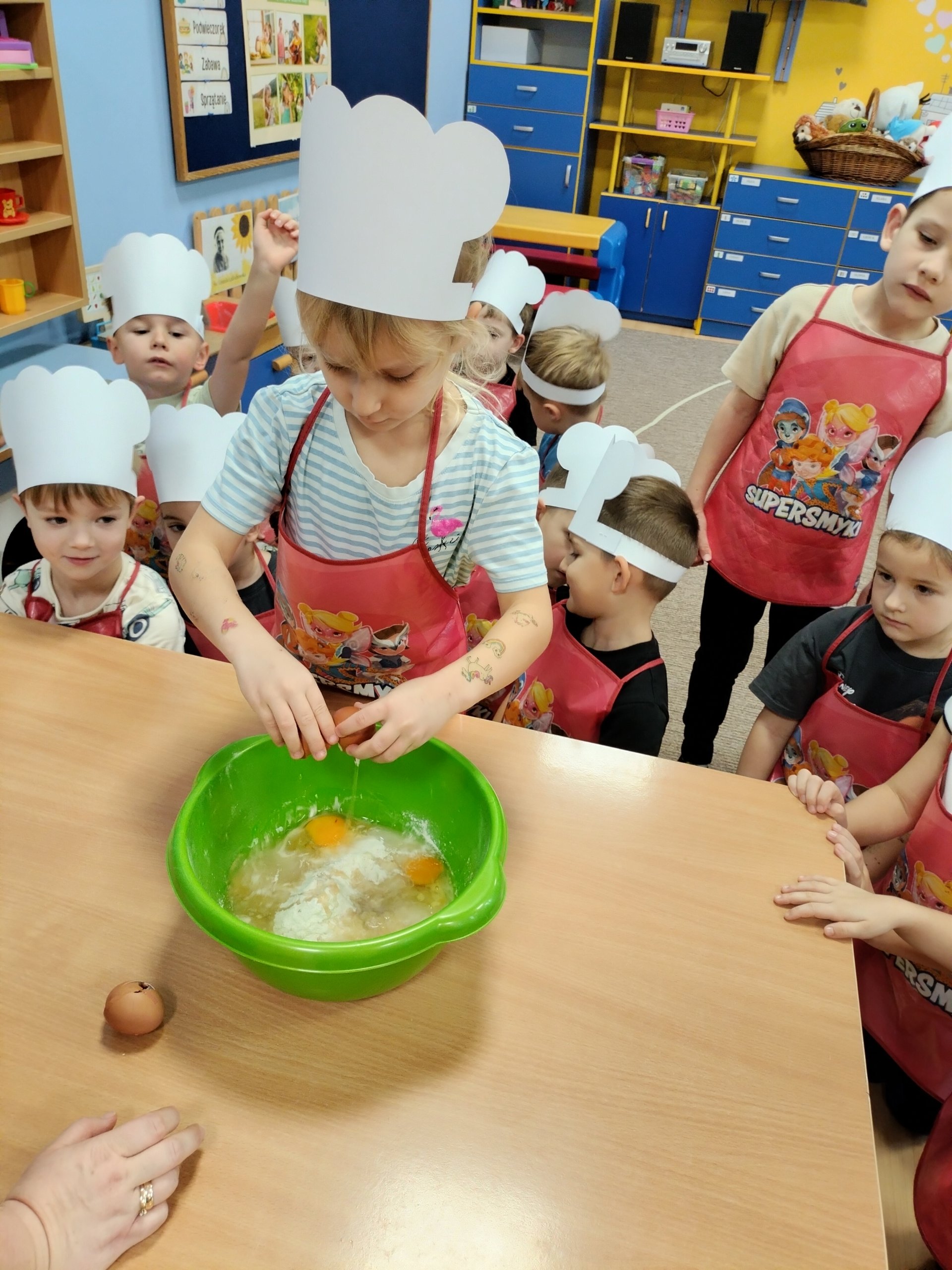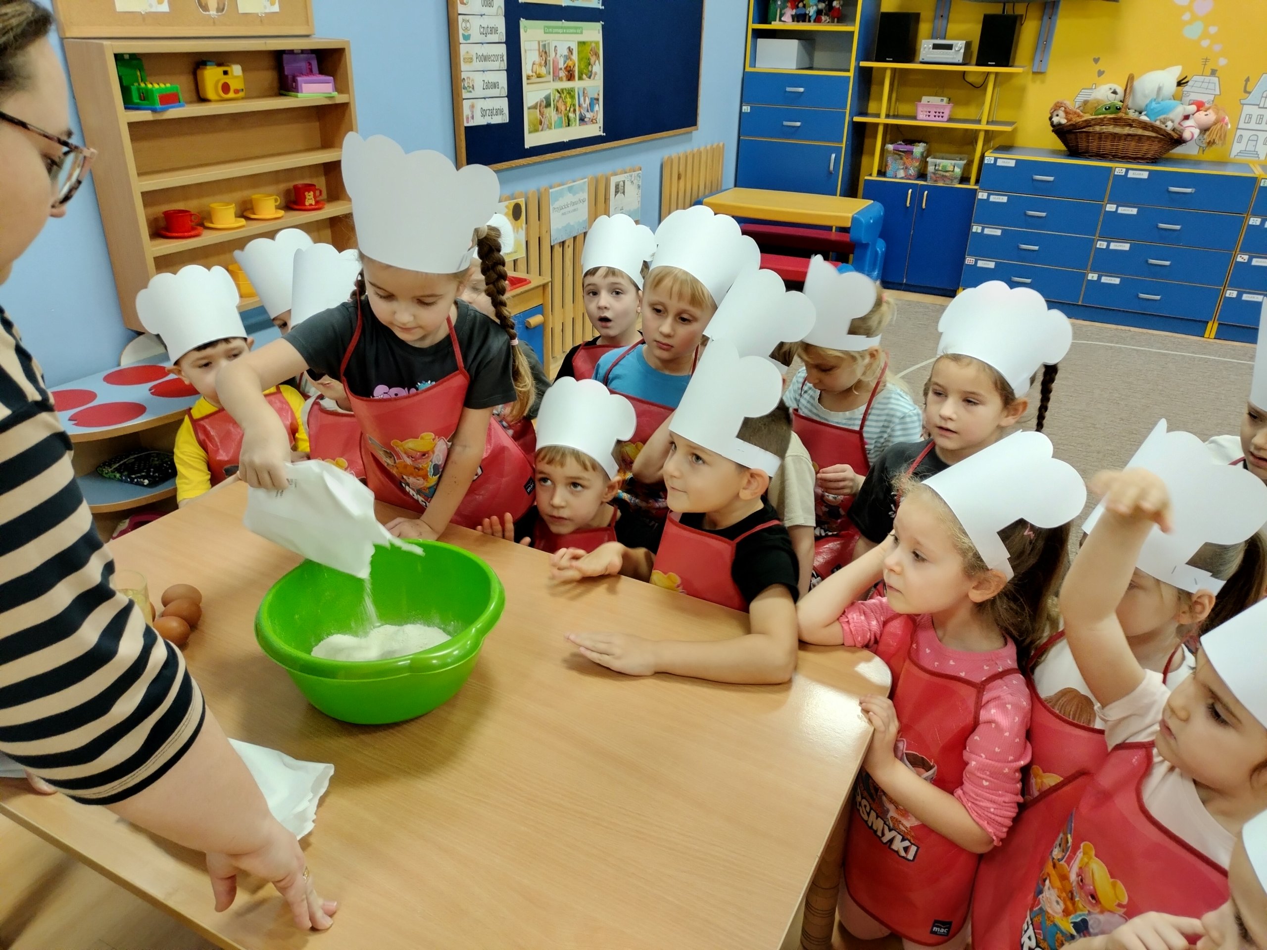 12 listopada 2025 r. Dzisiaj w naszym przedszkolu unosił się zapach pysznych babeczek, bowiem grupa „Maków” zamieniła się na zajęciach w małych cukierników. Pięciolatki z zapałem mieszały odpowiednie składniki i pilnowały proporcji (czasem dodawały trochę na „oko” :). Babeczki sprawiły dzieciom wiele radości i były doskonałą okazją do nauki współpracy oraz rozwijały samodzielność. A do tego były piękne i pyyyszne !