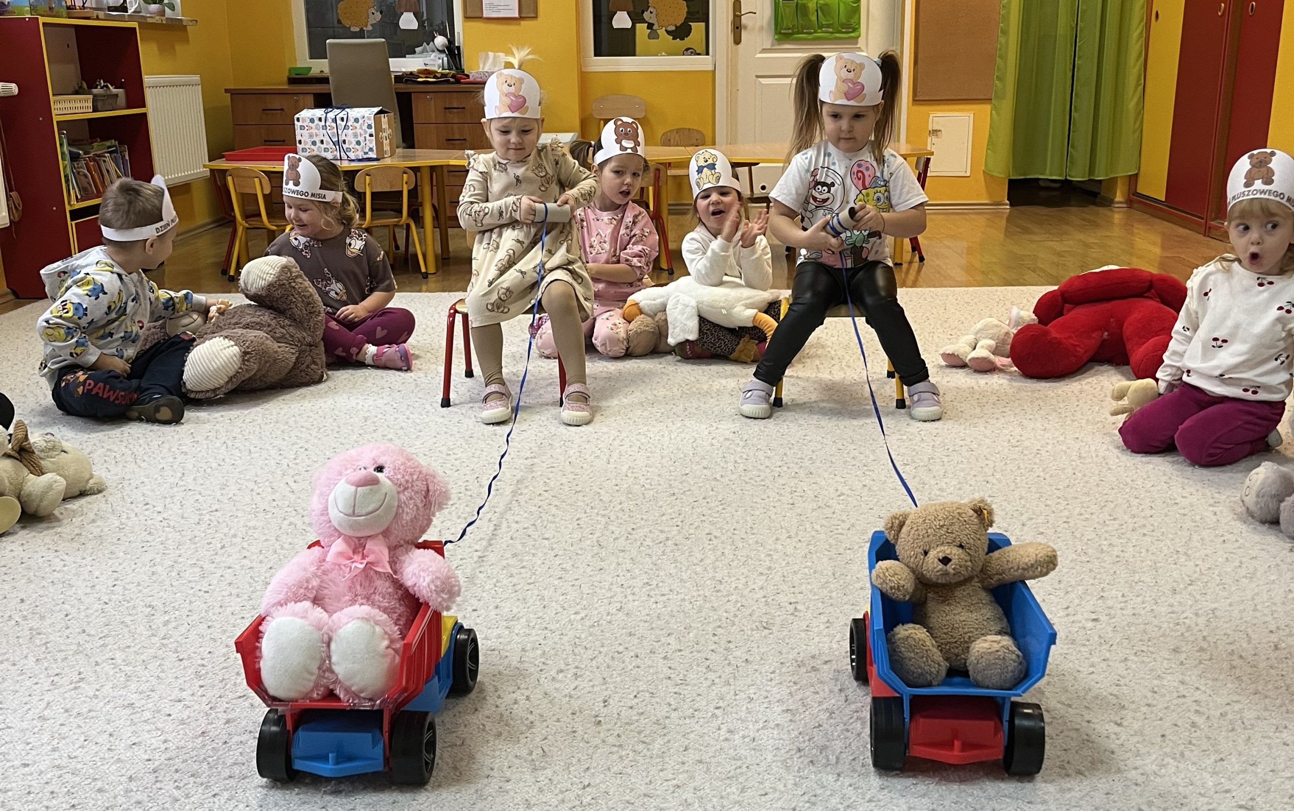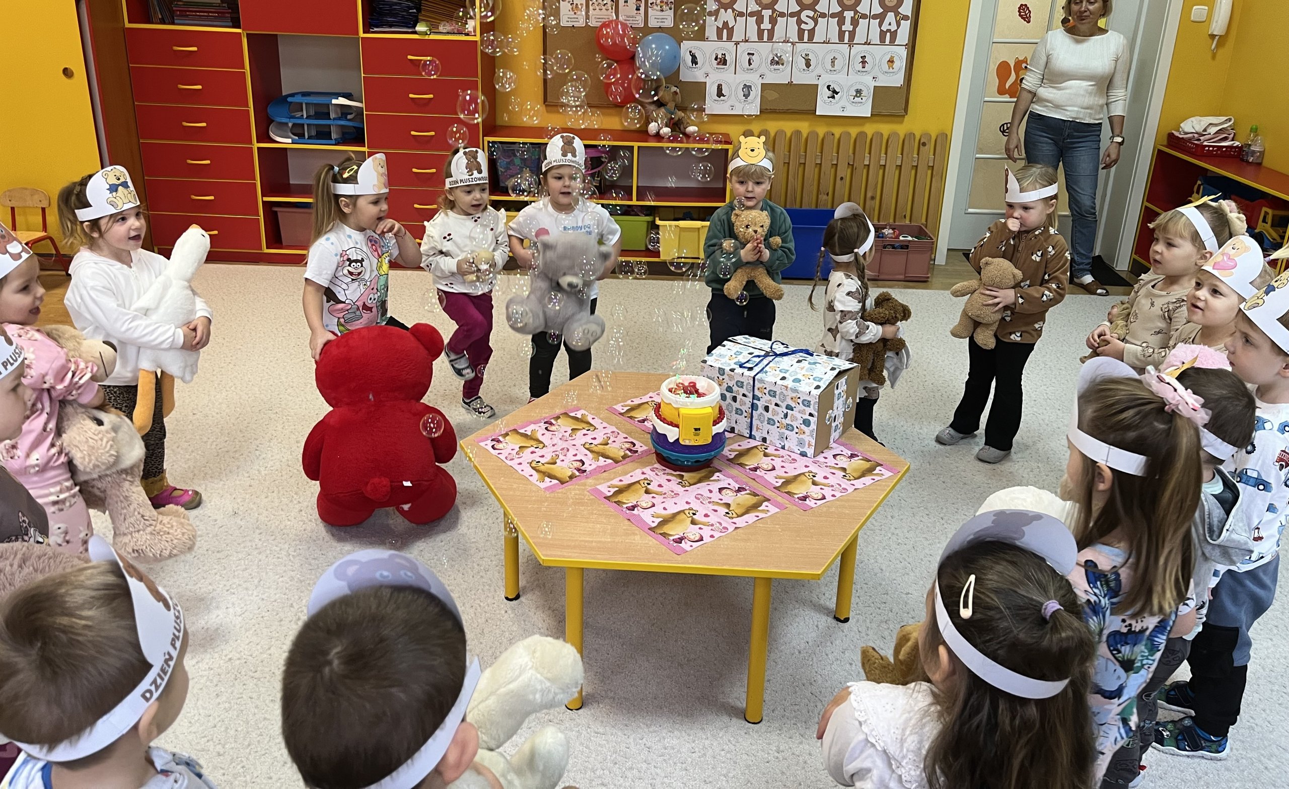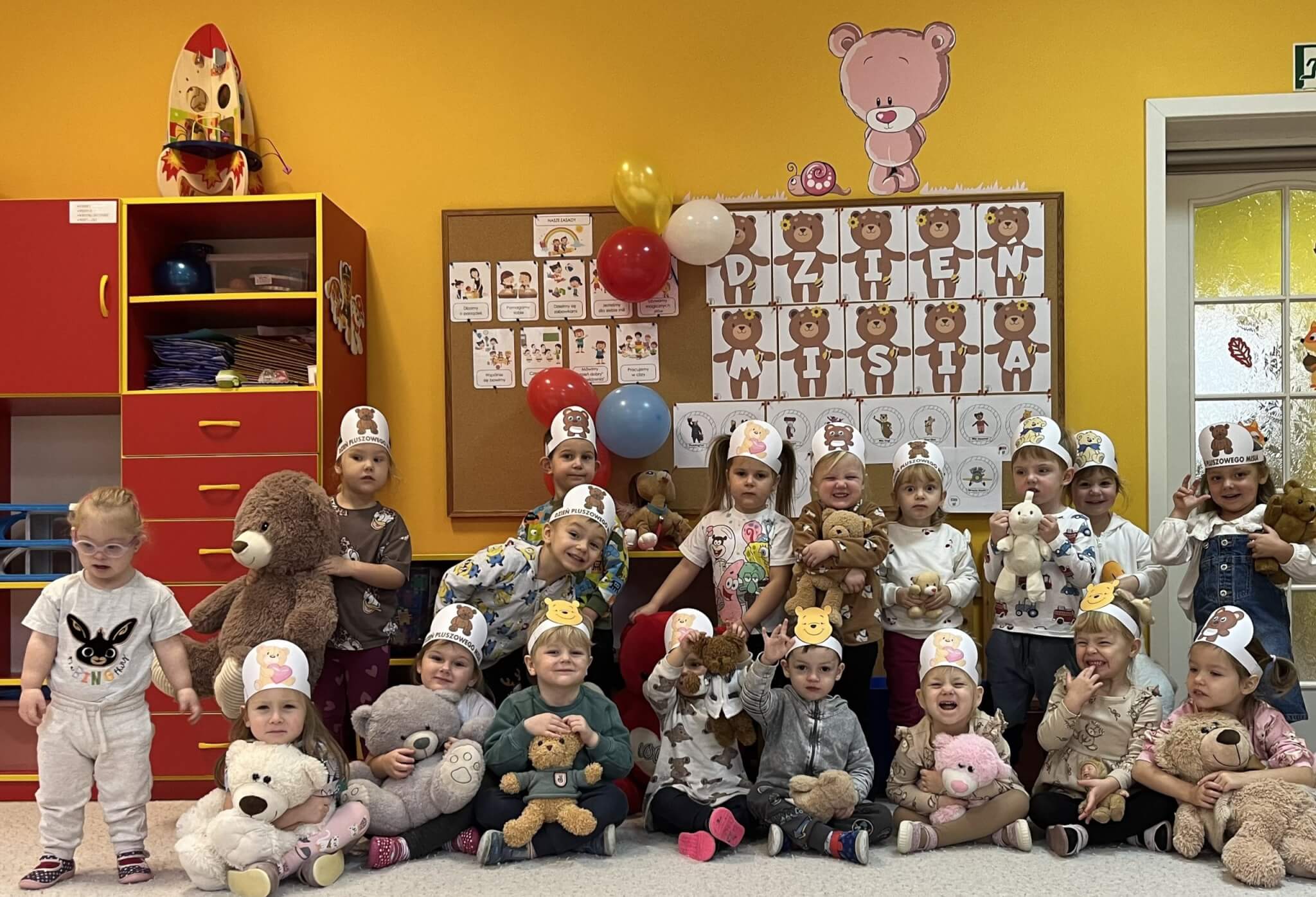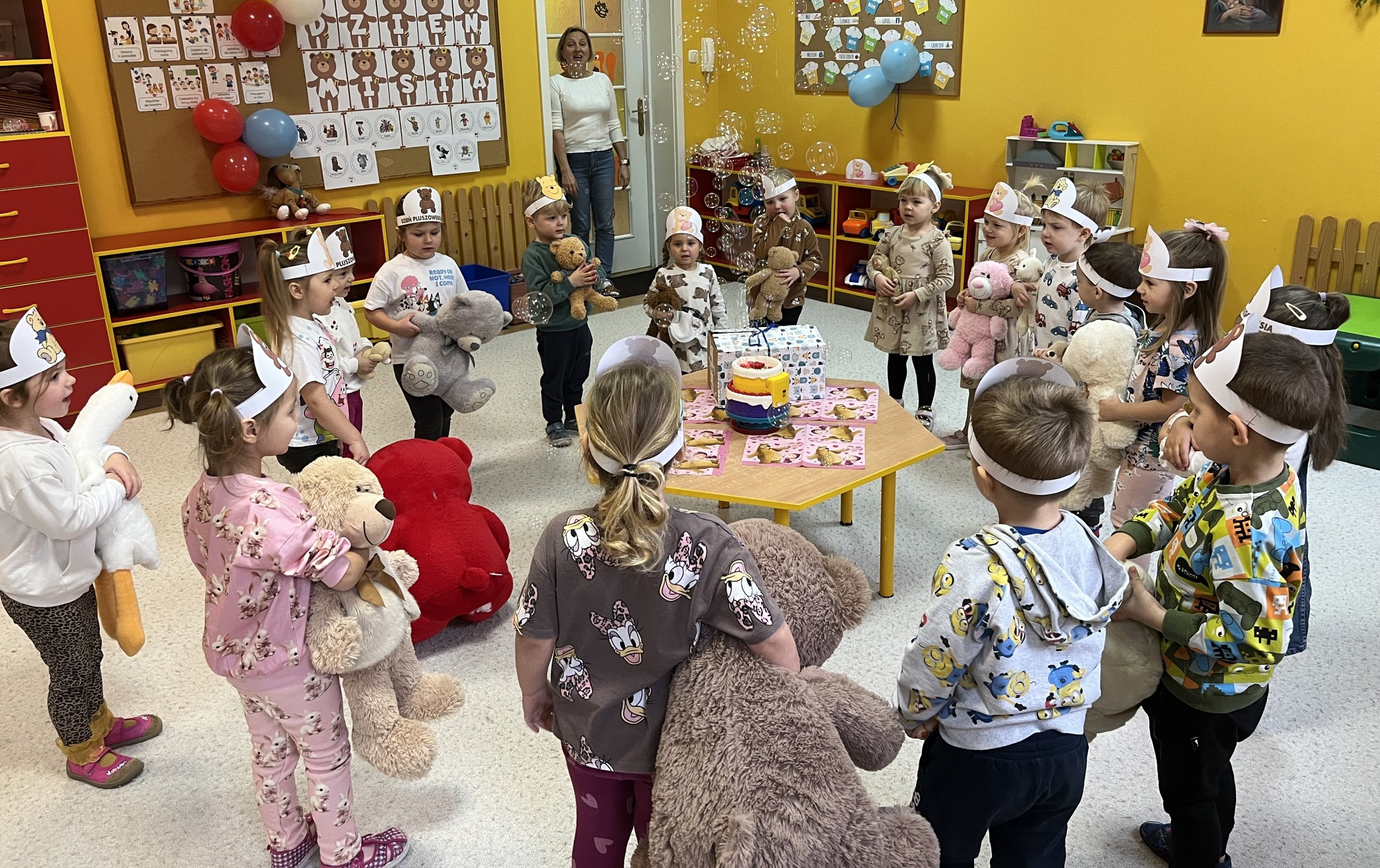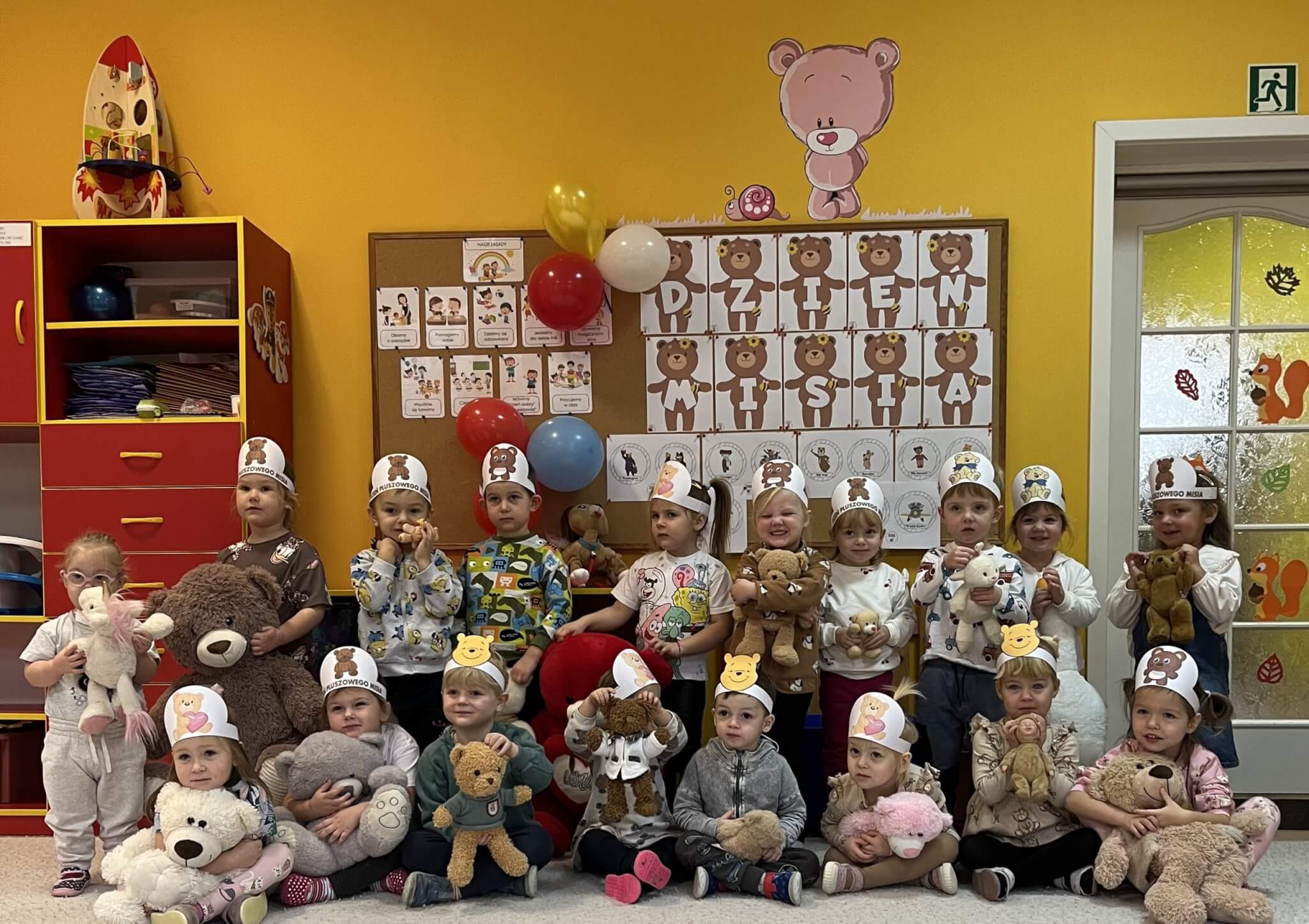 25 listopada 2025 r. Dziś w grupie „Stokrotek” obchodziliśmy radosne i długo wyczekiwane Święto Pluszowego Misia. Dzieci przyszły do przedszkola w wyjątkowych humorach, trzymając w ramionach swoje ukochane misie – duże, małe, kolorowe, klasyczne i te zupełnie niezwykłe. Każdy przedszkolak z dumą prezentował swojego pluszowego przyjaciela, opowiadając, jak ma na imię i dlaczego jest dla niego ważny. Dzieci chętnie uczestniczyły w zabawach muzyczno-ruchowych „Niedźwiadek”, „Misie dwa”. Podczas zajęć plastycznych pokolorowały uroczego misia pod kolorową kołderką rozwijając kreatywność i sprawność manualną. Nie zabrakło także misiowych zabaw, wspólnego odśpiewania „Sto lat” oraz pamiątkowych zdjęć z pluszakami. Dzień upłynął w wyjątkowo ciepłej, przyjaznej atmosferze. Święto Pluszowego Misia stało się świetną okazją do integracji grupy, rozwijania umiejętności społecznych oraz wzmocnienia poczucia bezpieczeństwa poprzez bliskość ulubionej zabawki.