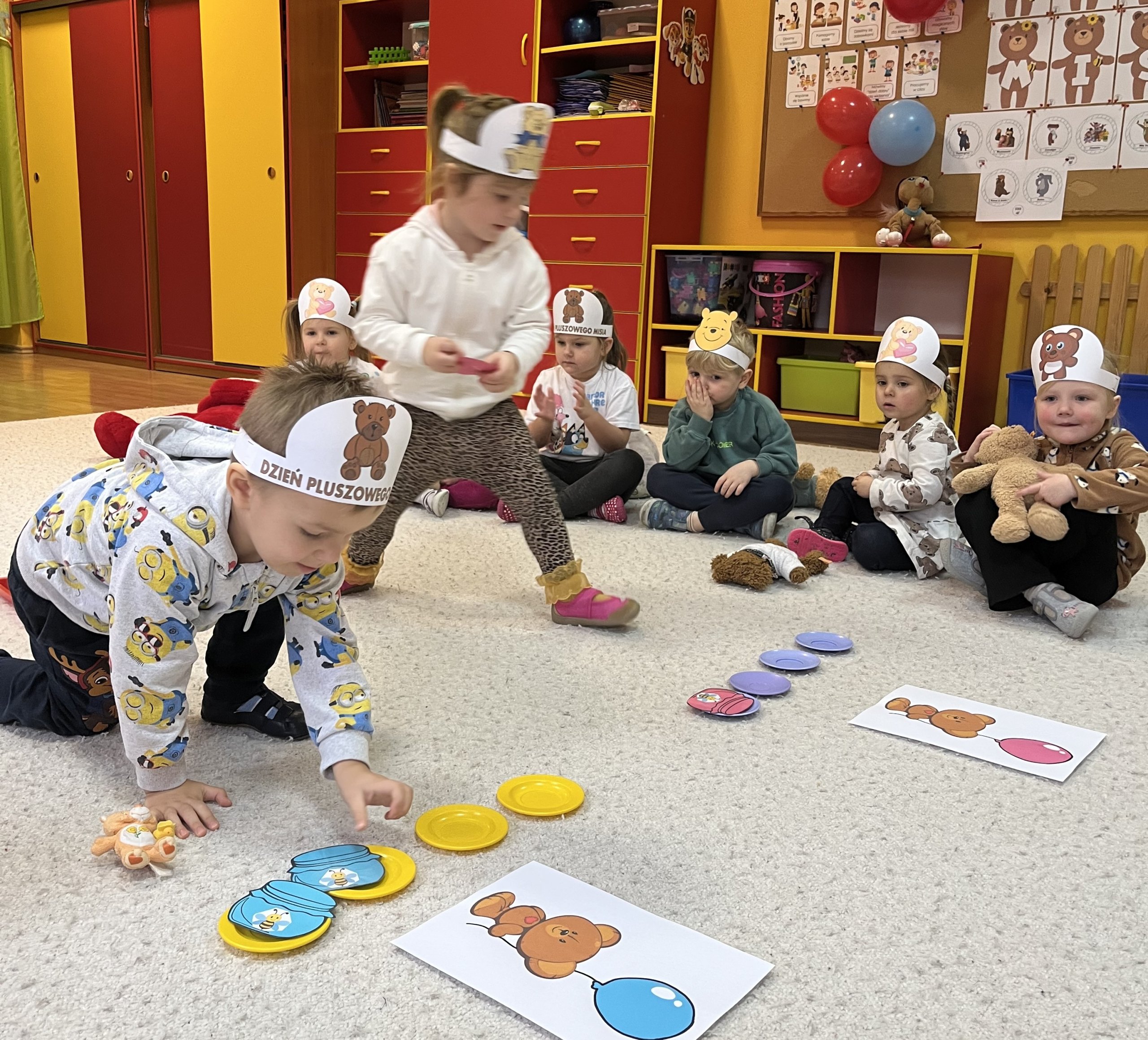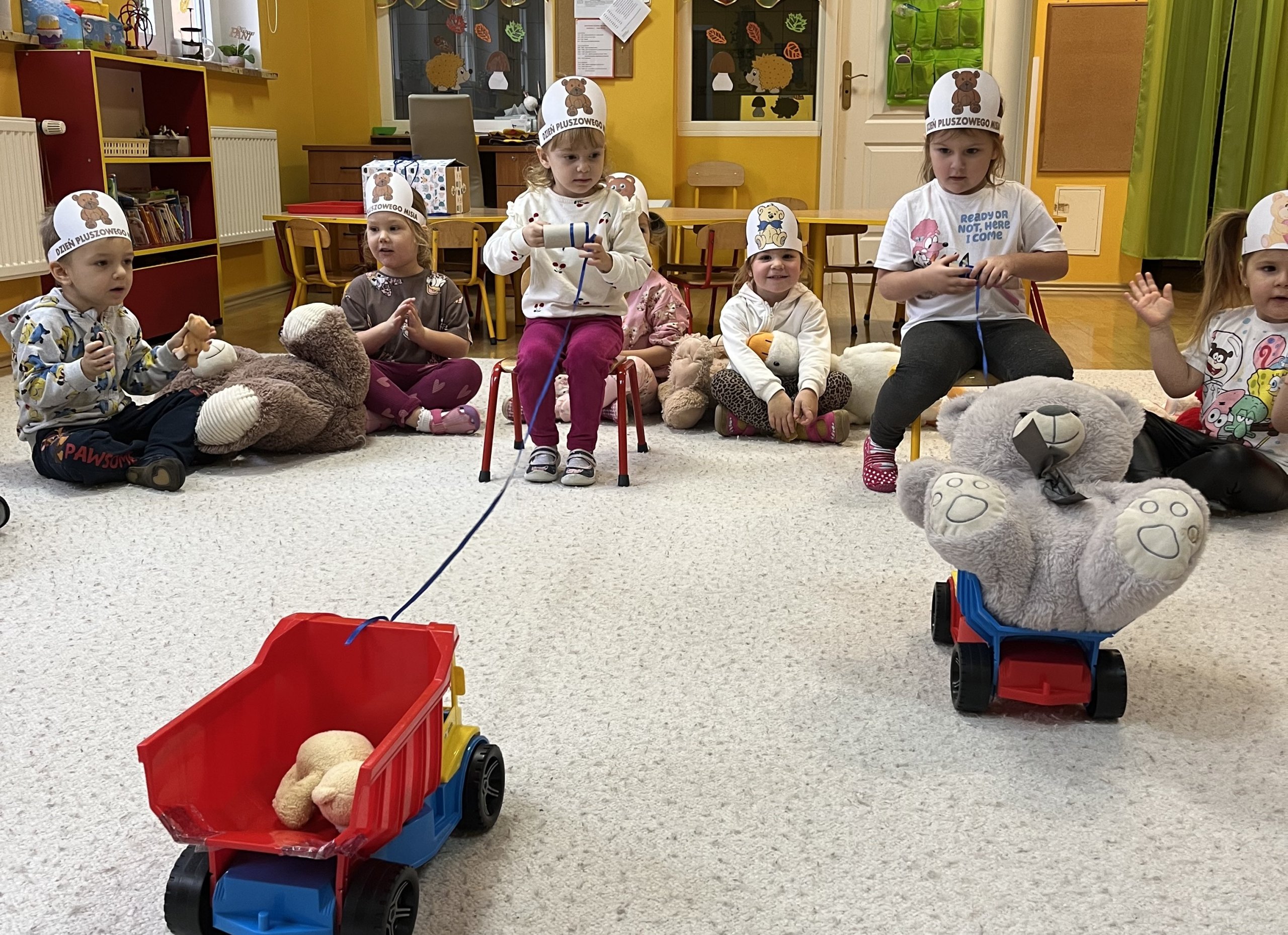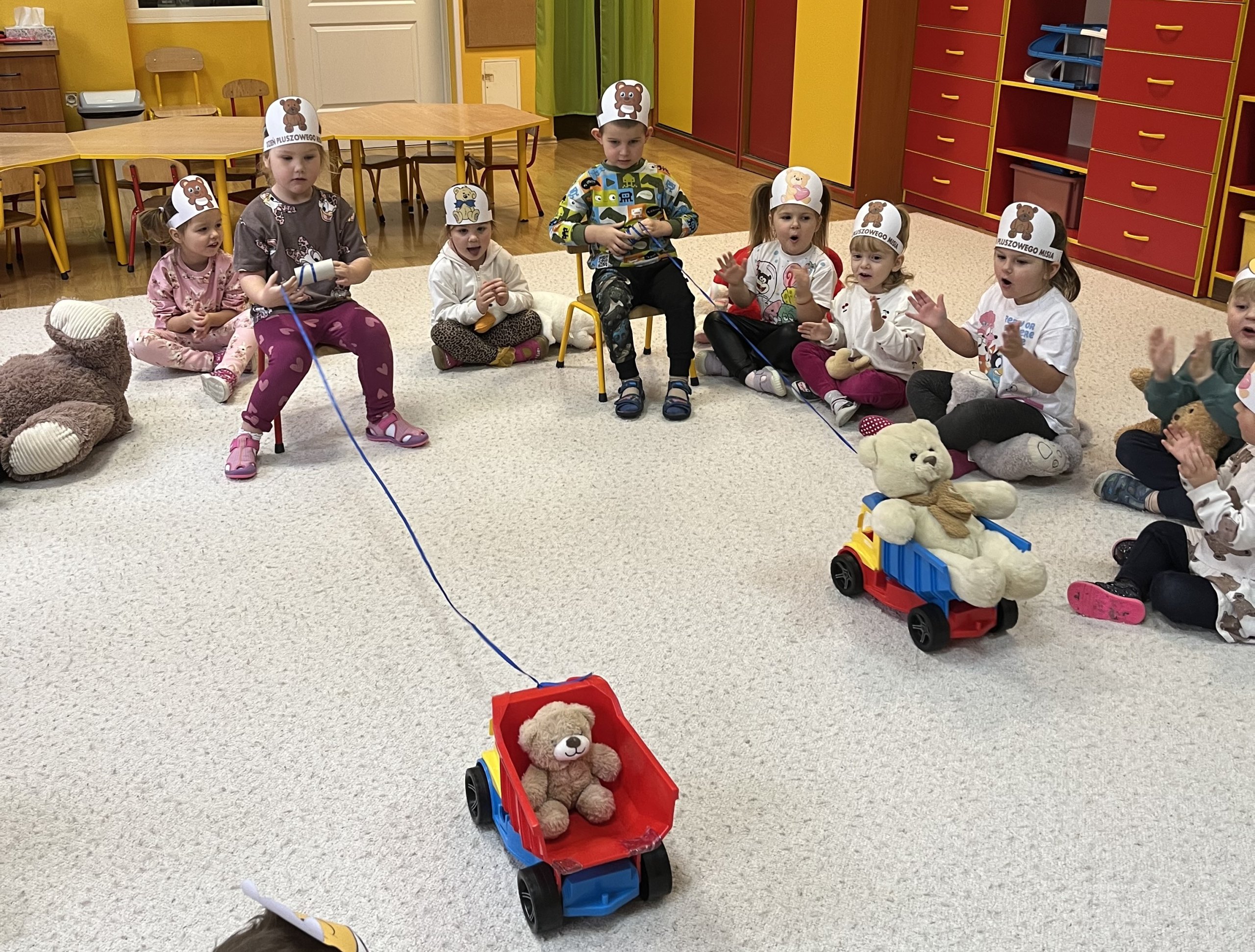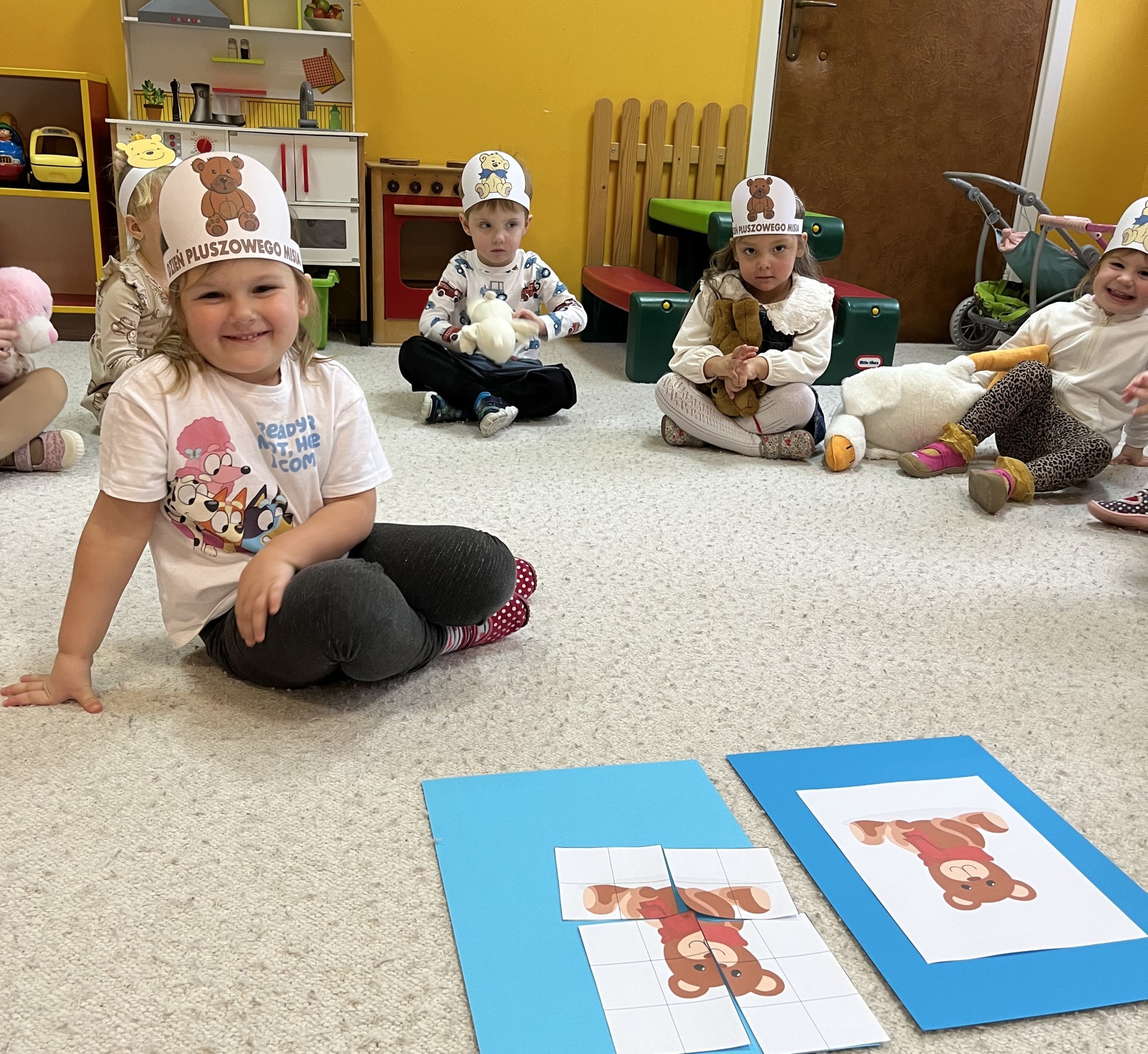 25 listopada 2025 r. Dziś w grupie „Stokrotek” obchodziliśmy radosne i długo wyczekiwane Święto Pluszowego Misia. Dzieci przyszły do przedszkola w wyjątkowych humorach, trzymając w ramionach swoje ukochane misie – duże, małe, kolorowe, klasyczne i te zupełnie niezwykłe. Każdy przedszkolak z dumą prezentował swojego pluszowego przyjaciela, opowiadając, jak ma na imię i dlaczego jest dla niego ważny. Dzieci chętnie uczestniczyły w zabawach muzyczno-ruchowych „Niedźwiadek”, „Misie dwa”. Podczas zajęć plastycznych pokolorowały uroczego misia pod kolorową kołderką rozwijając kreatywność i sprawność manualną. Nie zabrakło także misiowych zabaw, wspólnego odśpiewania „Sto lat” oraz pamiątkowych zdjęć z pluszakami. Dzień upłynął w wyjątkowo ciepłej, przyjaznej atmosferze. Święto Pluszowego Misia stało się świetną okazją do integracji grupy, rozwijania umiejętności społecznych oraz wzmocnienia poczucia bezpieczeństwa poprzez bliskość ulubionej zabawki.