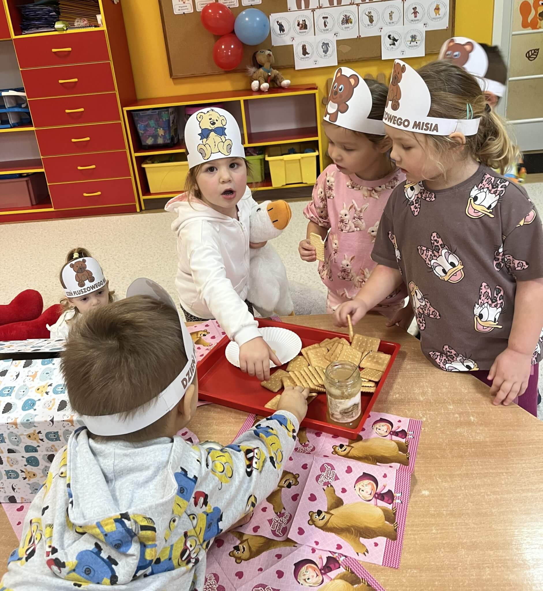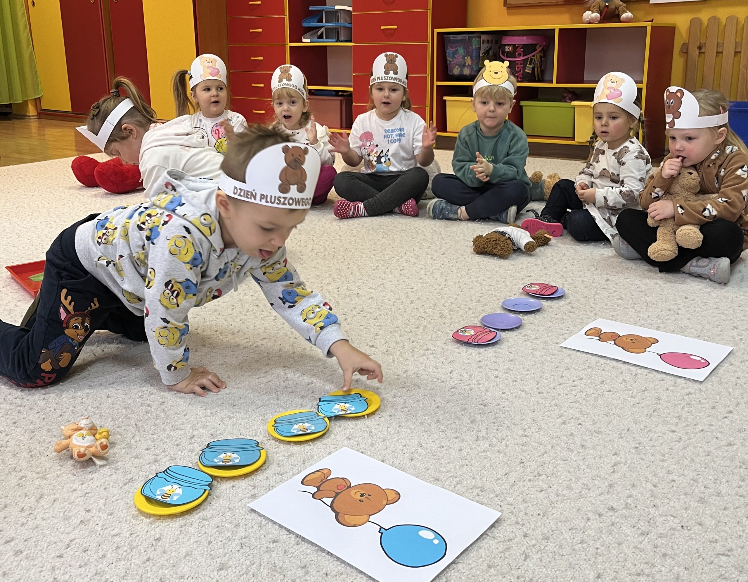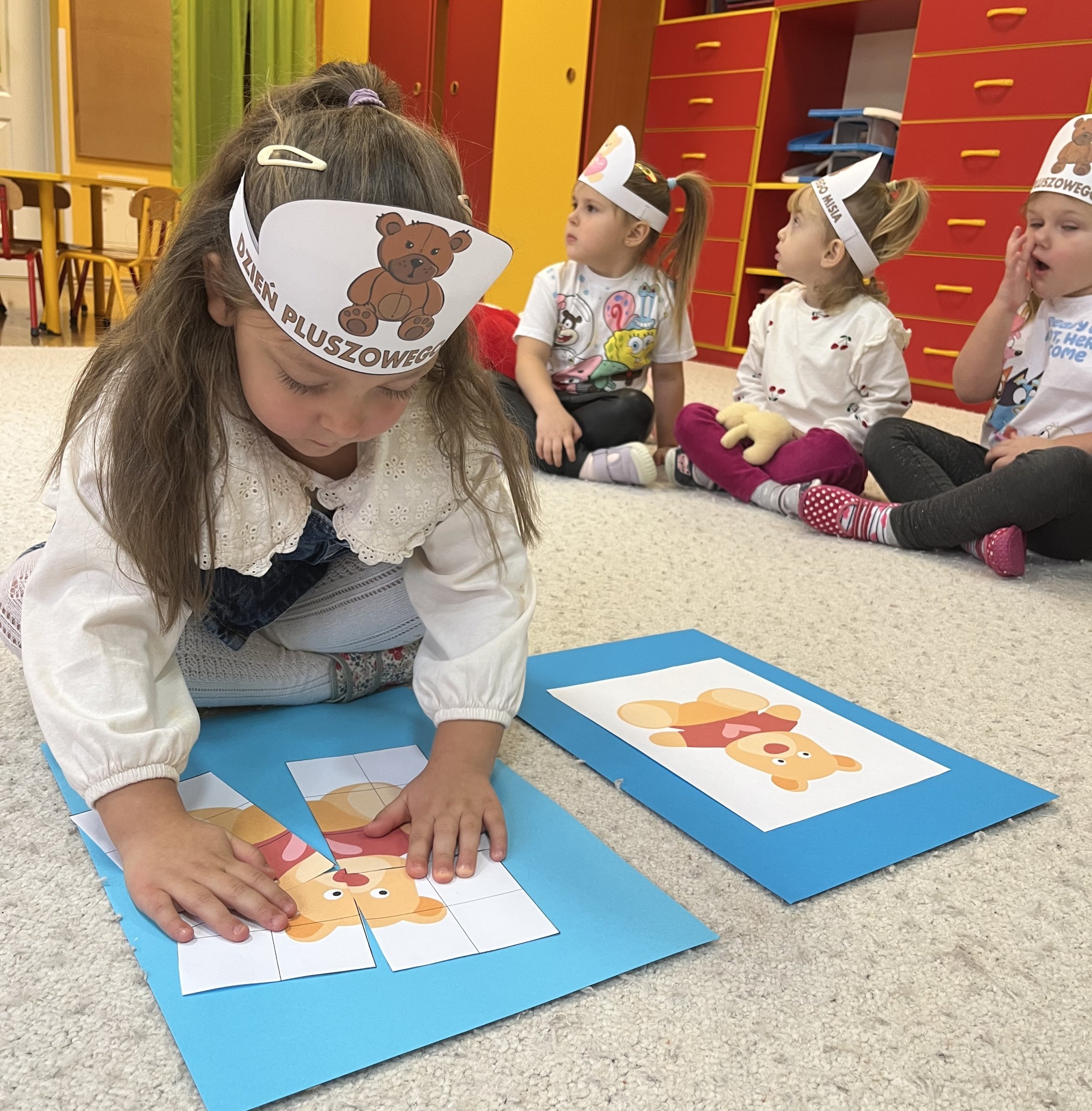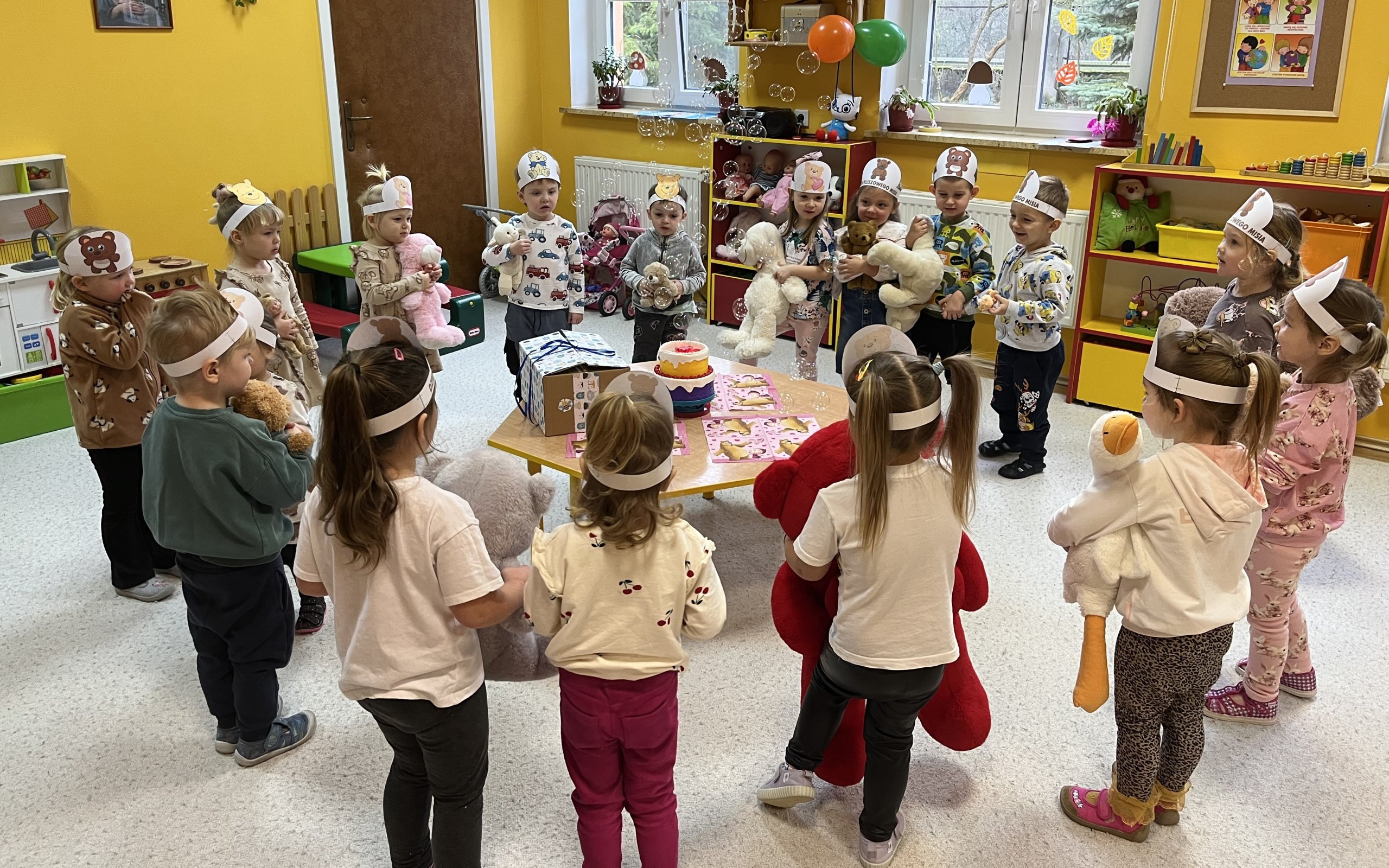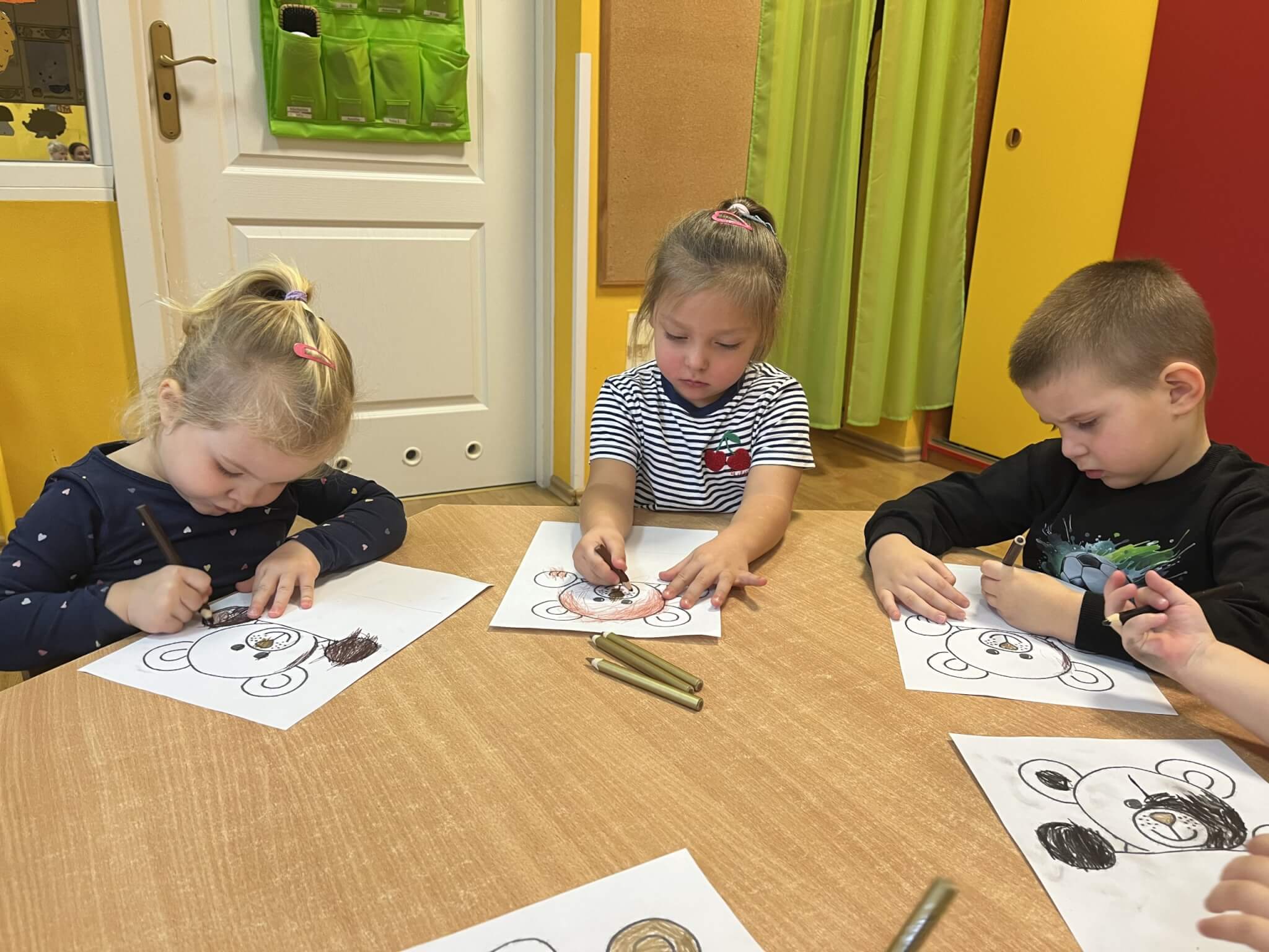 25 listopada 2025 r. Dziś w grupie „Stokrotek” obchodziliśmy radosne i długo wyczekiwane Święto Pluszowego Misia. Dzieci przyszły do przedszkola w wyjątkowych humorach, trzymając w ramionach swoje ukochane misie – duże, małe, kolorowe, klasyczne i te zupełnie niezwykłe. Każdy przedszkolak z dumą prezentował swojego pluszowego przyjaciela, opowiadając, jak ma na imię i dlaczego jest dla niego ważny. Dzieci chętnie uczestniczyły w zabawach muzyczno-ruchowych „Niedźwiadek”, „Misie dwa”. Podczas zajęć plastycznych pokolorowały uroczego misia pod kolorową kołderką rozwijając kreatywność i sprawność manualną. Nie zabrakło także misiowych zabaw, wspólnego odśpiewania „Sto lat” oraz pamiątkowych zdjęć z pluszakami. Dzień upłynął w wyjątkowo ciepłej, przyjaznej atmosferze. Święto Pluszowego Misia stało się świetną okazją do integracji grupy, rozwijania umiejętności społecznych oraz wzmocnienia poczucia bezpieczeństwa poprzez bliskość ulubionej zabawki.