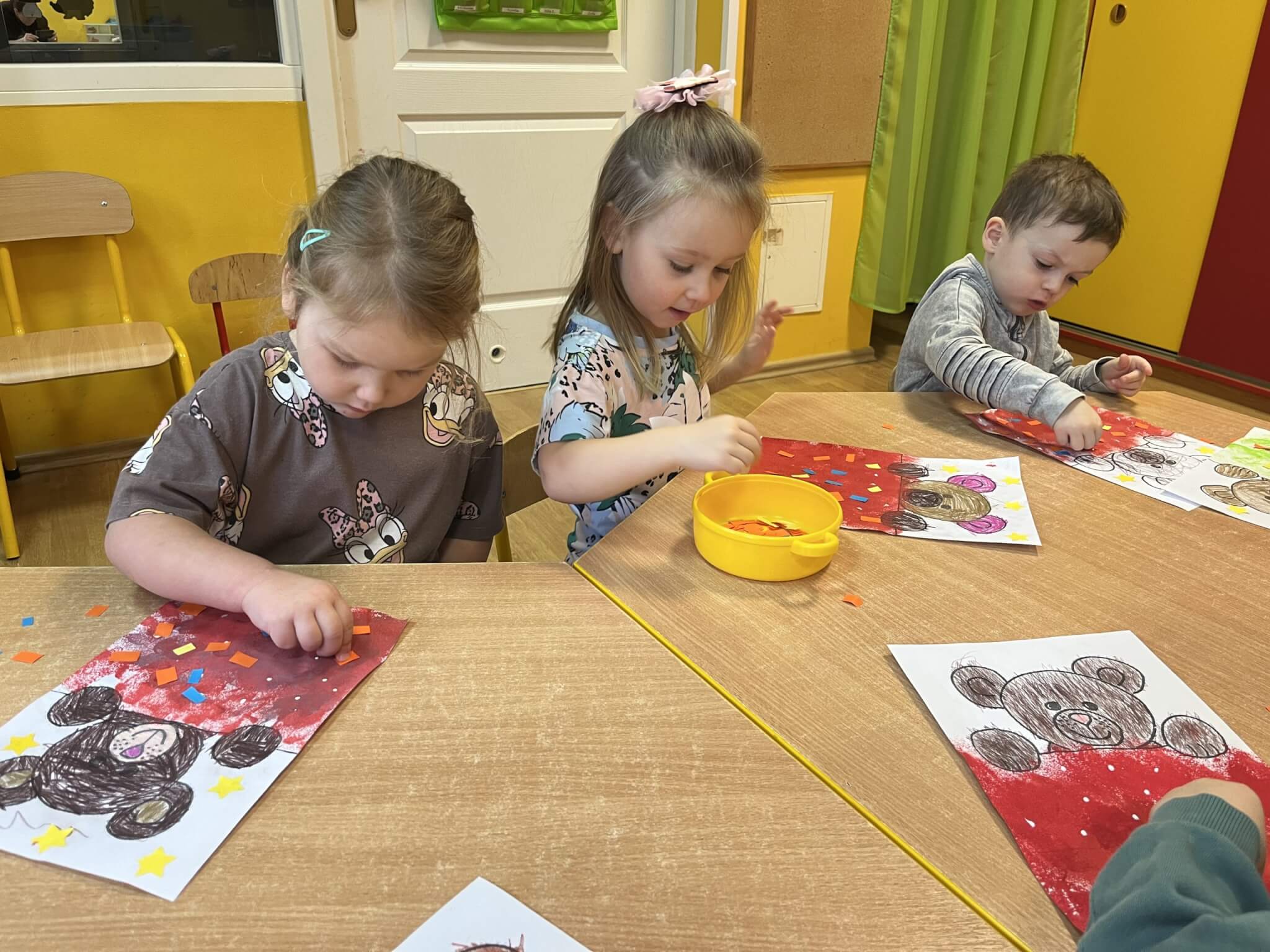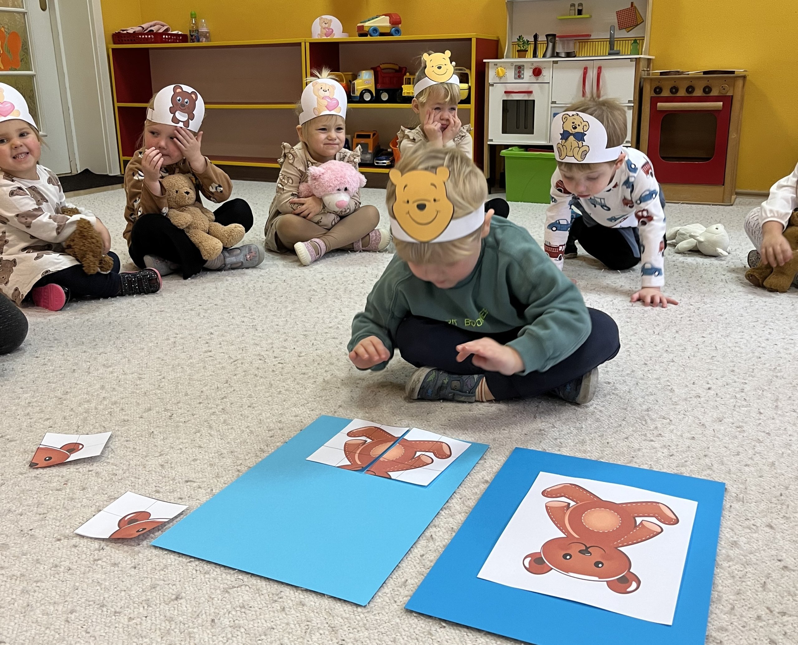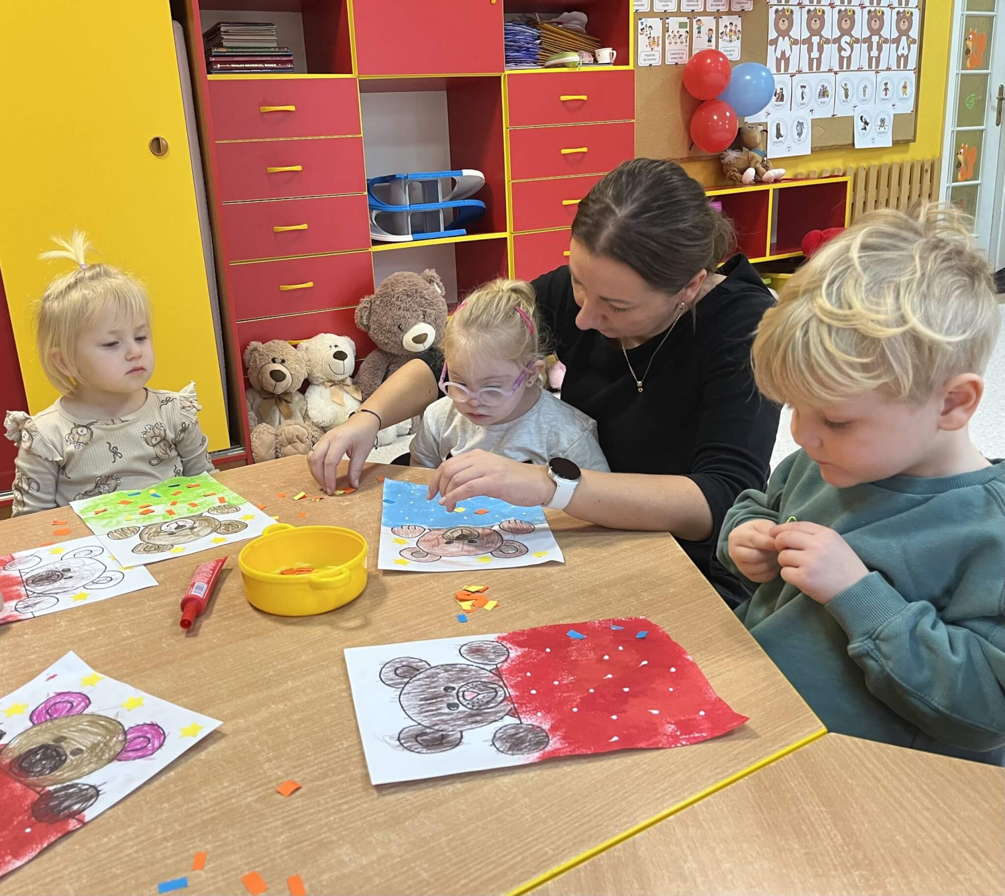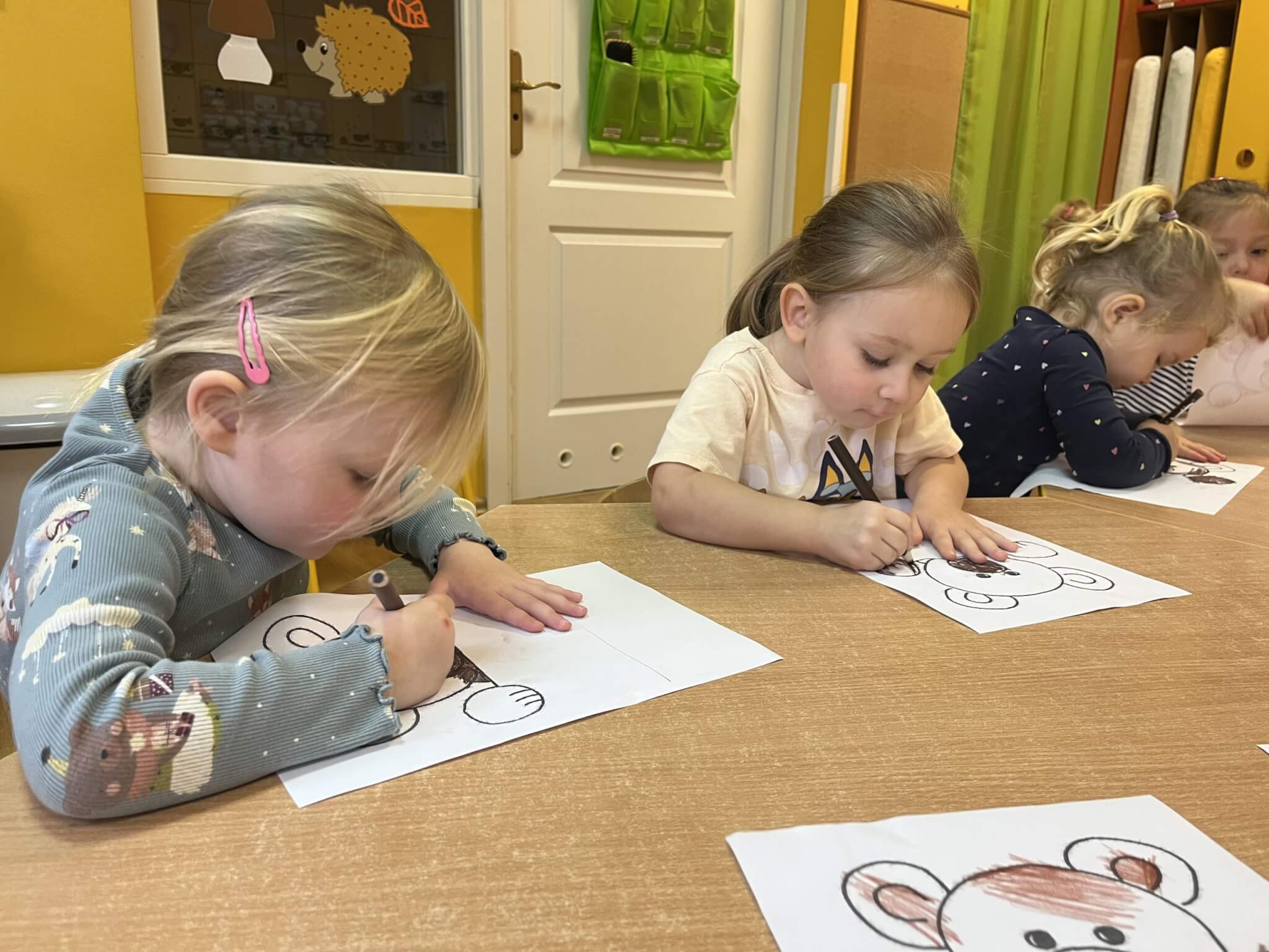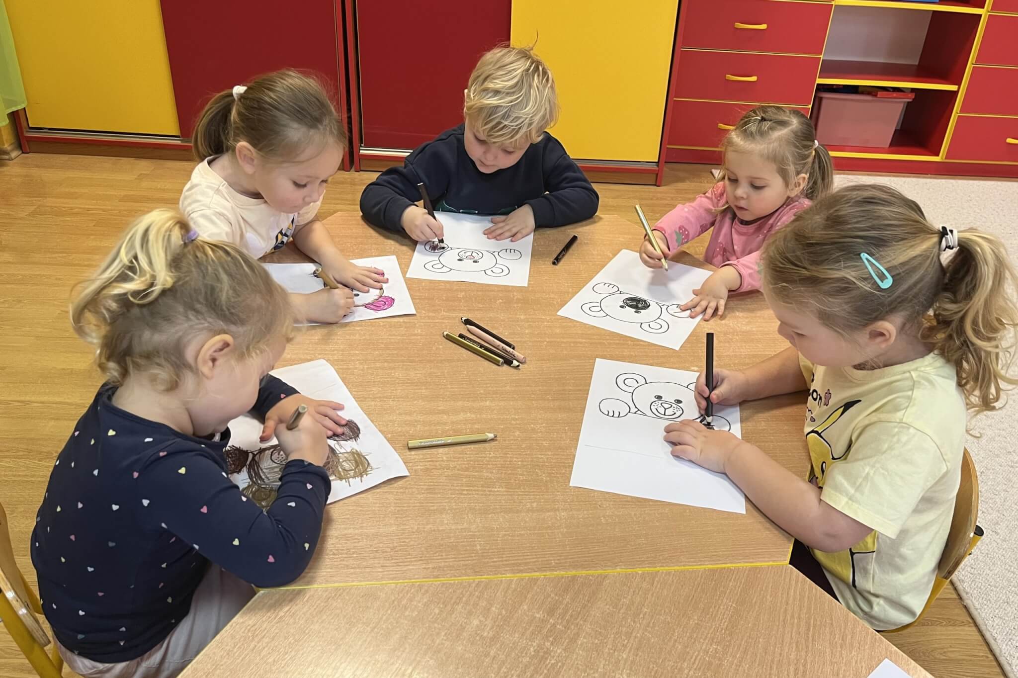 25 listopada 2025 r. Dziś w grupie „Stokrotek” obchodziliśmy radosne i długo wyczekiwane Święto Pluszowego Misia. Dzieci przyszły do przedszkola w wyjątkowych humorach, trzymając w ramionach swoje ukochane misie – duże, małe, kolorowe, klasyczne i te zupełnie niezwykłe. Każdy przedszkolak z dumą prezentował swojego pluszowego przyjaciela, opowiadając, jak ma na imię i dlaczego jest dla niego ważny. Dzieci chętnie uczestniczyły w zabawach muzyczno-ruchowych „Niedźwiadek”, „Misie dwa”. Podczas zajęć plastycznych pokolorowały uroczego misia pod kolorową kołderką rozwijając kreatywność i sprawność manualną. Nie zabrakło także misiowych zabaw, wspólnego odśpiewania „Sto lat” oraz pamiątkowych zdjęć z pluszakami. Dzień upłynął w wyjątkowo ciepłej, przyjaznej atmosferze. Święto Pluszowego Misia stało się świetną okazją do integracji grupy, rozwijania umiejętności społecznych oraz wzmocnienia poczucia bezpieczeństwa poprzez bliskość ulubionej zabawki.