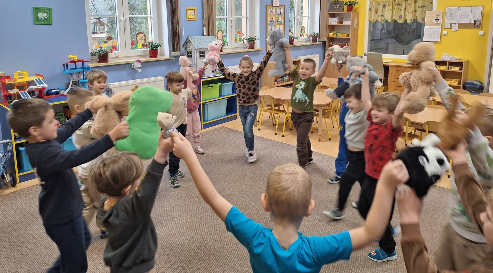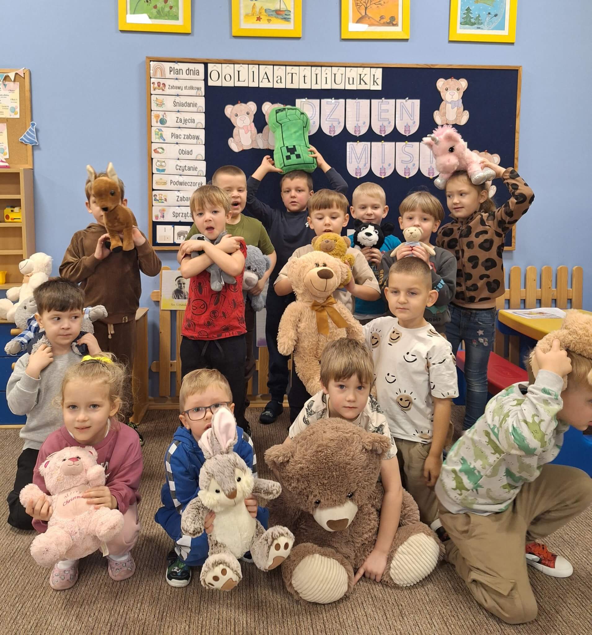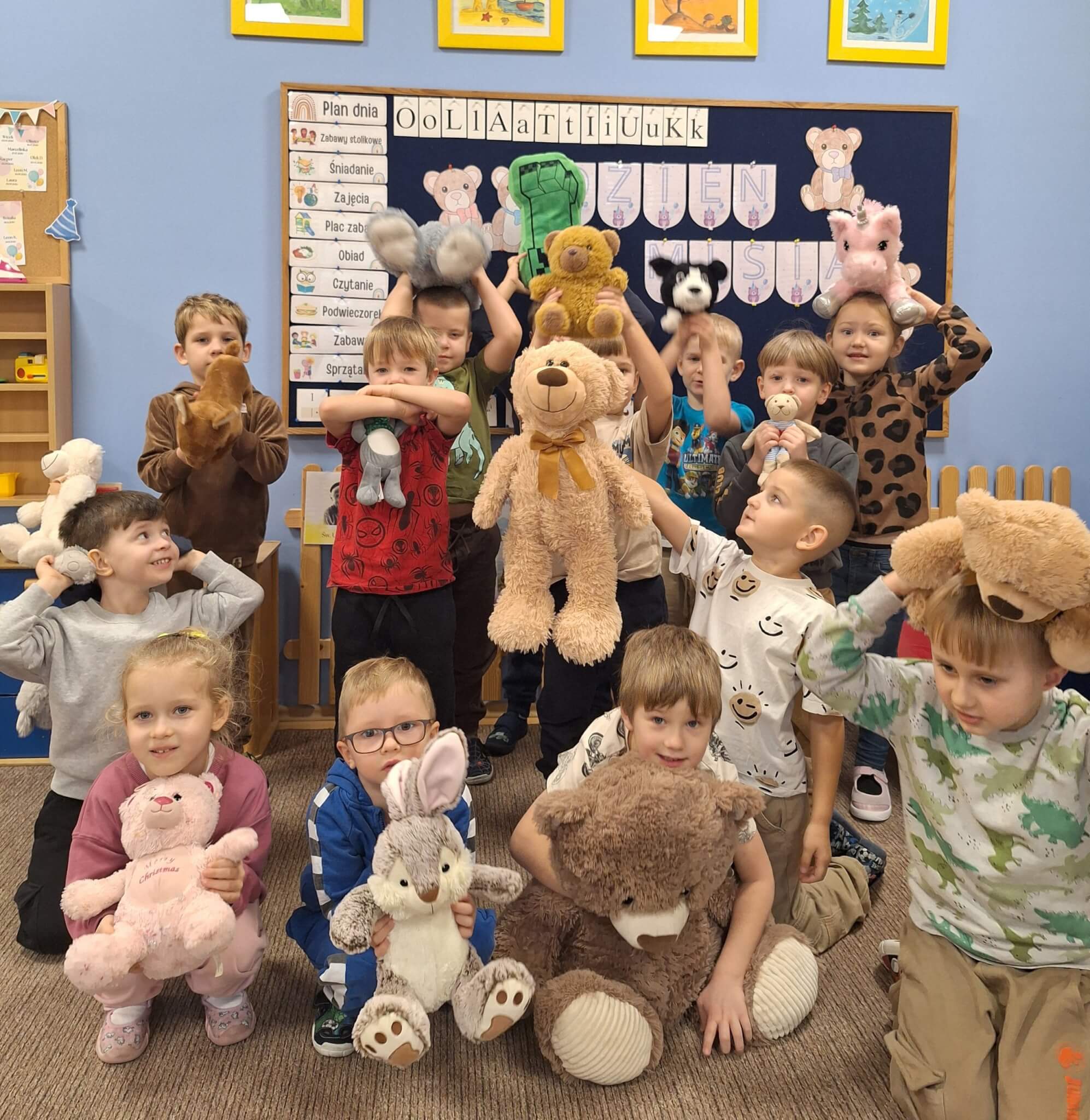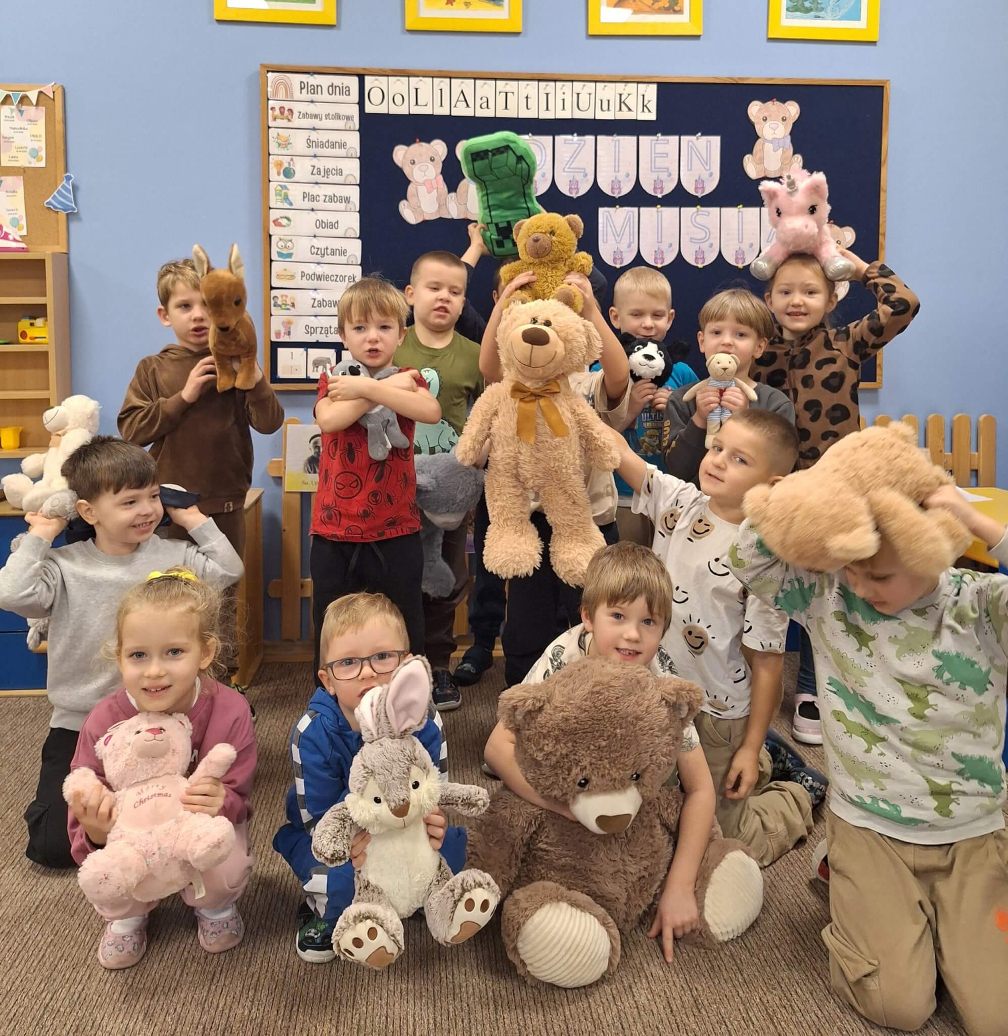 25 listopada 2025 r. „Jest brązowy i mięciutki, małe uszka, pyszczek krótki. Gdy mi smutno jest i źle – on zawsze pocieszy mnie. Mam pluszowego misia, jest przy mnie nie od dzisiaj. On sekrety moje zna, zawsze dla mnie uśmiech ma.” Dzisiaj w „Makach” świętowaliśmy Dzień Pluszowego Misia. Dzieci z dumą prezentowały swoje ukochane pluszaki, a podczas wspólnych tańców, zabaw i zagadek miały okazję twórczo się wyrażać i rozwijać swoją kreatywność. Bo to również ważny moment, aby porozmawiać o przyjaźni – o tym, jak ją budować, okazywać i troszczyć się o nią.