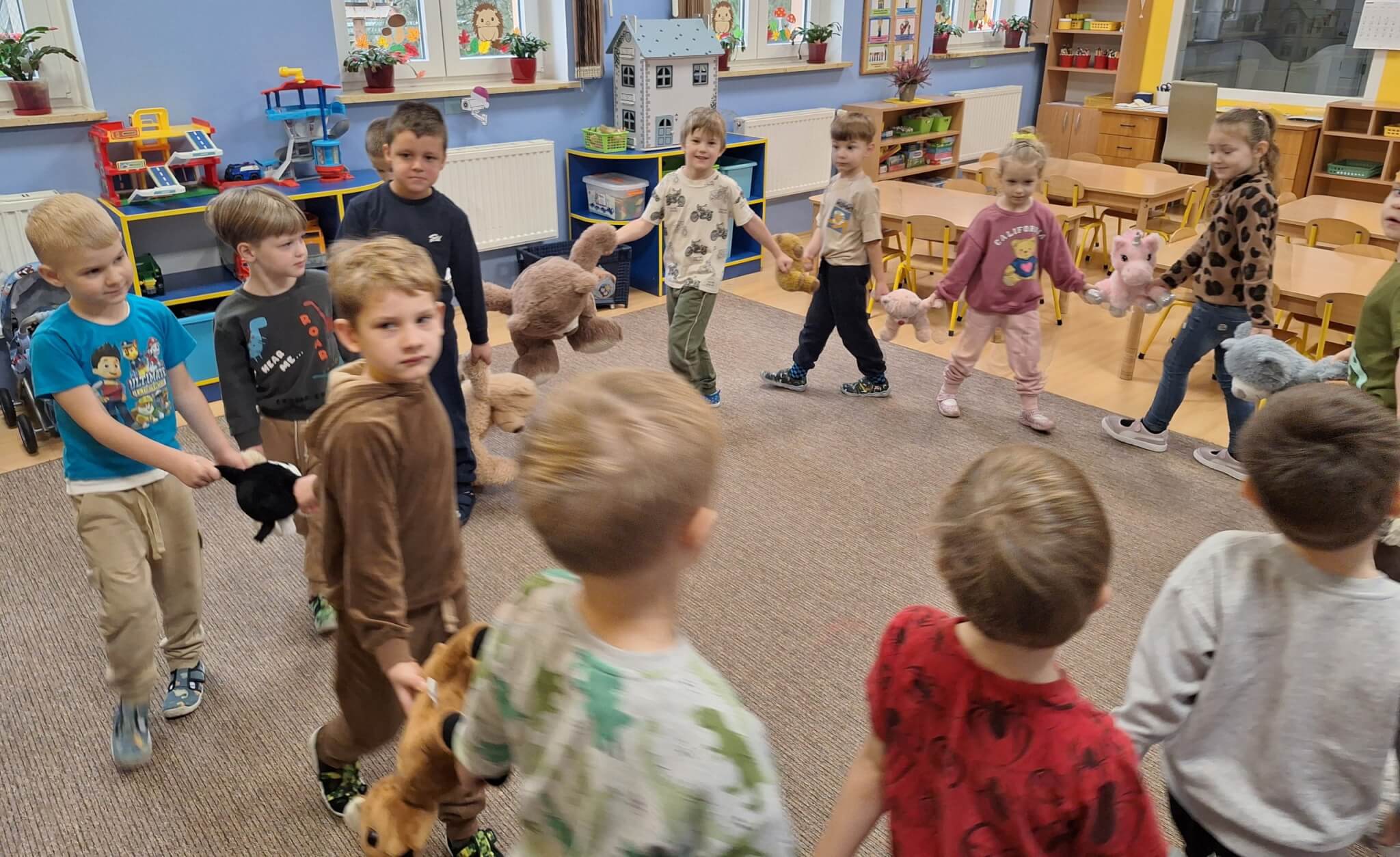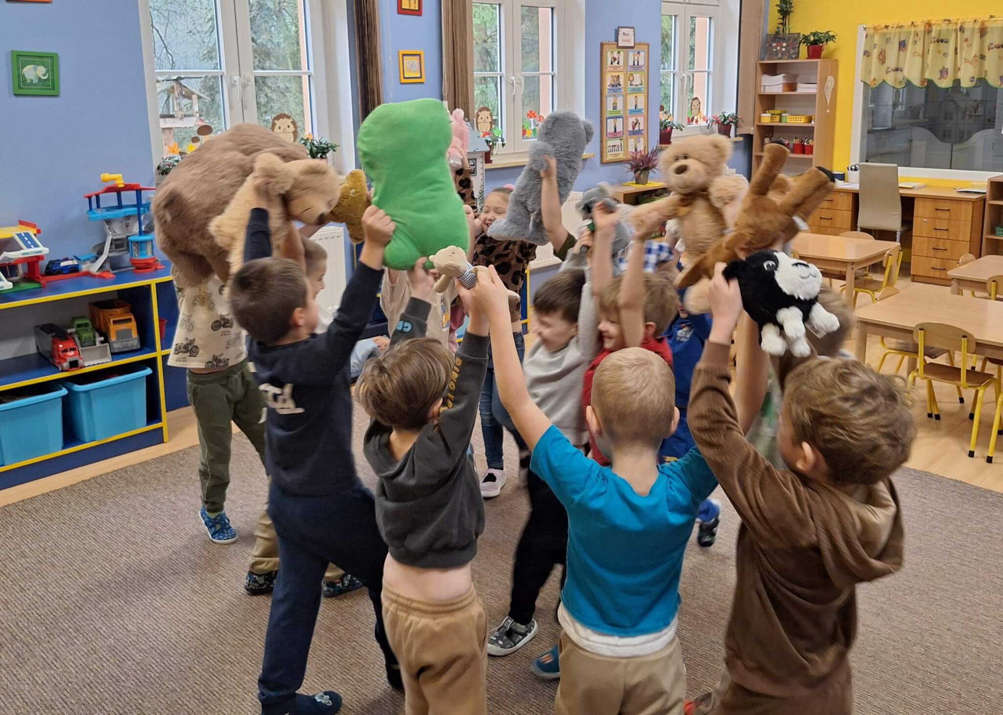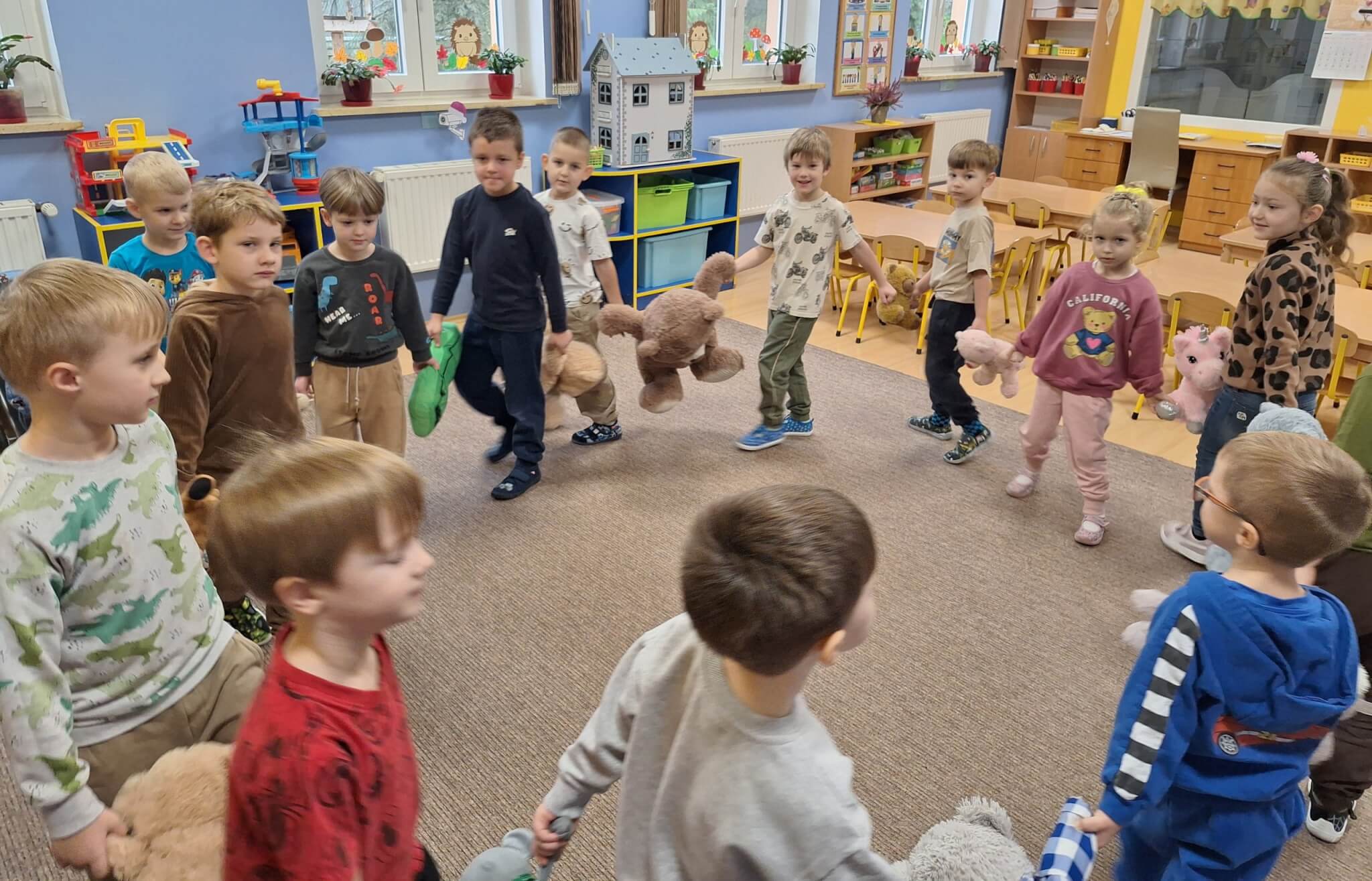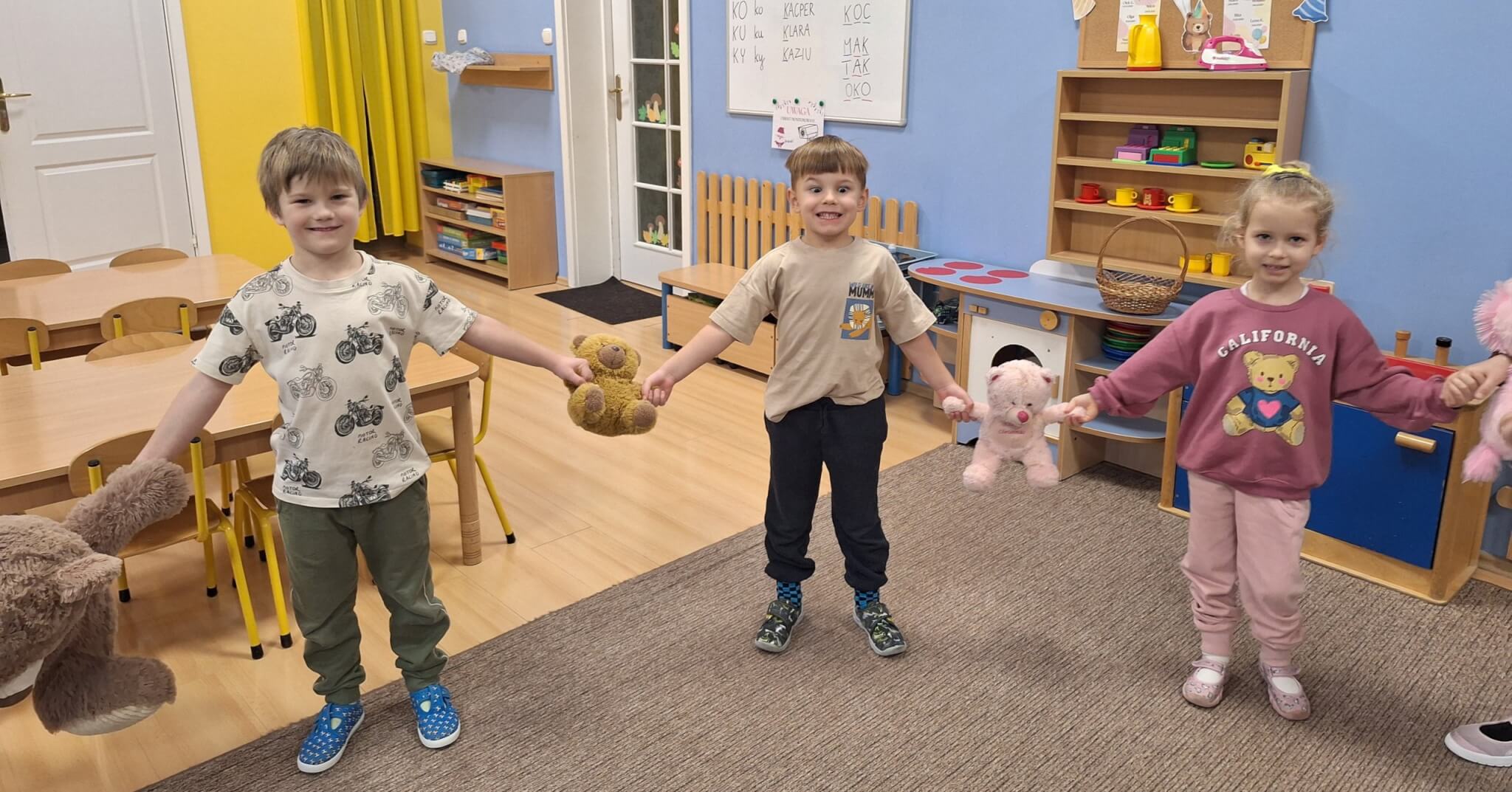 25 listopada 2025 r. „Jest brązowy i mięciutki, małe uszka, pyszczek krótki. Gdy mi smutno jest i źle – on zawsze pocieszy mnie. Mam pluszowego misia, jest przy mnie nie od dzisiaj. On sekrety moje zna, zawsze dla mnie uśmiech ma.” Dzisiaj w „Makach” świętowaliśmy Dzień Pluszowego Misia. Dzieci z dumą prezentowały swoje ukochane pluszaki, a podczas wspólnych tańców, zabaw i zagadek miały okazję twórczo się wyrażać i rozwijać swoją kreatywność. Bo to również ważny moment, aby porozmawiać o przyjaźni – o tym, jak ją budować, okazywać i troszczyć się o nią.