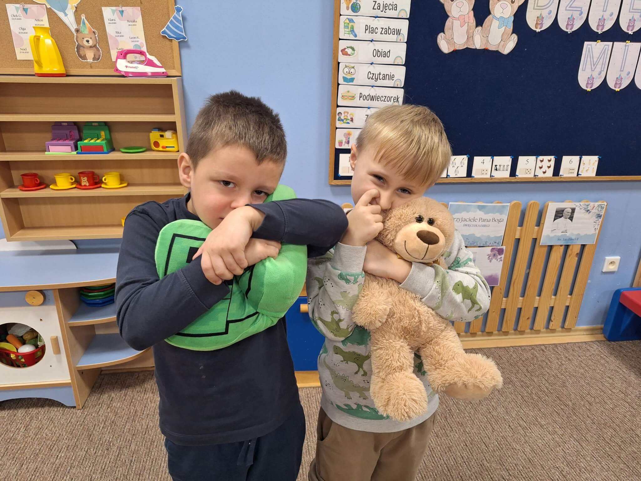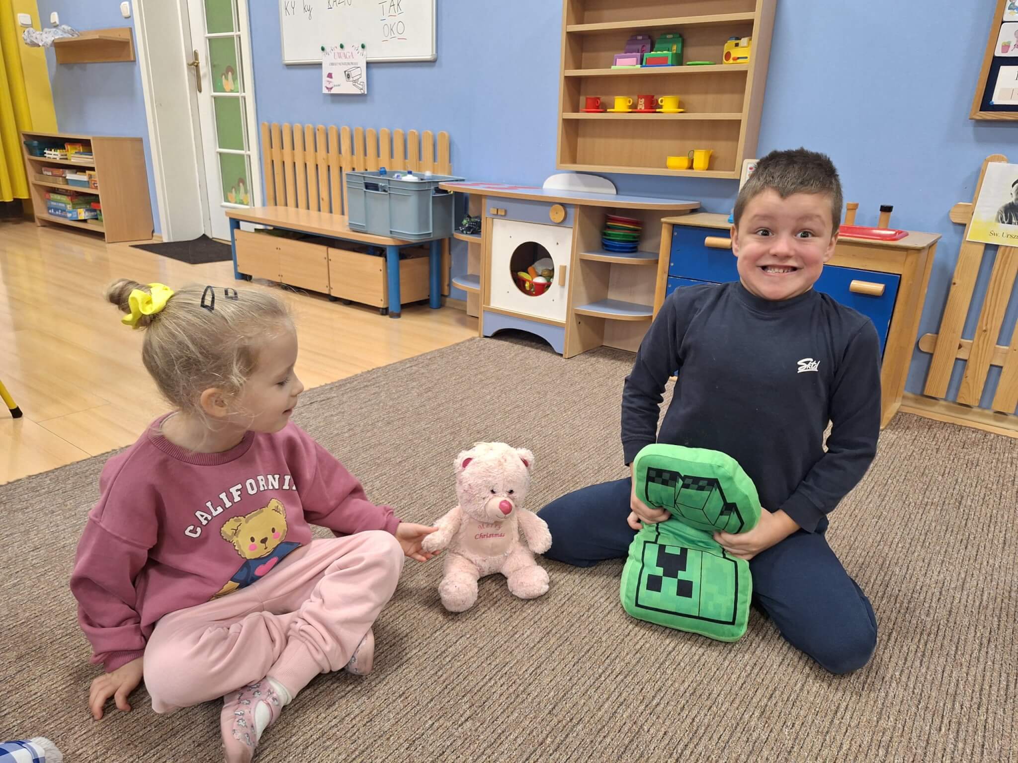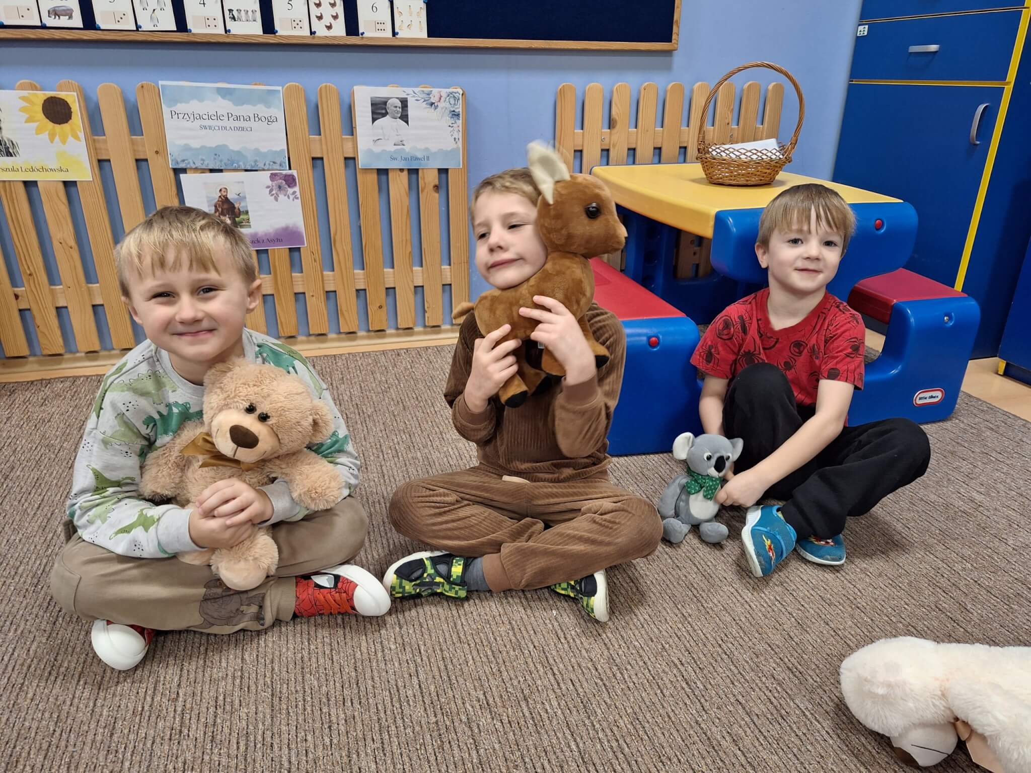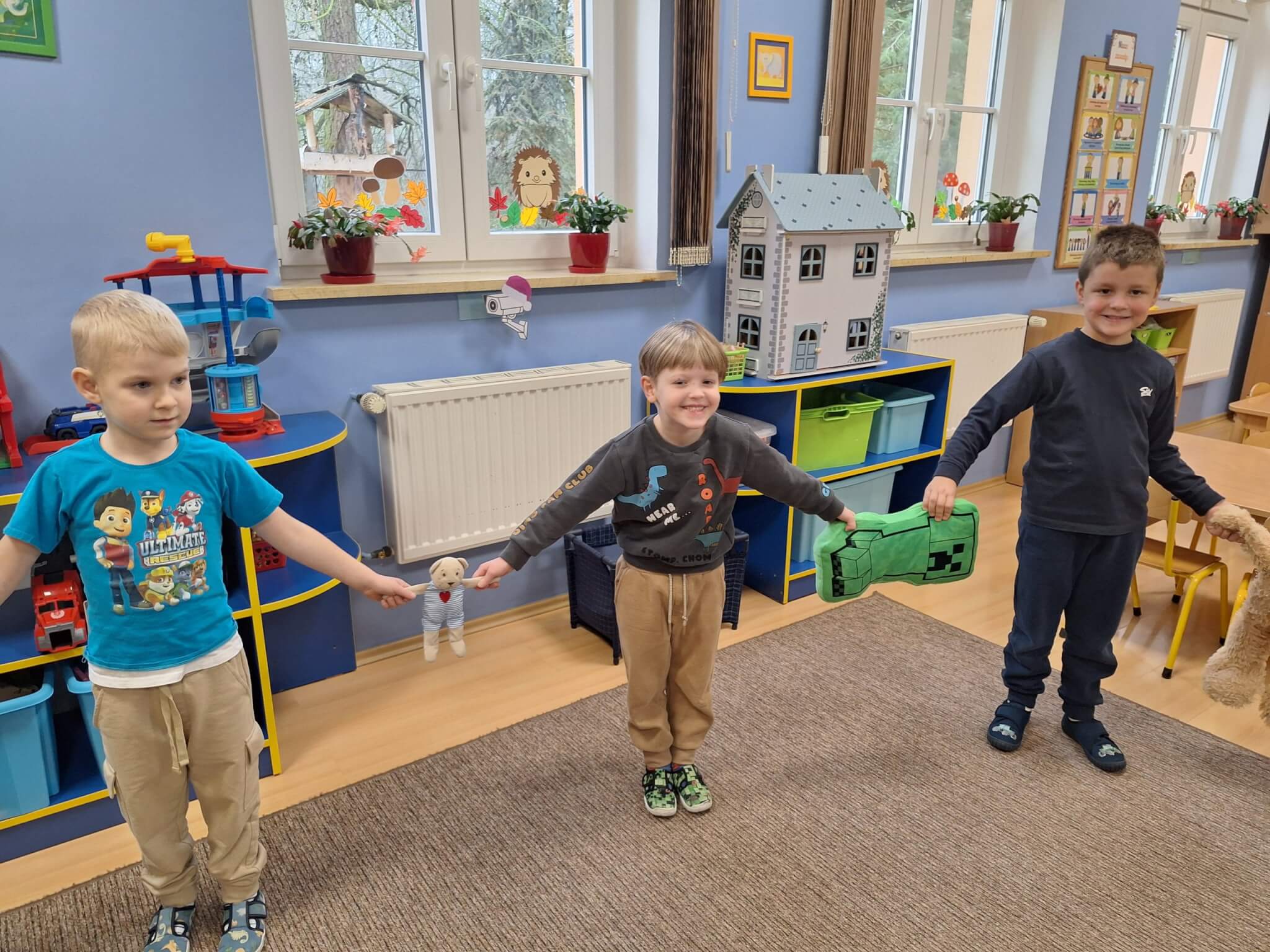25 listopada 2025 r. „Jest brązowy i mięciutki, małe uszka, pyszczek krótki. Gdy mi smutno jest i źle – on zawsze pocieszy mnie. Mam pluszowego misia, jest przy mnie nie od dzisiaj. On sekrety moje zna, zawsze dla mnie uśmiech ma.” Dzisiaj w „Makach” świętowaliśmy Dzień Pluszowego Misia. Dzieci z dumą prezentowały swoje ukochane pluszaki, a podczas wspólnych tańców, zabaw i zagadek miały okazję twórczo się wyrażać i rozwijać swoją kreatywność. Bo to również ważny moment, aby porozmawiać o przyjaźni – o tym, jak ją budować, okazywać i troszczyć się o nią.
