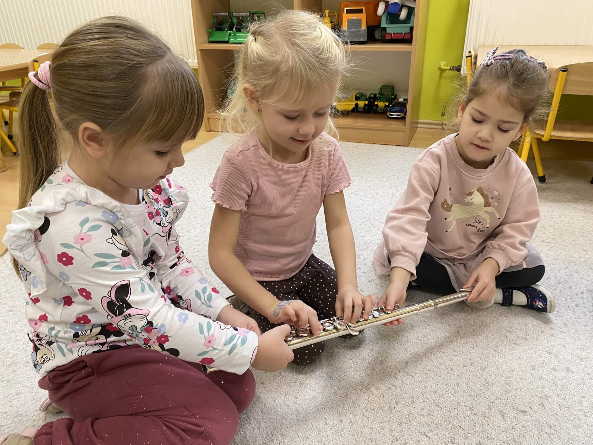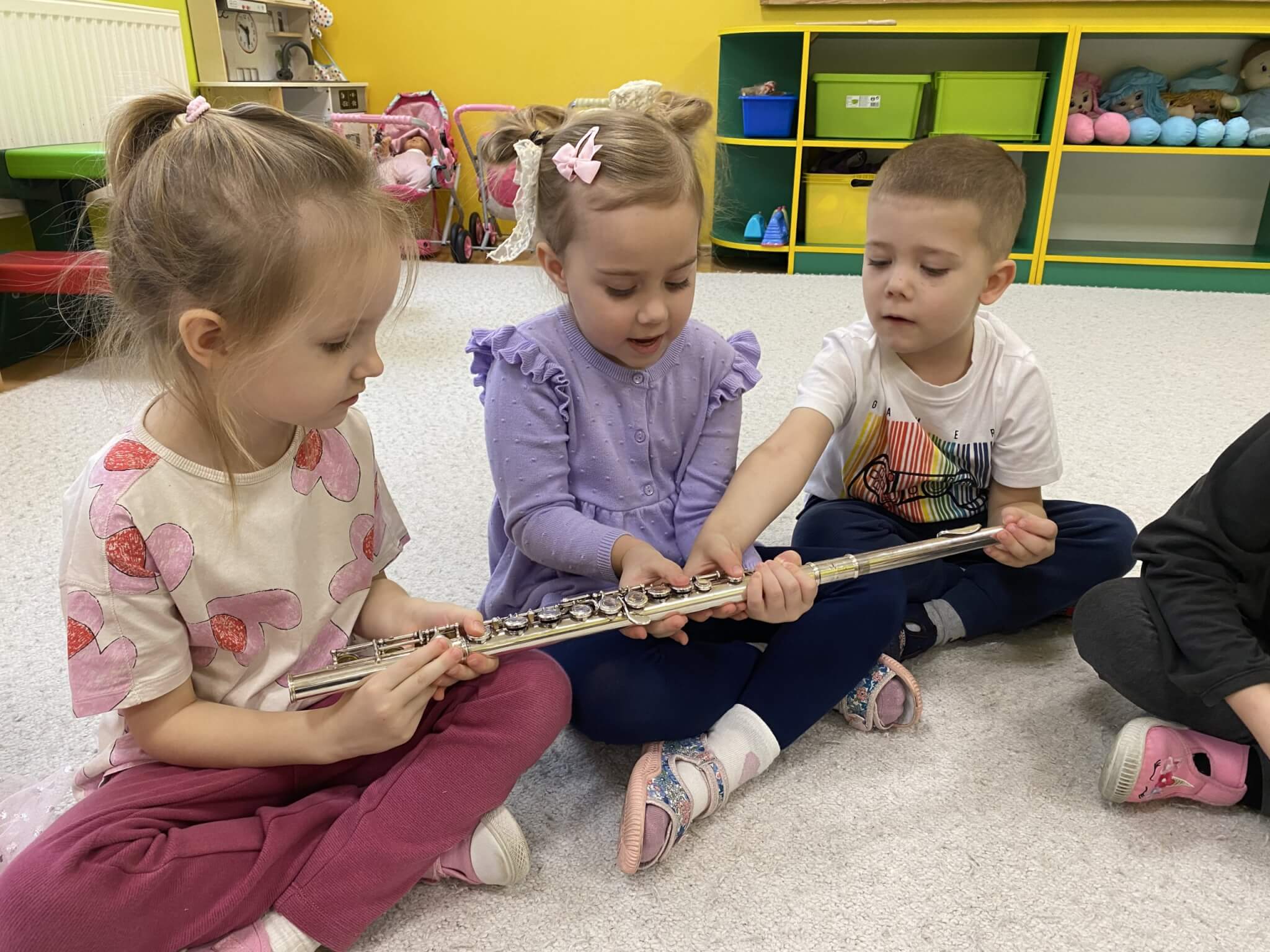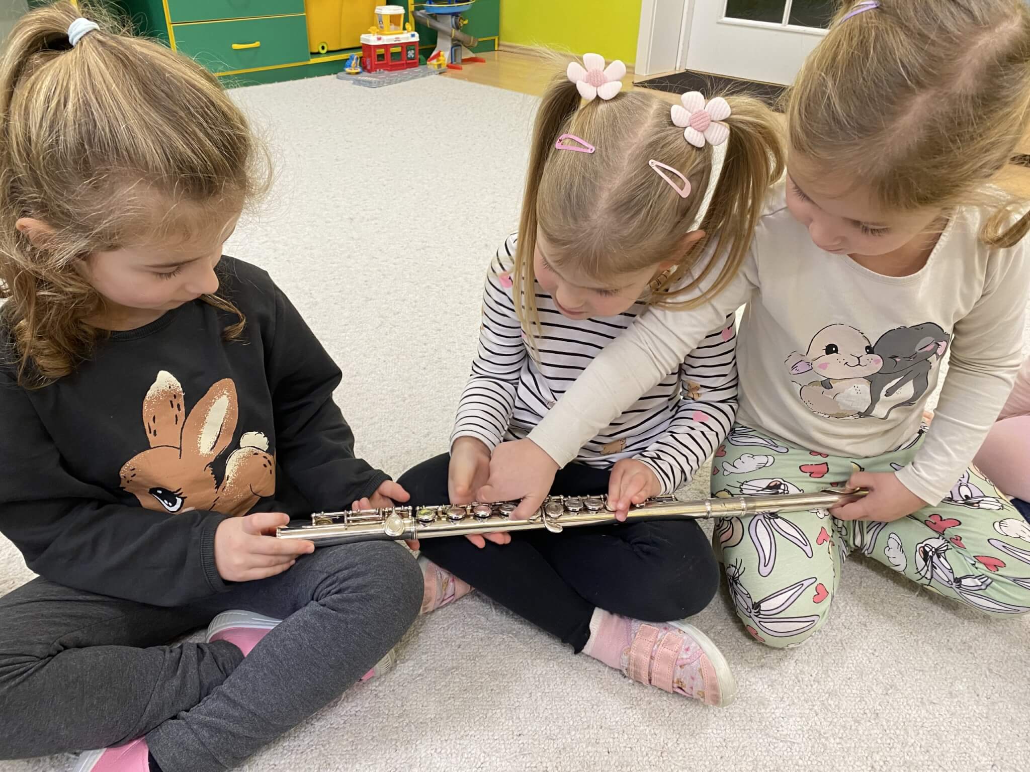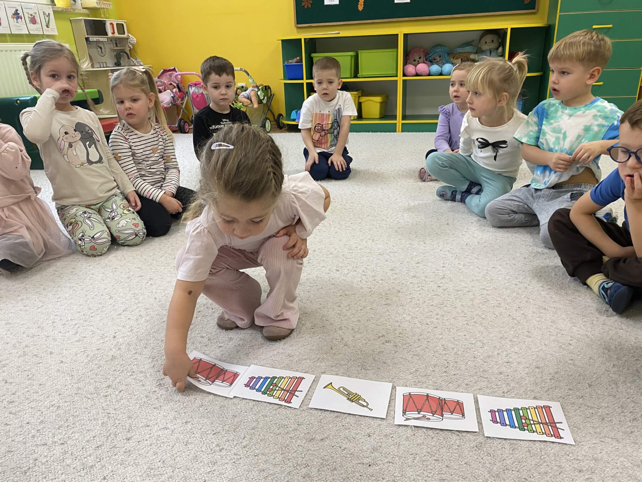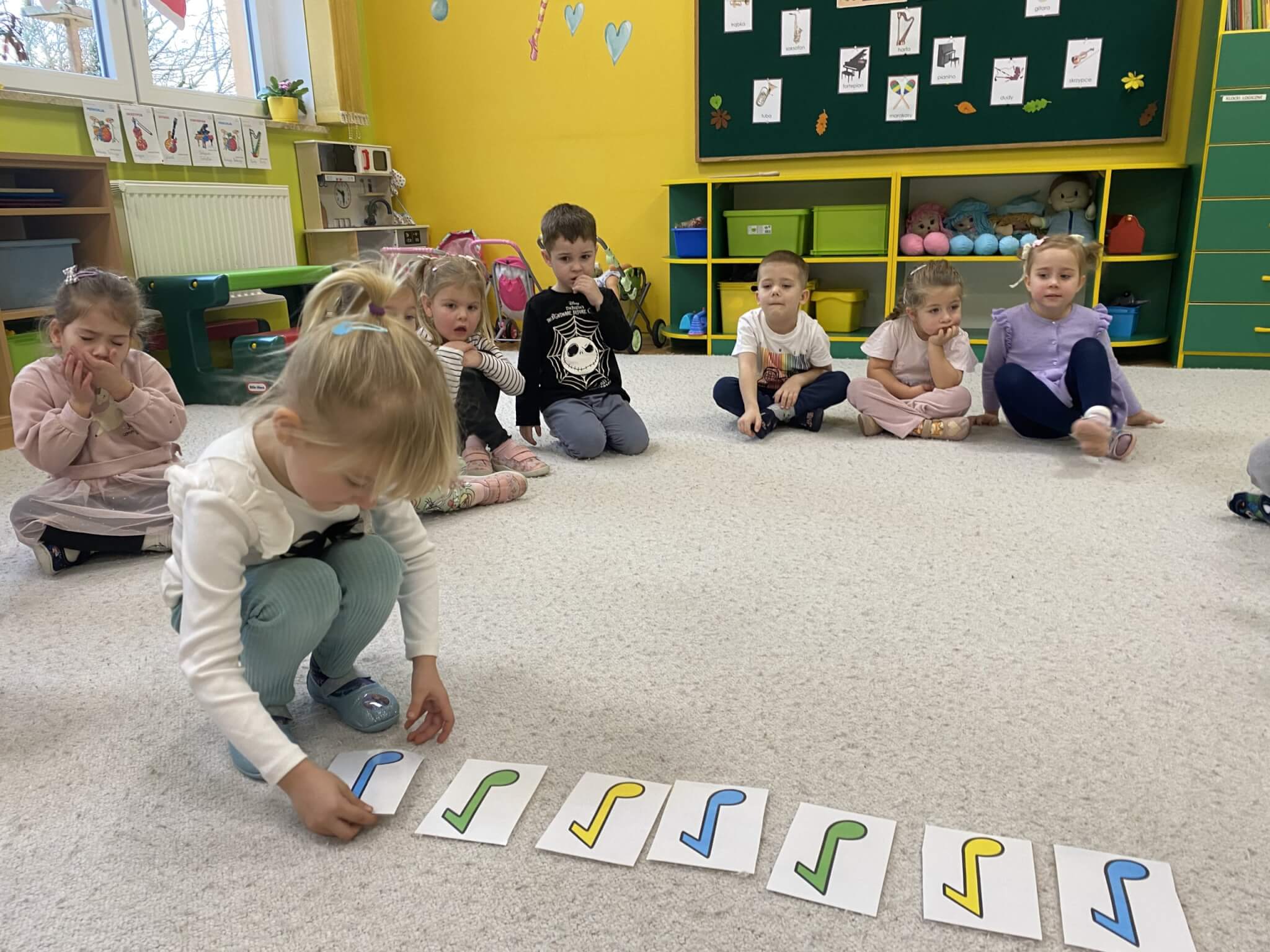 28 listopada 2025 r. W tym tygodniu dzieci z grupy II przeniosły się do świata muzyki.🎵 Poznały nazwy poszczególnych instrumentów oraz pojęcia takie jak: muzyk, dyrygent, orkiestra i rytm. Przedszkolaki miały okazję zagrać na różnych instrumentach: gitarze, bębnie zwanym djembe, marakasach, drewienkach i trójkącie, a także wykonać ćwiczenia rytmiczne z wykorzystaniem „bum bum rurek”. „Bratki” wysłuchały piosenek granych przez Panią Wiktorię na flecie poprzecznym oraz odgadywały tytuły zagranych utworów. W ramach pracy plastycznej każde dziecko wykonało swój instrument – ukulele.🎺🥁🎻