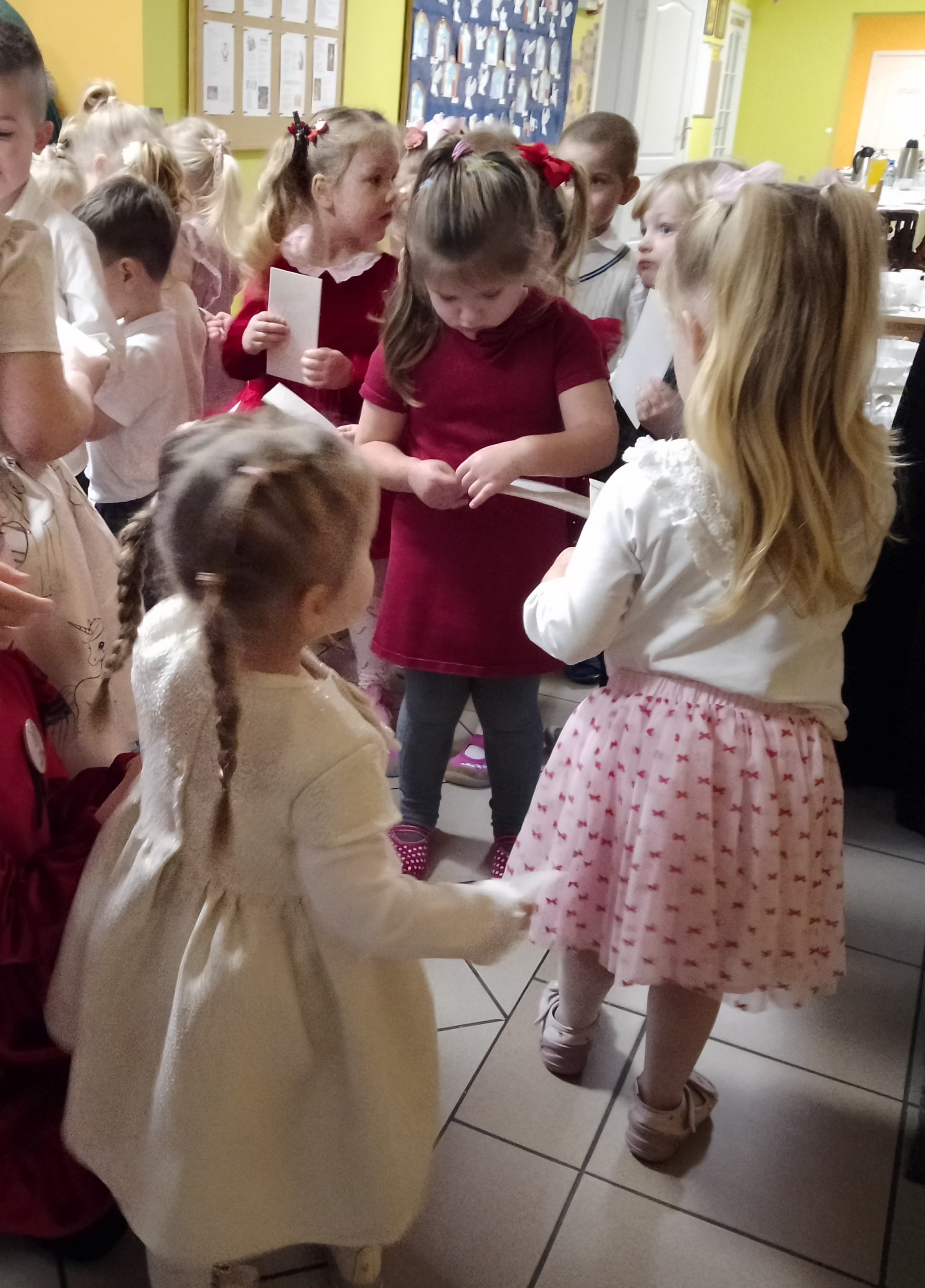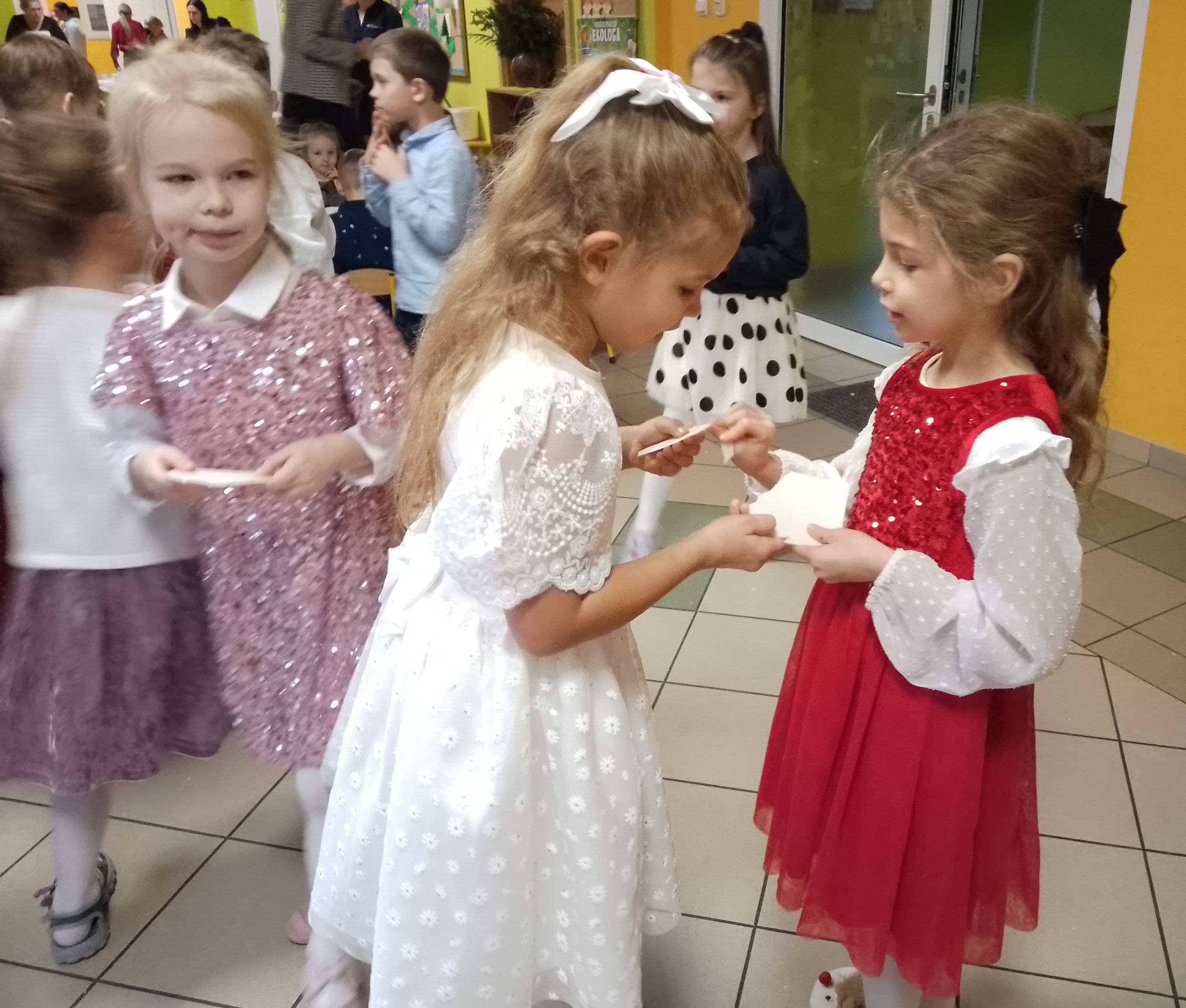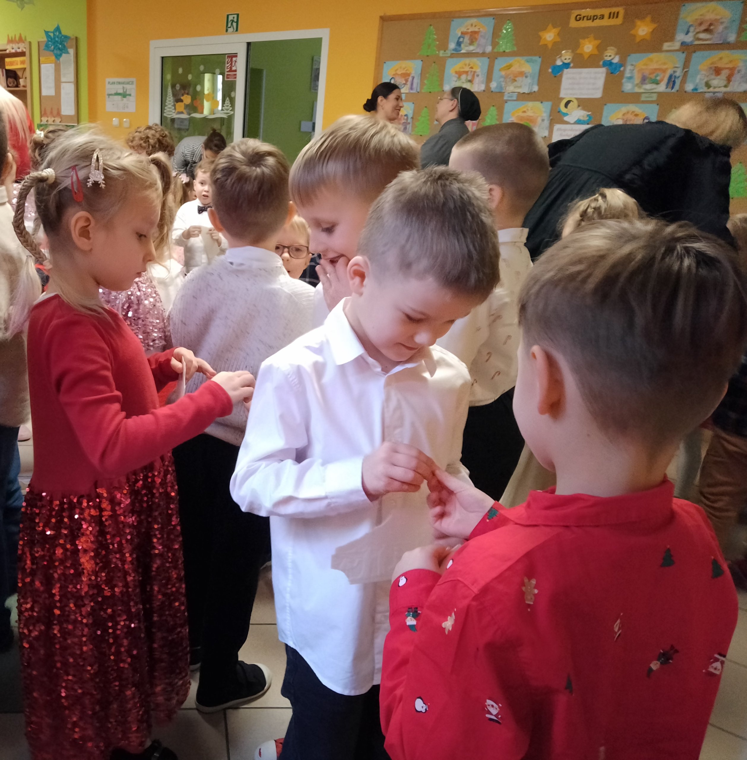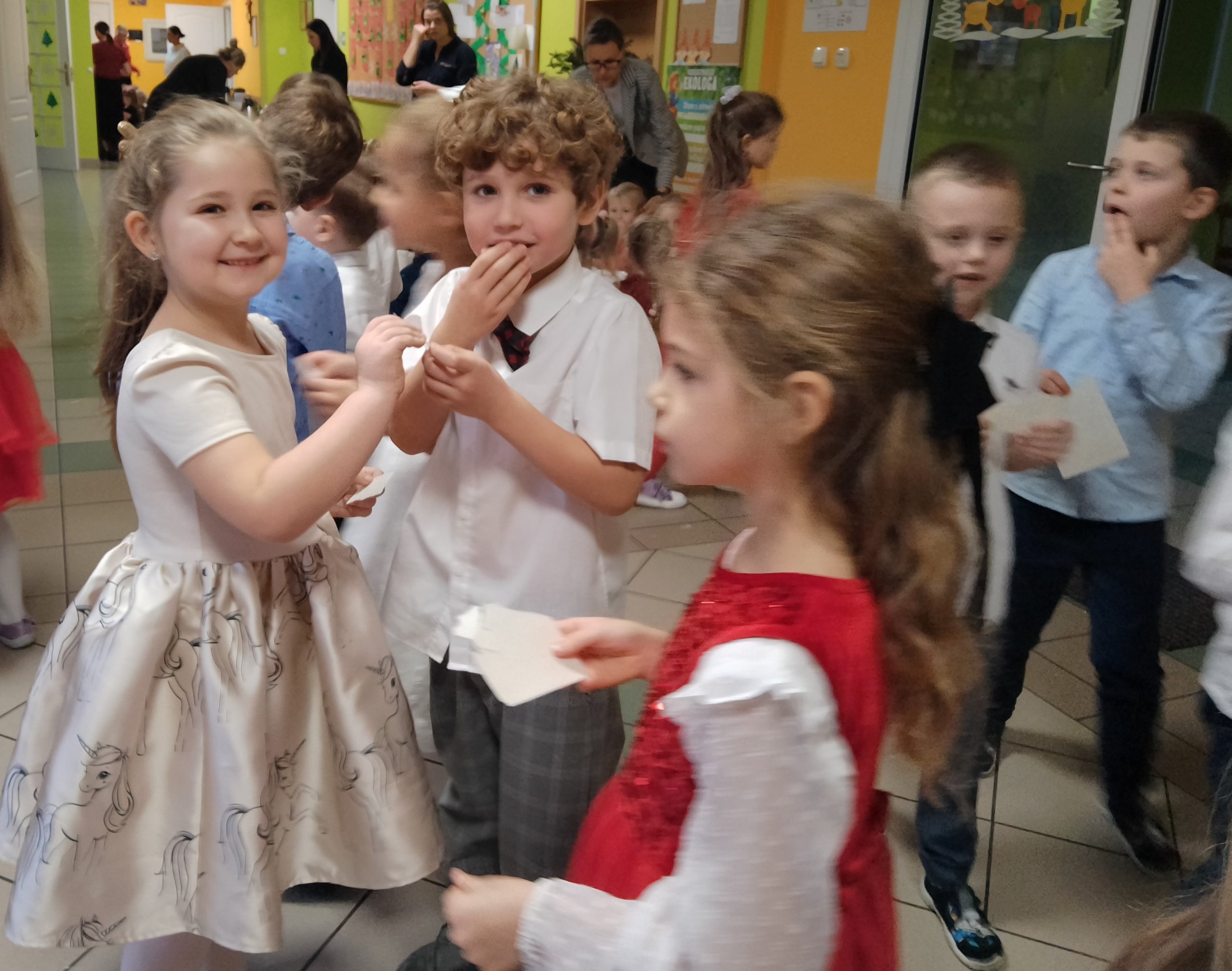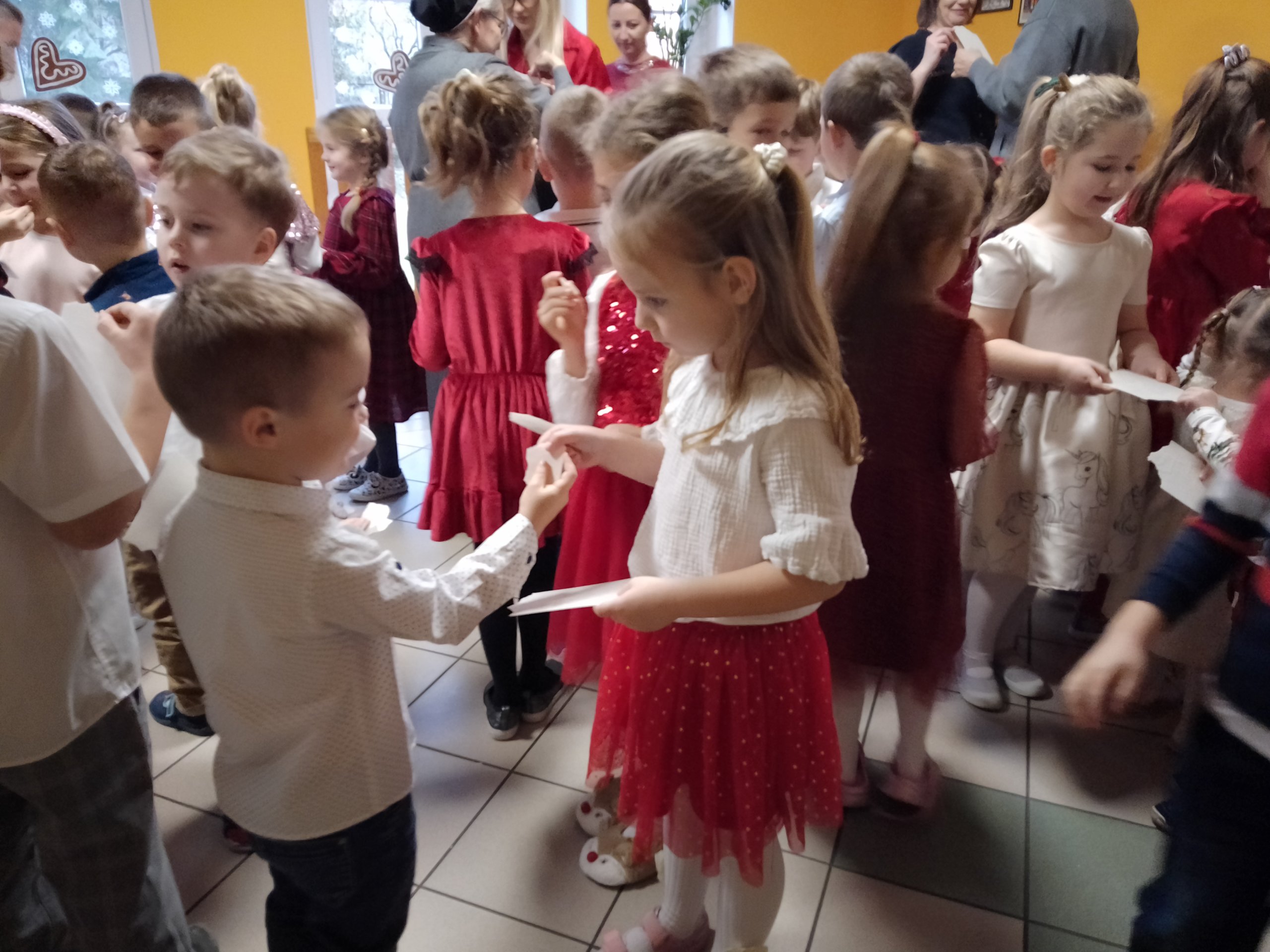 23 grudnia 2025 r. Od rana wszystkie dzieci pięknie ubrane, siostry i panie krzątają się, ustawiają i nakrywają stoły, bo to ważny i piękny dzień przed nami. Przed południem przyszły Siostry Przełożone i mogliśmy zacząć nasze przedszkolne dzielenie się opłatkiem, składanie sobie życzeń i kolędowanie przy świątecznym obiedzie. A my jeszcze chcemy złożyć życzenia wszystkim Rodzicom, Przyjaciołom i Dobroczyńcom naszego przedszkola – radosnego świętowania Bożego Narodzenia! Niech Dzieciątko Boże błogosławi, obdarza pokojem, miłością i nadzieją w każdym dniu Nowego Roku ! Wesołych Świąt!