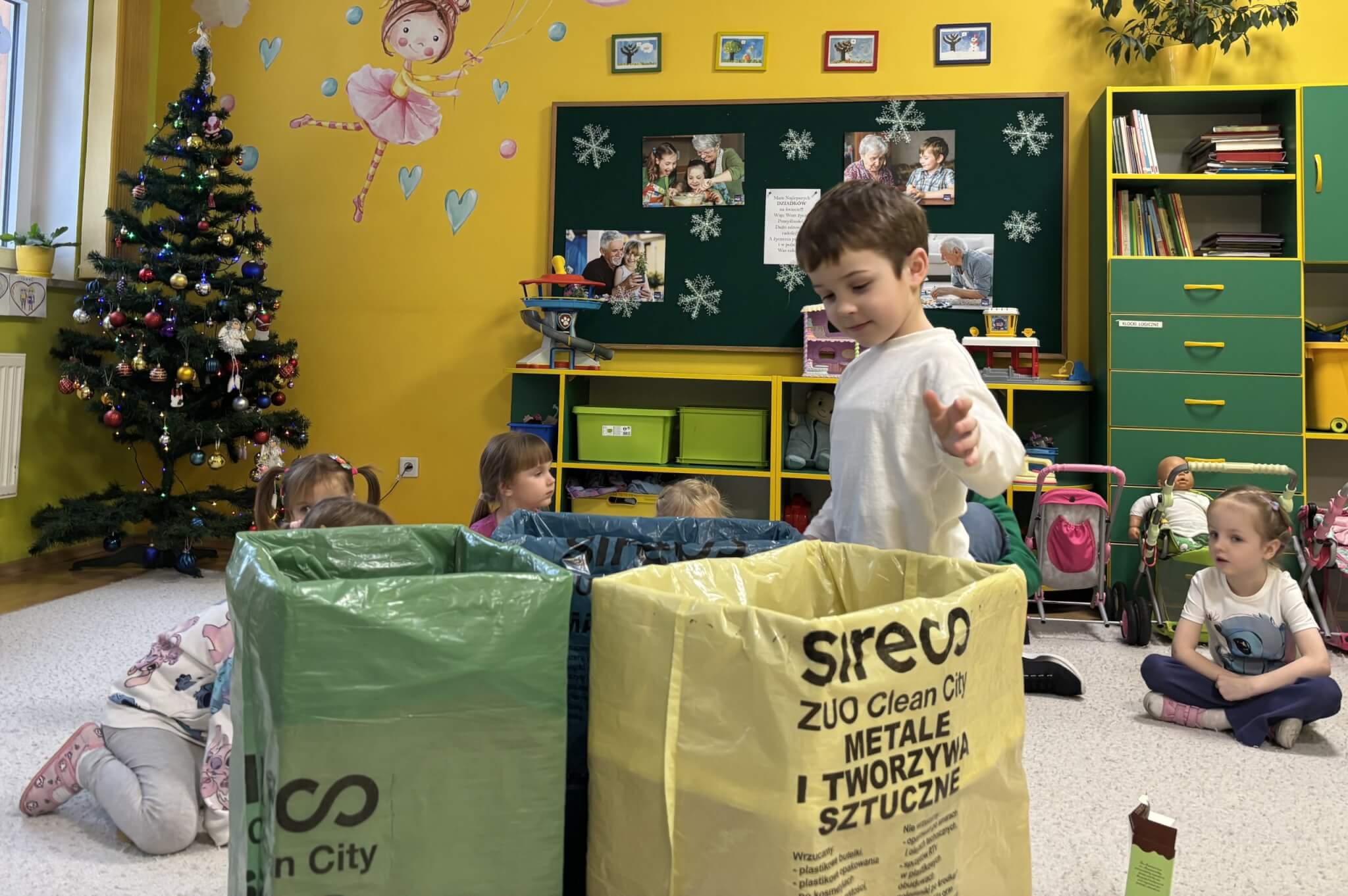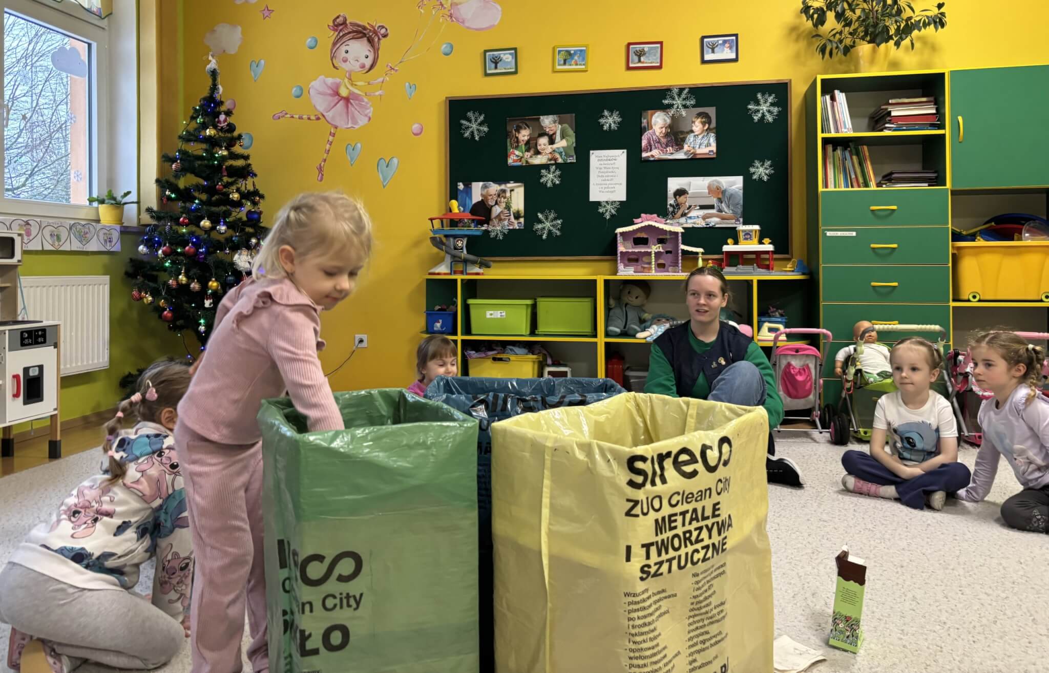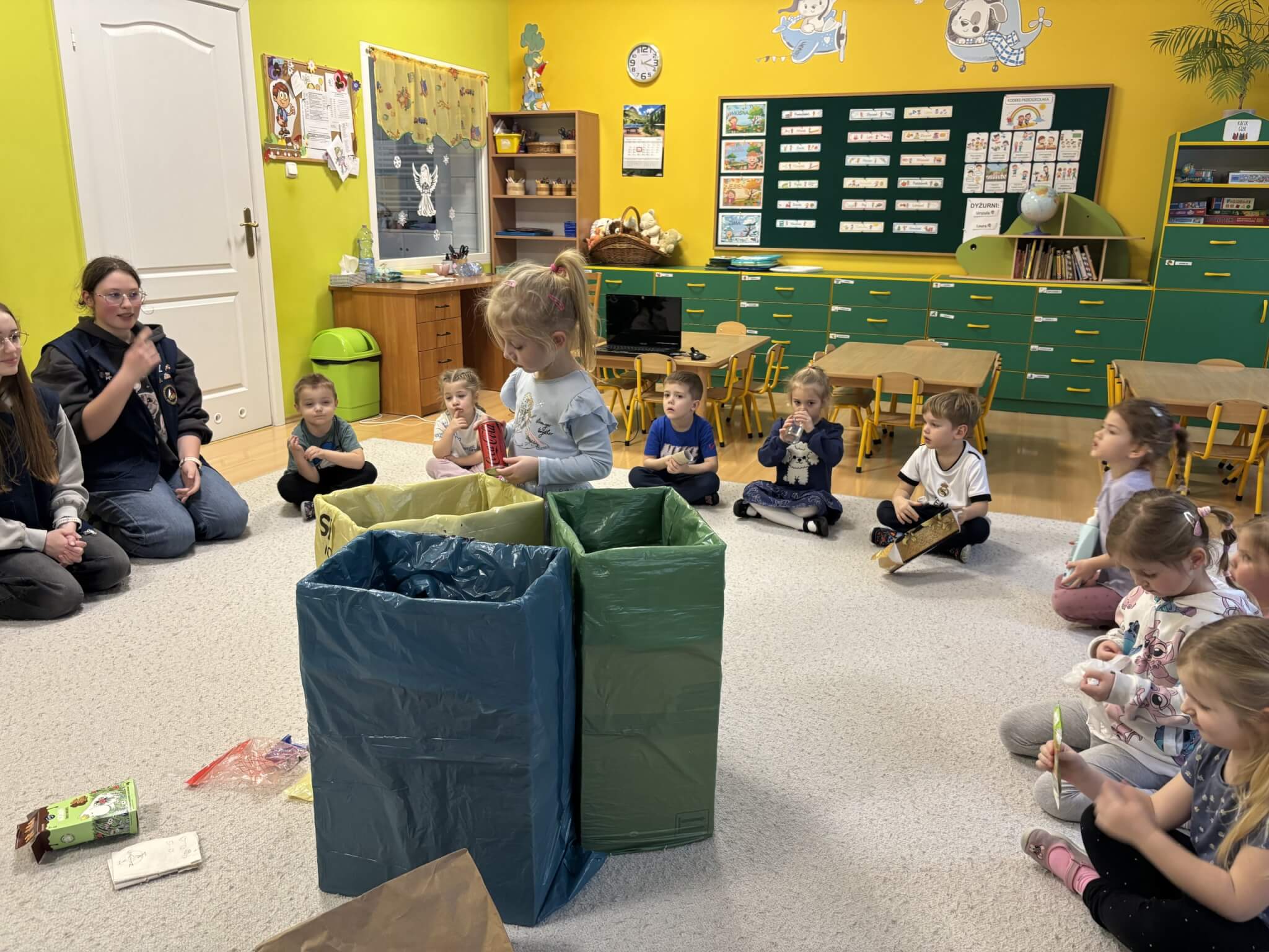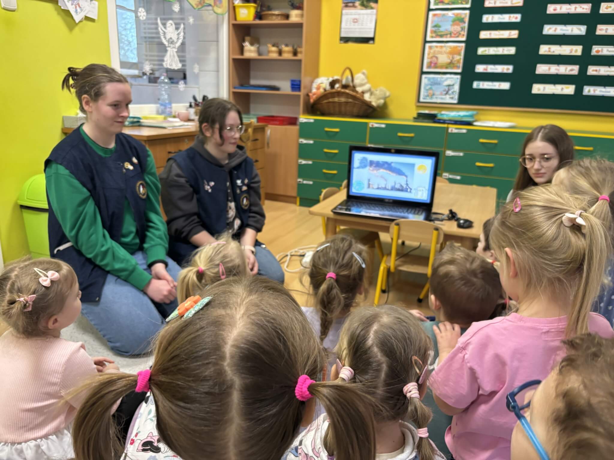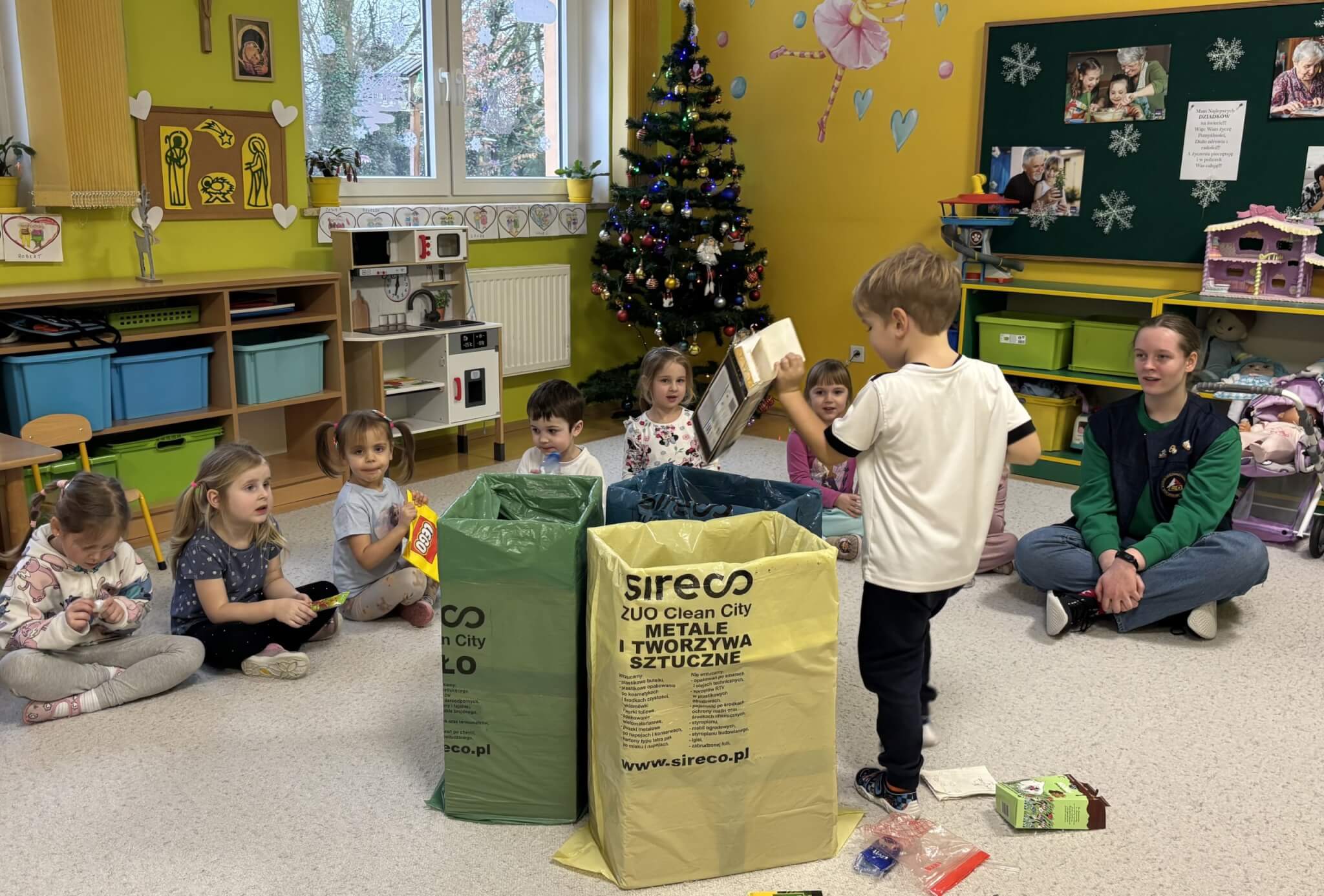 14 stycznia 2026 r. Uczennice z LO Sióstr Urszulanek prowadziły w gr. „Bratków” projekt „Świat w Rękach Dzieci” realizowany w ramach Zwolnionych z Teorii. Dzisiaj przedszkolaki dowiedziały się, że ziemia jest smutna jeśli o nią nie dbamy 🙁 – zaśmiecamy rzeki i jeziora, parki i lasy. „Bratki” zapoznały się z segregacja śmieci i obiecały, że będą obrońcami czystości ziemi 🙂