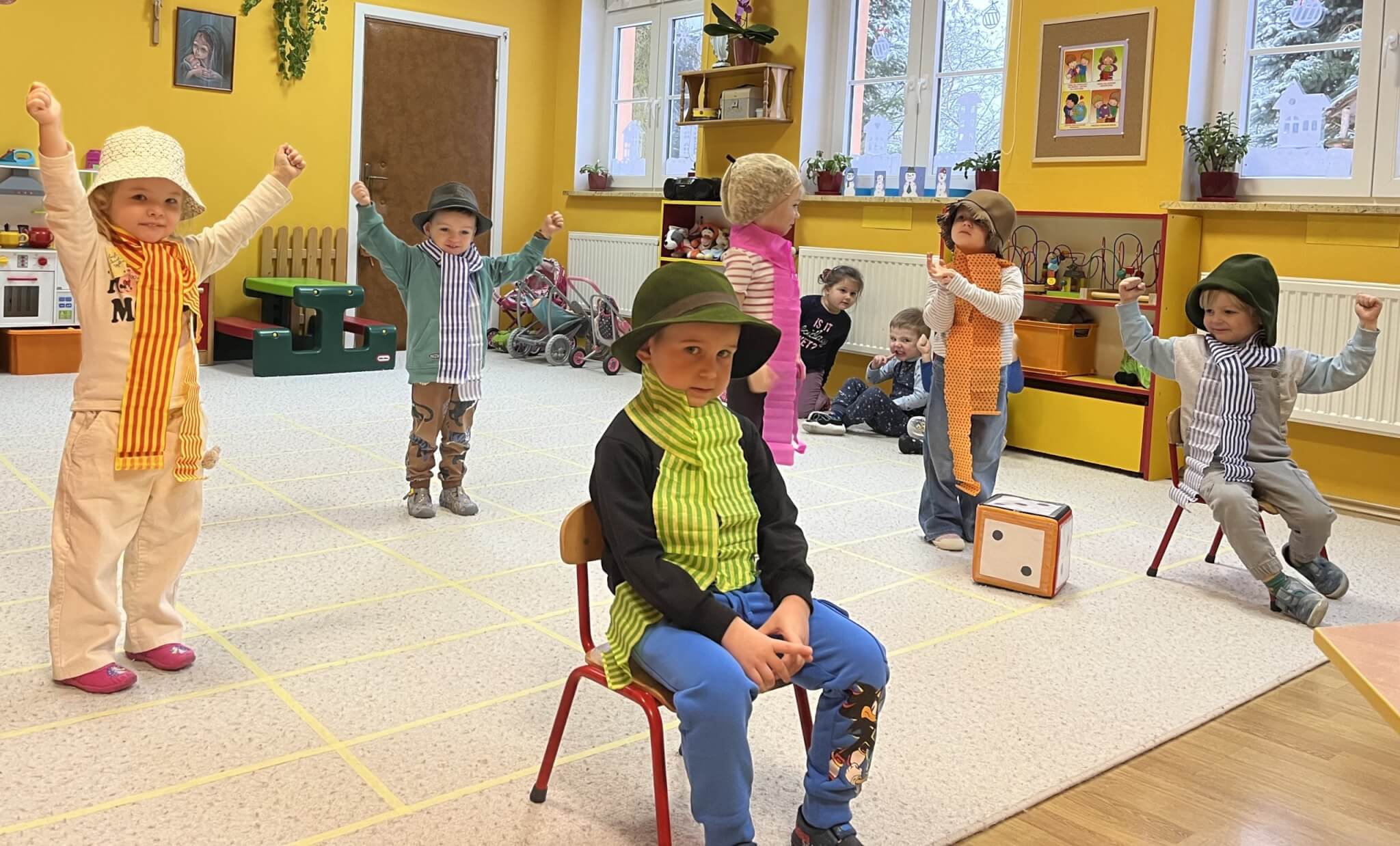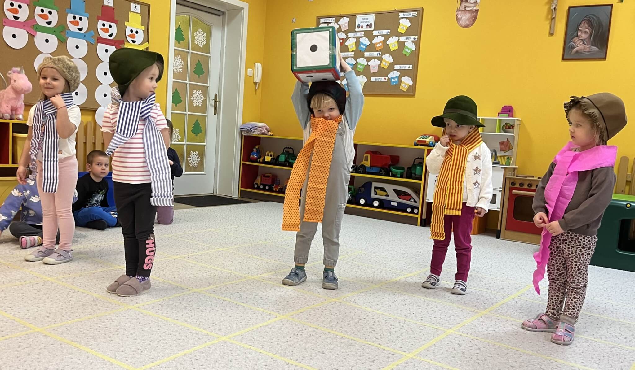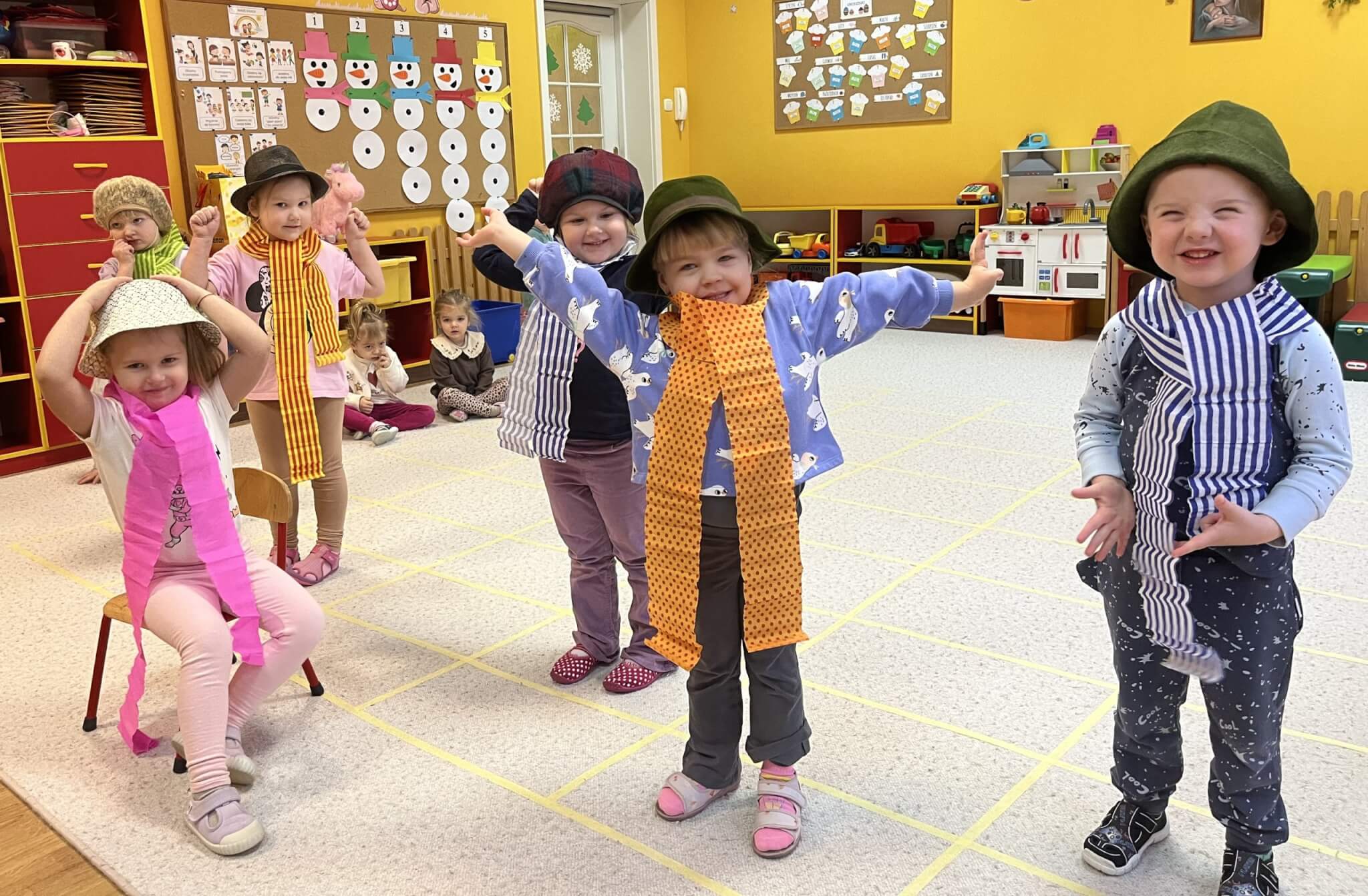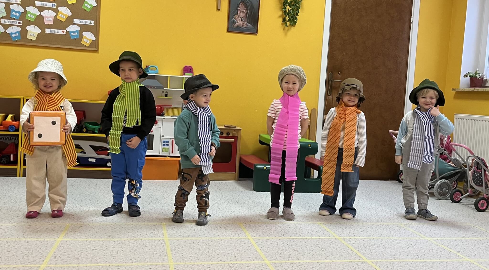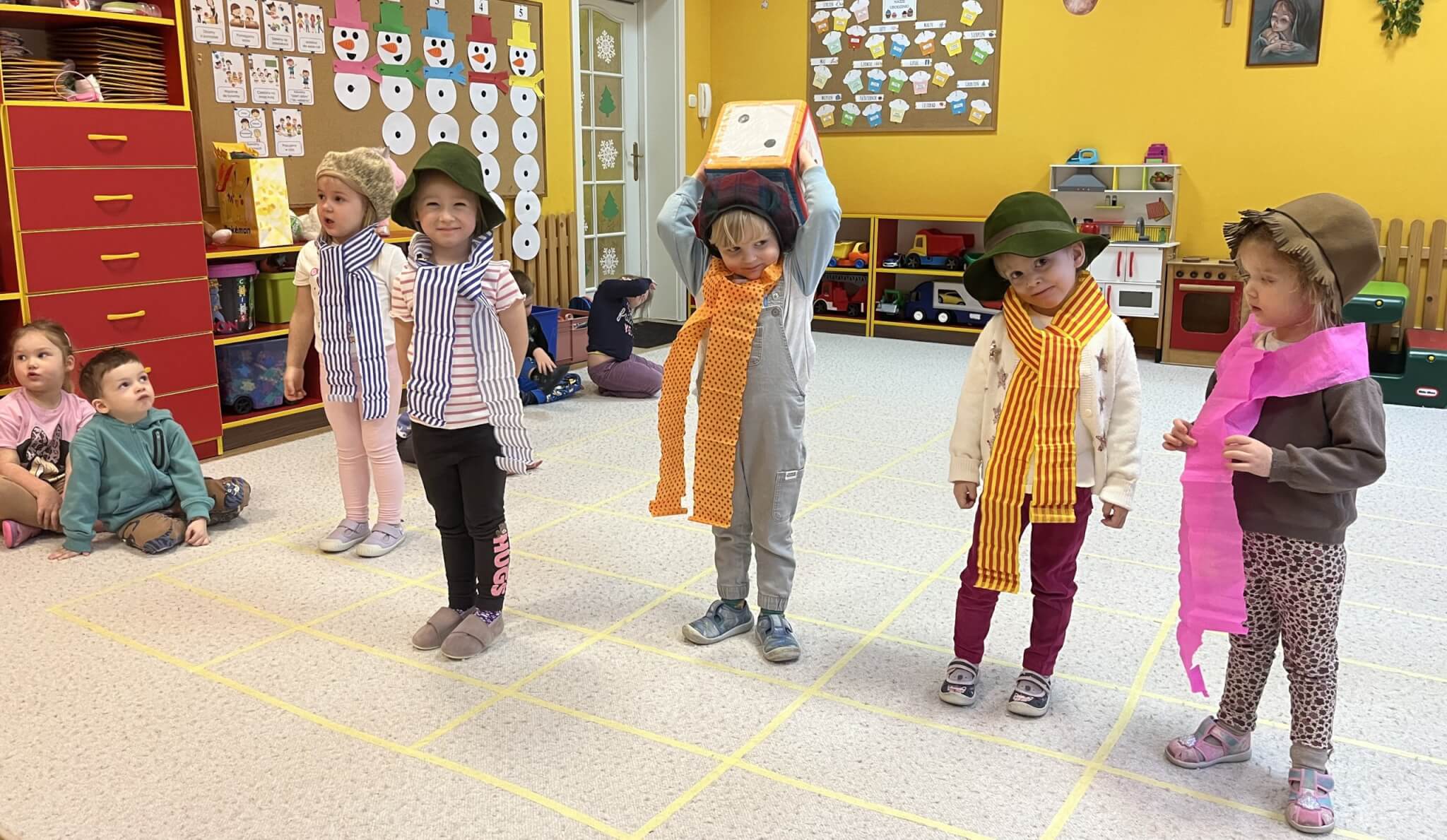Zima 2026 r. Dzień rozpoczął się radosną zabawą muzyczno–ruchową pt. „Bałwankowa rodzina”, która wprowadziła dzieci w zimowy nastrój i sprzyjała integracji grupy. Dzieci chętnie podejmowały role, odważnie prezentowały się na środku oraz uważnie reagowały na sygnały muzyczne. Następnie podczas zajęć dzieci uczestniczyły w zabawie matematycznej z wykorzystaniem sylwet bałwanków. Przedszkolaki dopasowywały odpowiednią liczbę śniegowych kul do wskazanej cyfry oraz porównywały liczebność zbiorów (więcej, mniej). Na sam koniec zabawy każdy z bałwanków został ubrany w odpowiedni szalik do kompletu. Dzieci odwzorowywały również układy guzików według podanego wzoru. Ćwiczenia rozwijały umiejętność liczenia w zakresie dostosowanym do możliwości dzieci, spostrzegawczość wzrokową, koncentrację oraz logiczne myślenie. Zadania miały formę zabawy, co sprzyjało aktywnemu zaangażowaniu i radości z podejmowanych działań.