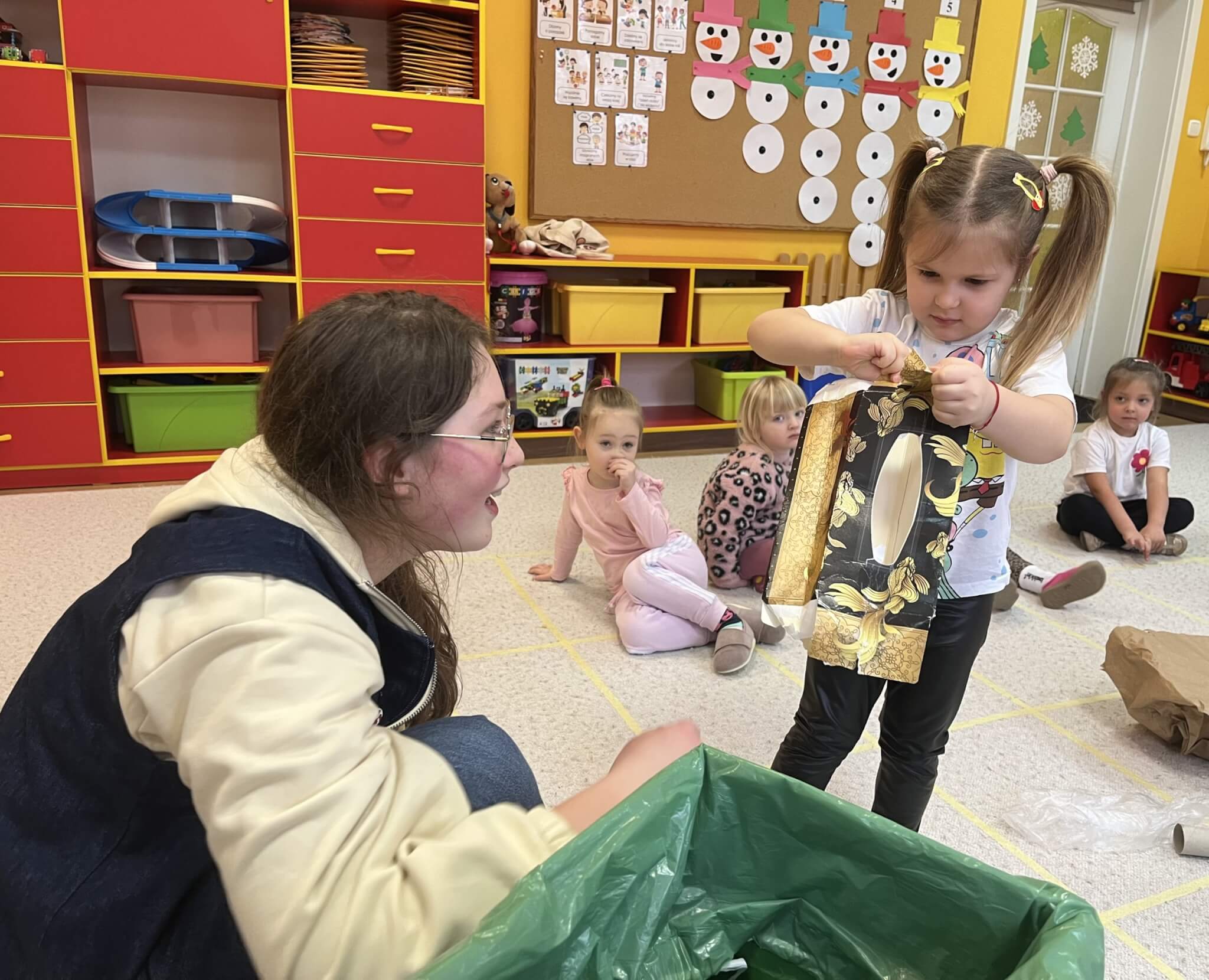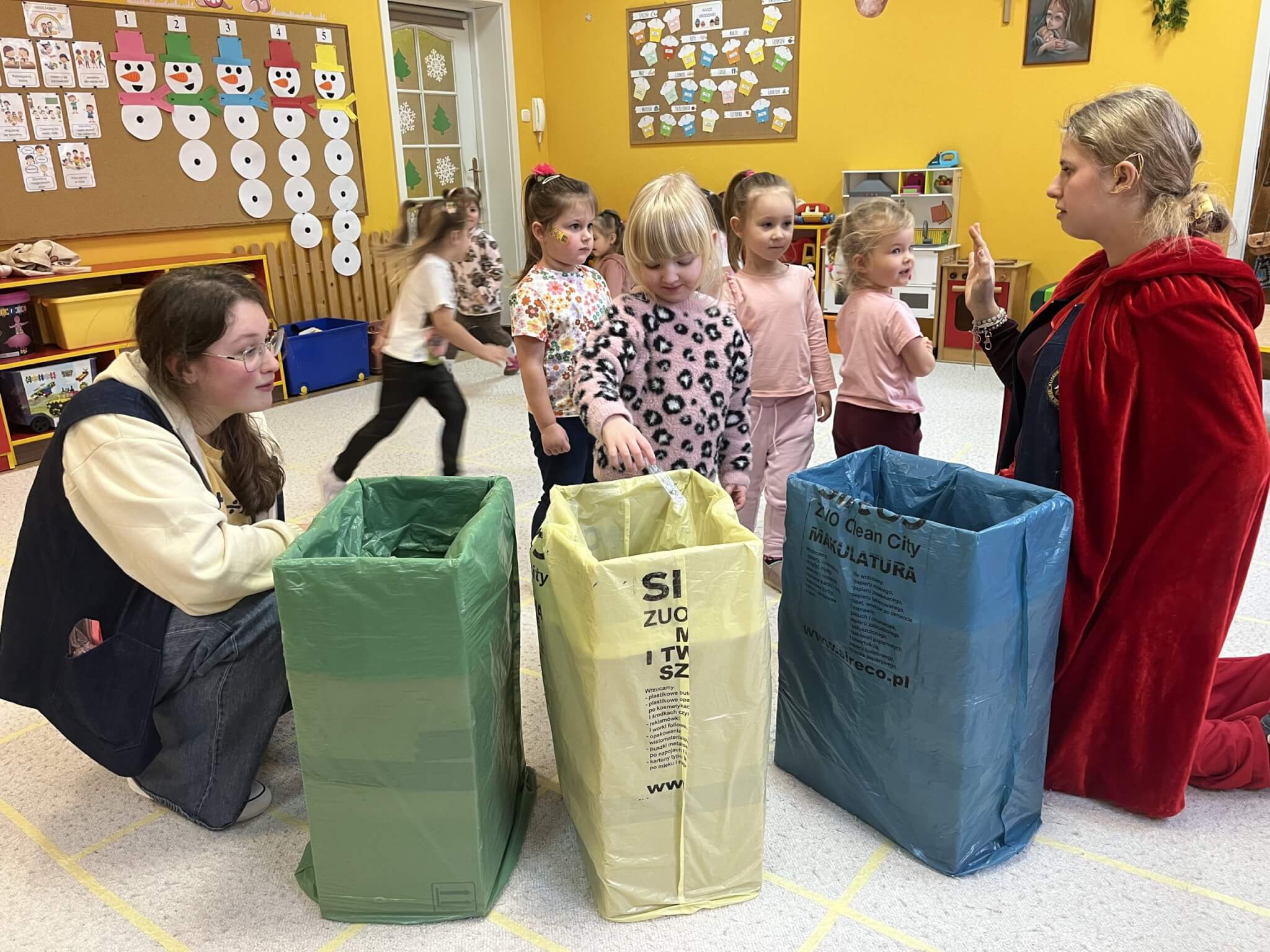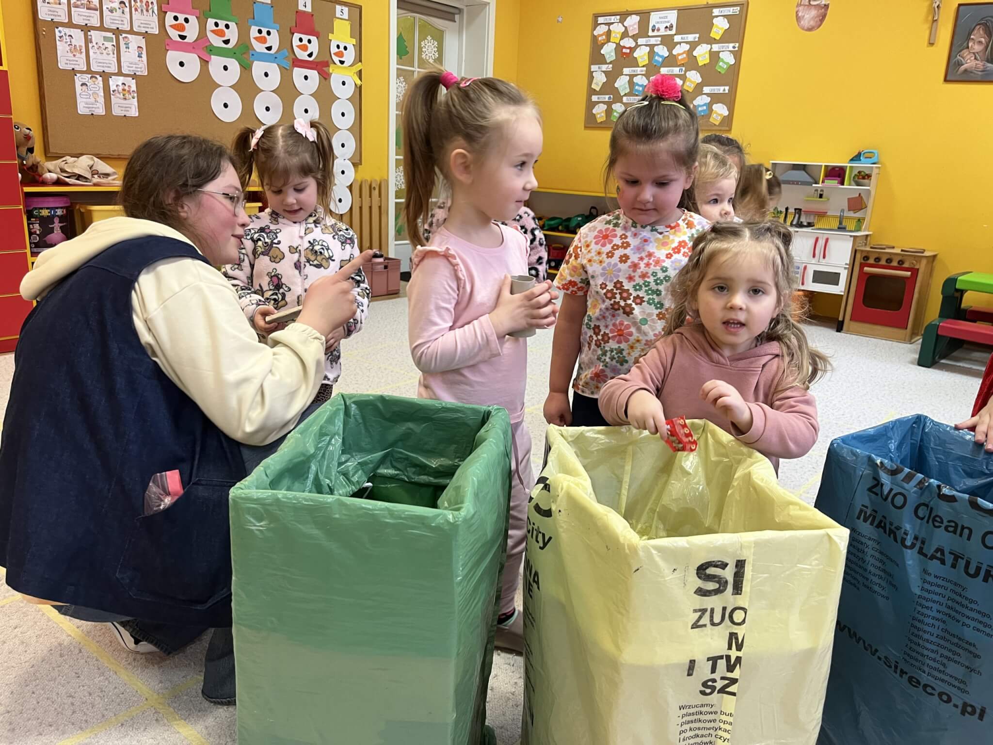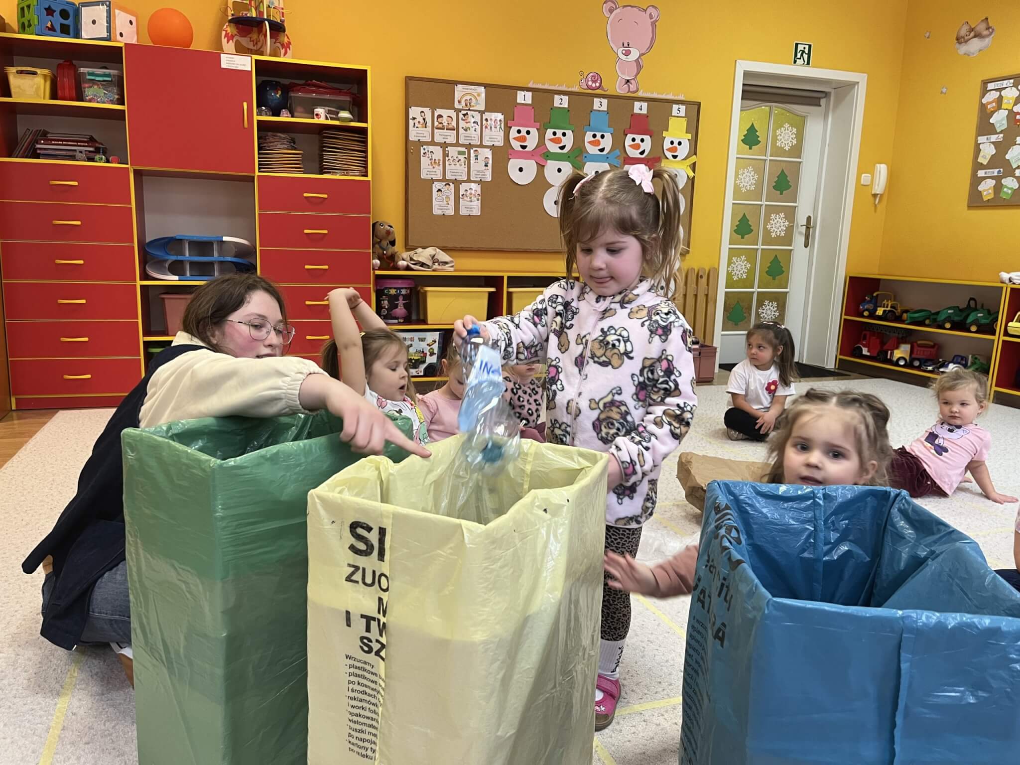 Zima 2026 W ramach projektu „Świat w Rękach Dzieci” – uczennice z naszego Liceum zapoznały „Stokrotki” z potrzebą dbania o naszą planetę i segregowania śmieci. Trzeba przyznać, że Maluszki świetnie sobie z tym tematem poradziły 🙂
