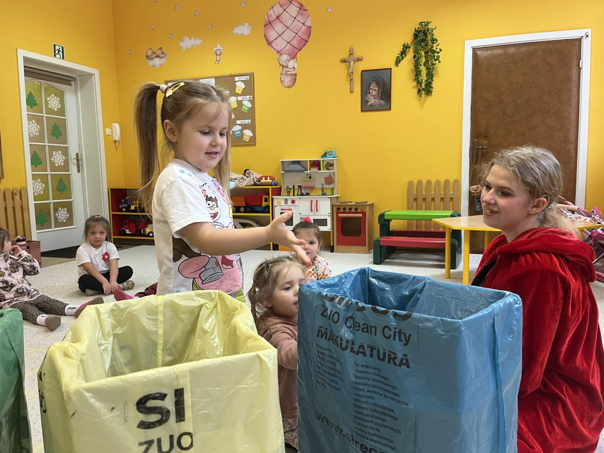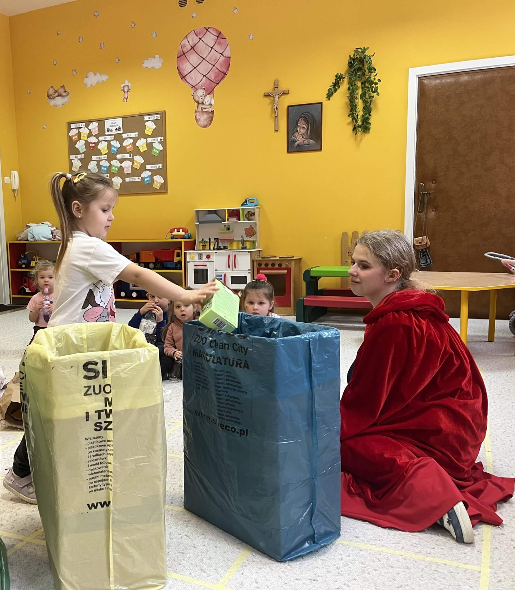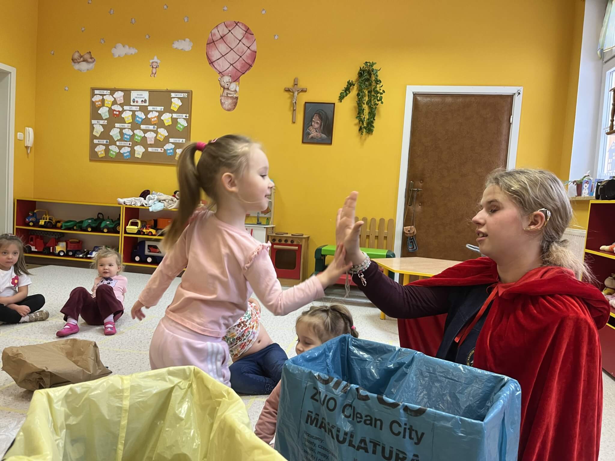 Zima 2026 W ramach projektu „Świat w Rękach Dzieci” – uczennice z naszego Liceum zapoznały „Stokrotki” z potrzebą dbania o naszą planetę i segregowania śmieci. Trzeba przyznać, że Maluszki świetnie sobie z tym tematem poradziły 🙂