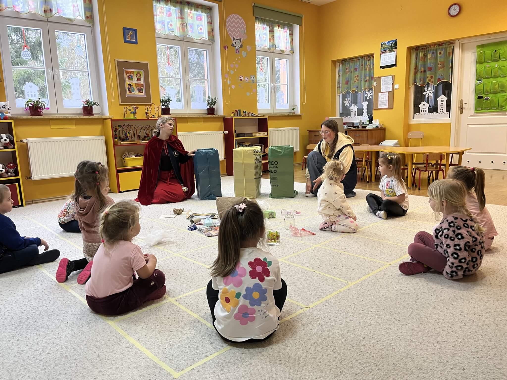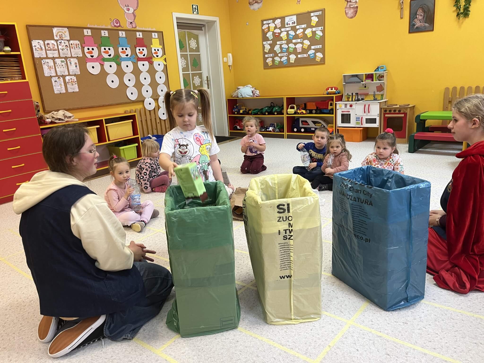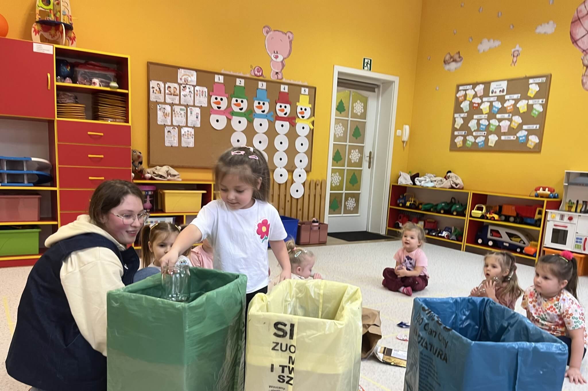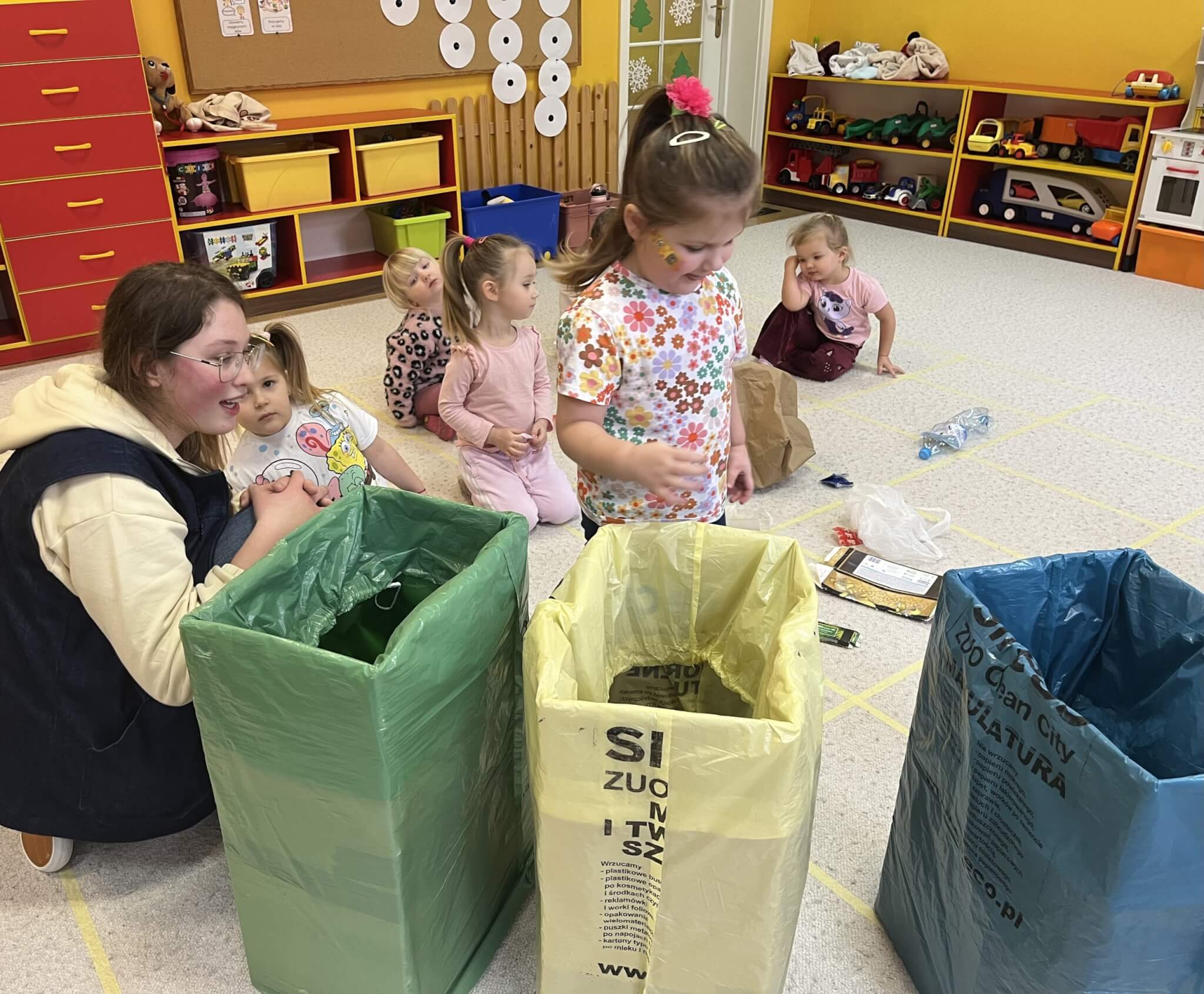 Zima 2026 W ramach projektu „Świat w Rękach Dzieci” – uczennice z naszego Liceum zapoznały „Stokrotki” z potrzebą dbania o naszą planetę i segregowania śmieci. Trzeba przyznać, że Maluszki świetnie sobie z tym tematem poradziły 🙂