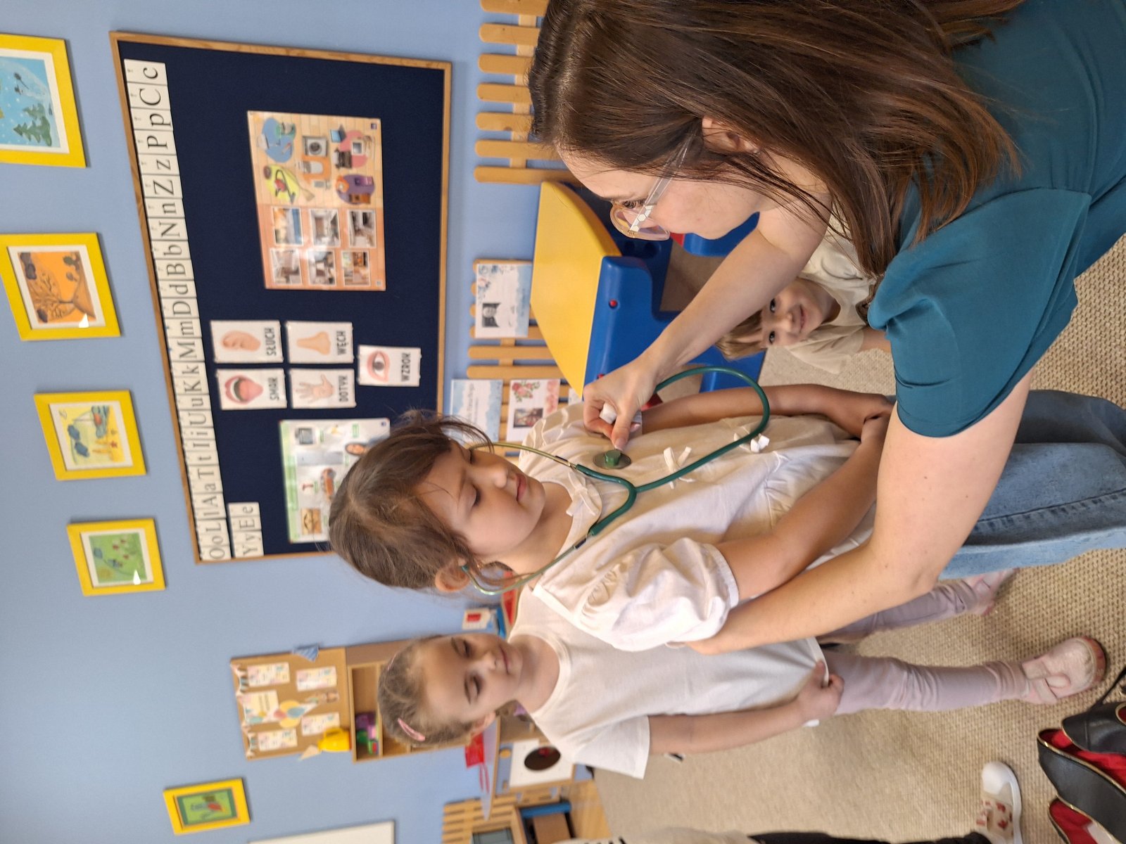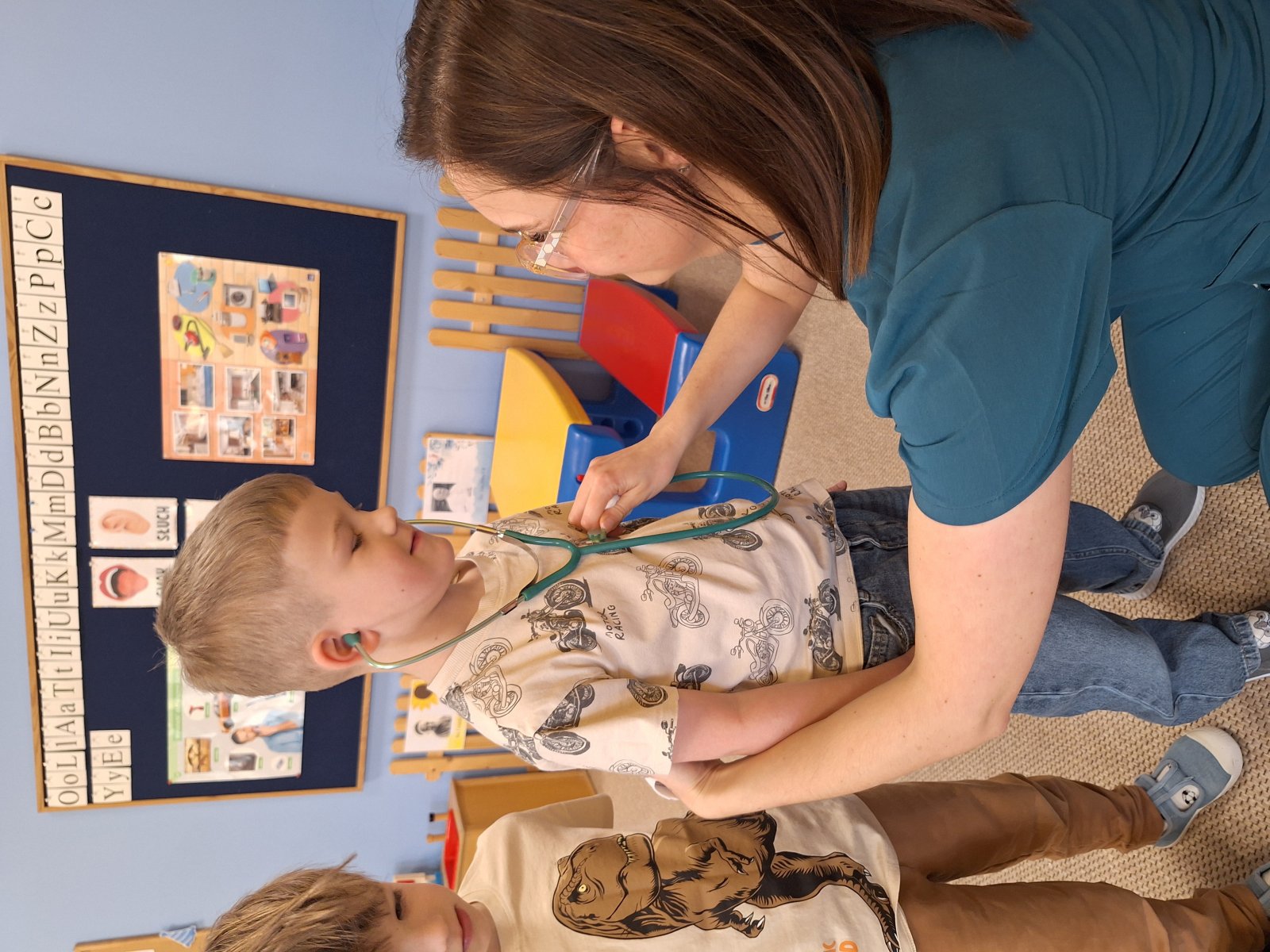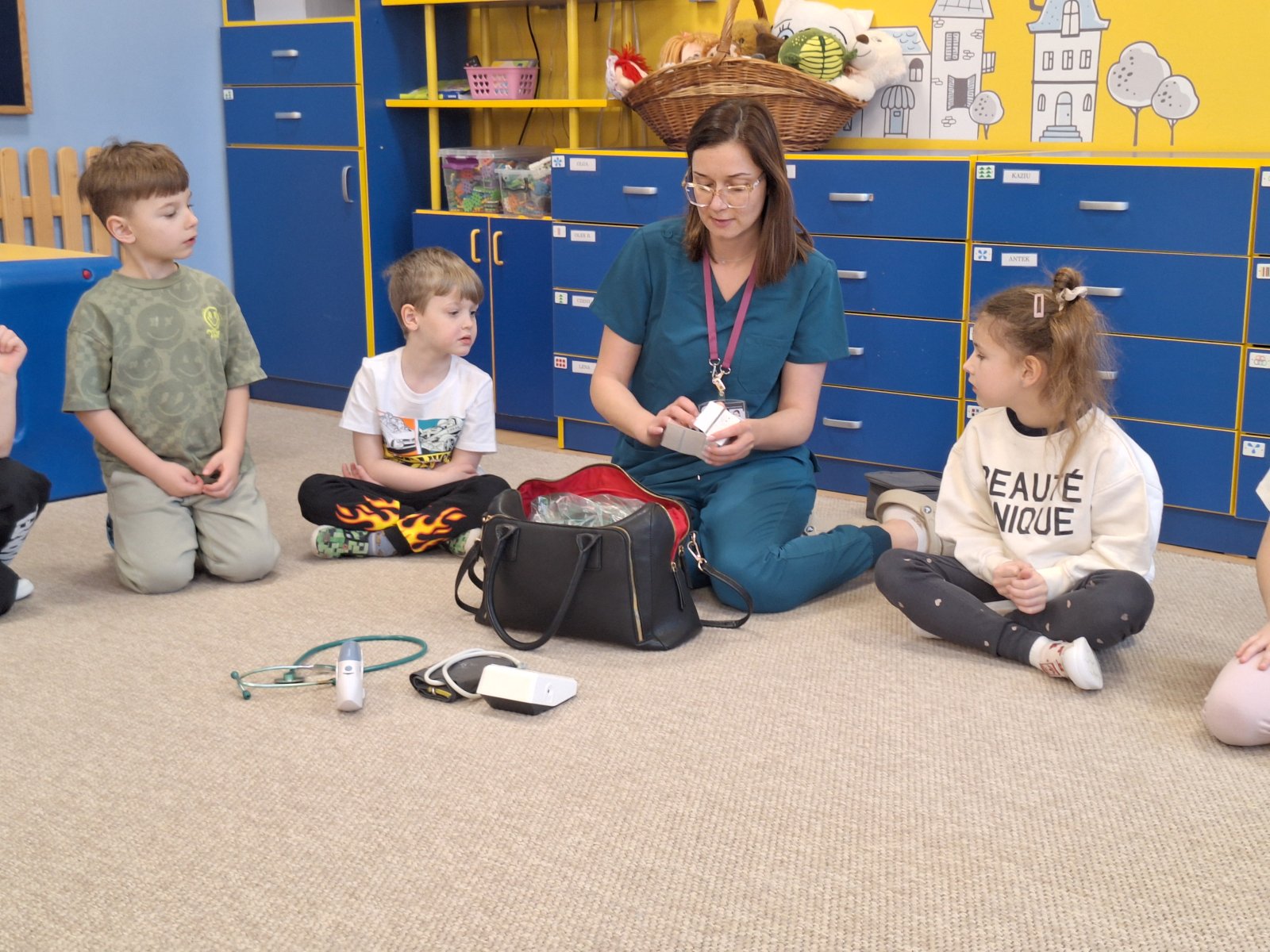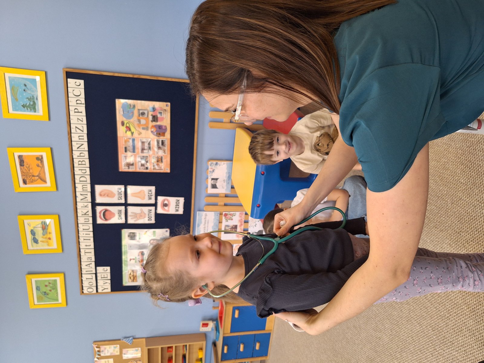 9 marca 2026 r. W poniedziałek grupę „Maków” odwiedziła pani pielęgniarka (mama Leosia). Dzieci miały okazję poznać zawód pielęgniarki oraz dowiedzieć się, na czym polega jej praca. Podczas spotkania pani Magda opowiedziała o swojej codziennej pracy, pokazała podstawowe przyrządy medyczne i wyjaśniła do czego służą. Przedszkolaki z dużym zainteresowaniem słuchały, zadawały pytania oraz chętnie dzieliły się swoimi doświadczeniami związanymi z wizyta u lekarza. To spotkanie pomogło dzieciom lepiej zrozumieć, jak ważna jest praca osoby dbającej o nasze zdrowie. Serdecznie dziękujemy za poświęcony czas, ciekawe spotkanie i przybliżenie dzieciom tak ważnego zawodu.
