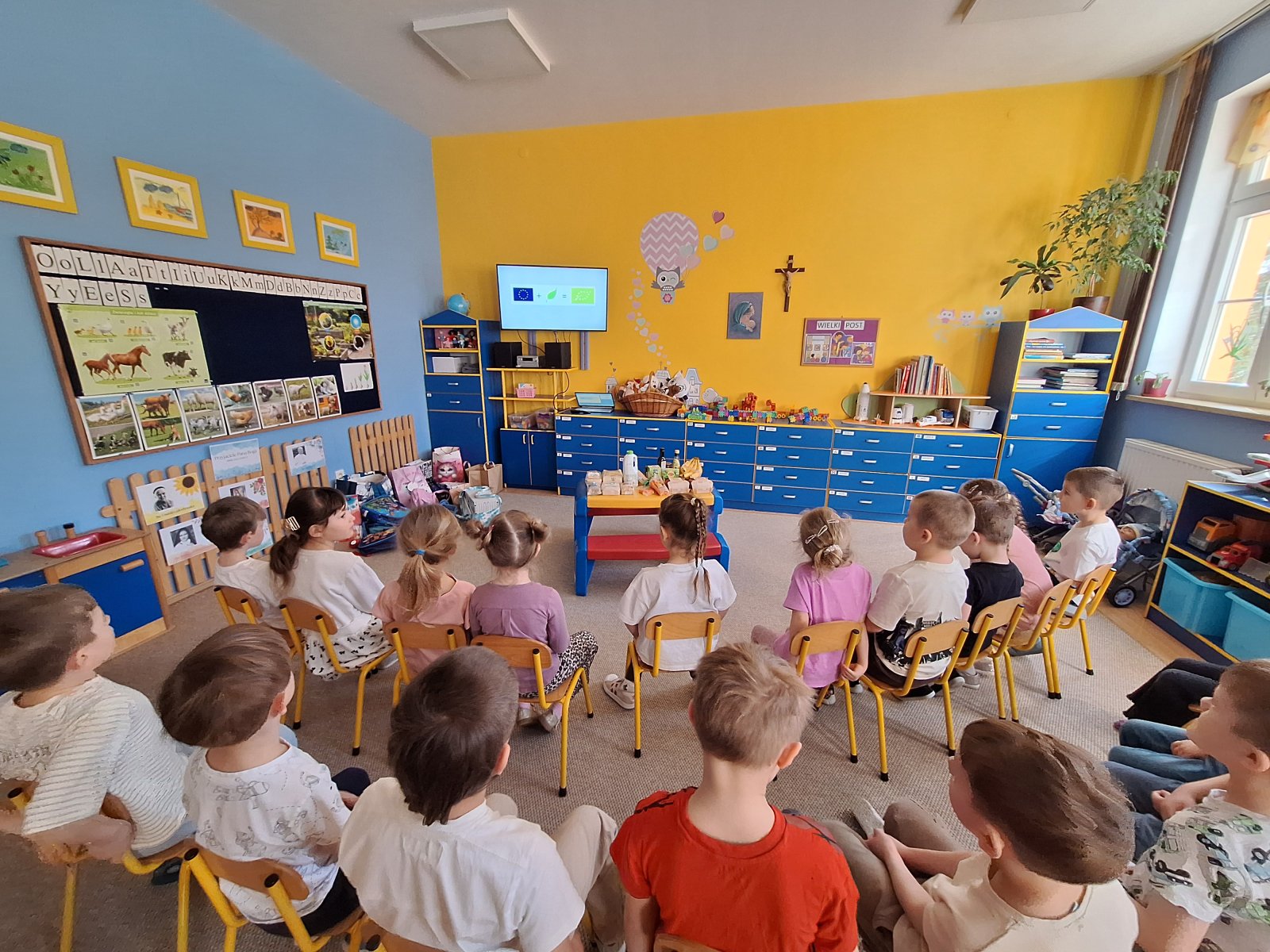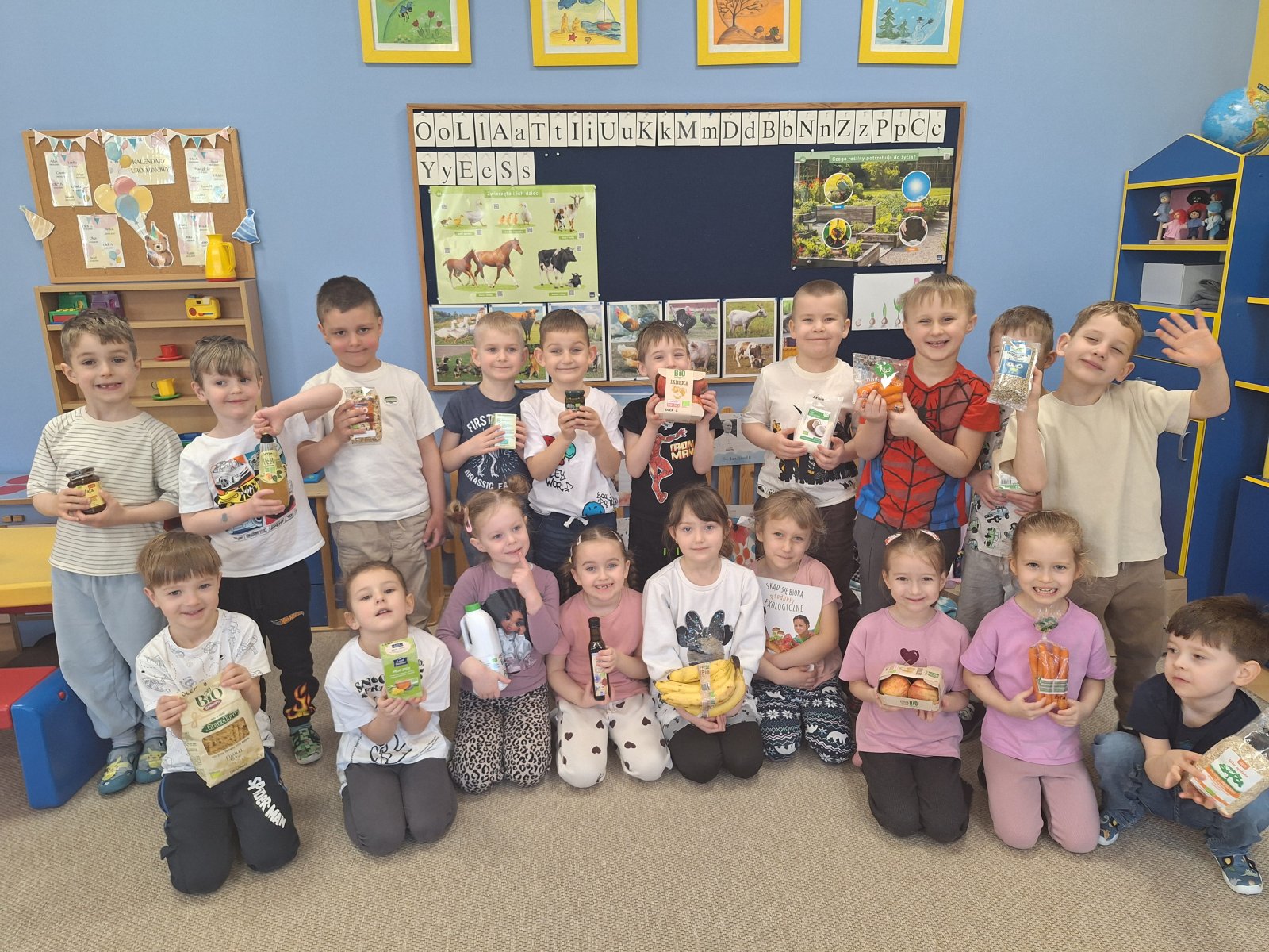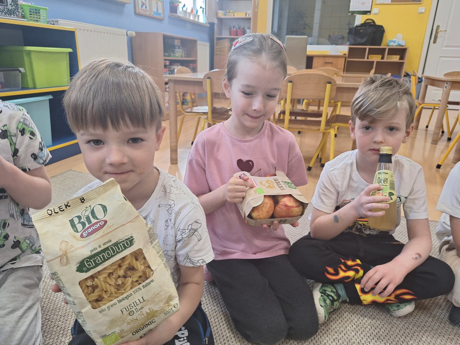 26 marca 2026 r. Dzieci z grupy „Maki” uczestniczyły w zajęciach poświęconych euroliściowi – symbolowi, który oznacza produkty ekologiczne w Unii Europejskiej. Podczas spotkania przedszkolaki obejrzały film przygotowany przez Główny Inspektorat Sanitarny (https://www.youtube.com/watch?v=4VhGmy1zR1w). Dzięki temu dowiedziały się, co oznacza znak euroliścia i jak rozpoznać zdrową żywność w sklepie. Dzieci przyniosły również produkty oznaczone euroliściem i miały okazję je oglądać, porównywać oraz sprawdzać ich skład. W trakcie zajęć przedszkolaki ćwiczyły również obserwację i skupienie, ucząc się poprzez zabawę, jak świadomie wybierać produkty ekologiczne. Na zakończenie zajęć dzieci dzieliły się swoimi spostrzeżeniami i doświadczeniami, a wspólna zabawa sprawiła, że temat euroliścia stał się ciekawy i zrozumiały dla najmłodszych. Zajęcia były nie tylko okazją do nauki, ale także do integracji i wspólnej radości z odkrywania świata zdrowej żywności.