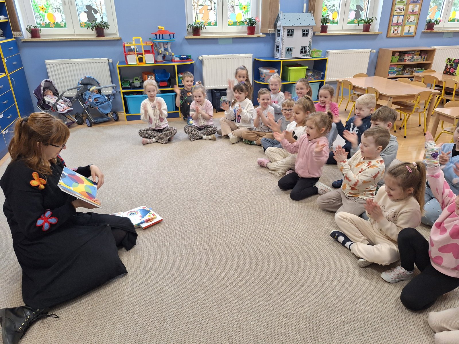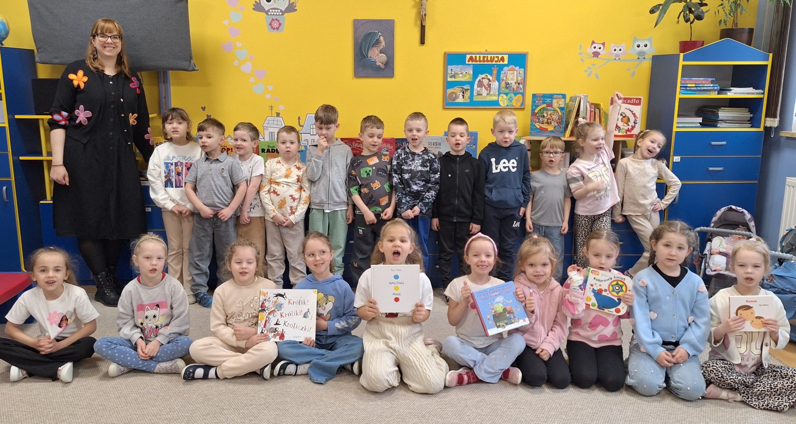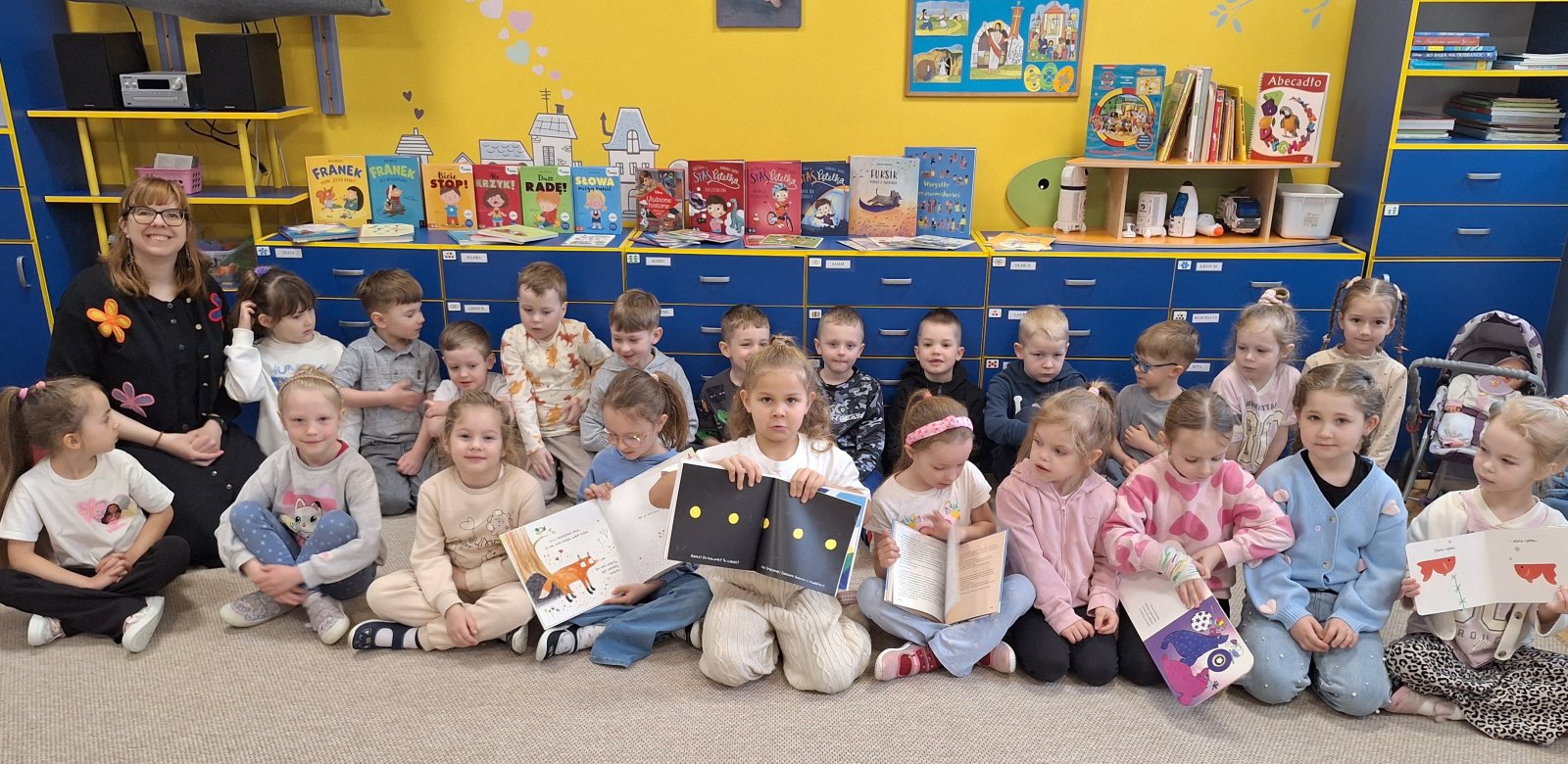 7 kwietnia 2026 r. Dziś w przedszkolu panowała wyjątkowa, pełna ciekawości atmosfera. Dzieci z grupy „Maków” i „Słoneczników” miały przyjemność gościć Panią Natalię z Biblioteki Publicznej w Pniewach, która zabrała je w niezwykłą podróż do świata książek. Podczas spotkania przedszkolaki dowiedziały się, jak powstają książki, kto je pisze i dlaczego warto je czytać. Pani Natalia w ciekawy i przystępny sposób opowiadała o pracy bibliotekarza, pokazując dzieciom różnorodne książki – od kolorowych bajek po te pełne zagadek i przygód. Nie zabrakło również wspólnego czytania, które wzbudziło wiele emocji i uśmiechów. Dzieci z ogromnym zainteresowaniem słuchały, zadawały pytania i chętnie dzieliły się swoimi doświadczeniami związanymi z czytaniem. Spotkanie było nie tylko okazją do poznania świata literatury, ale także inspiracją do sięgania po książki na co dzień. Serdecznie dziękujemy Pani Natalii za wizytę oraz za zaszczepienie w dzieciach miłości do książek!